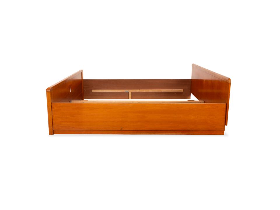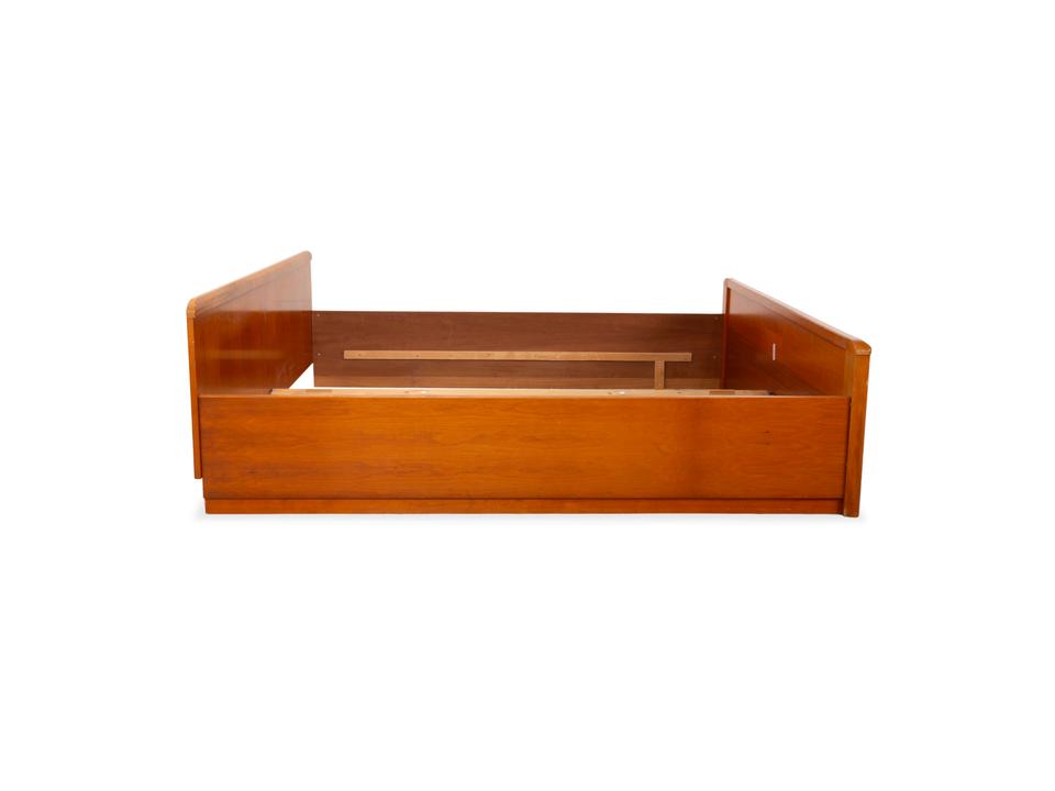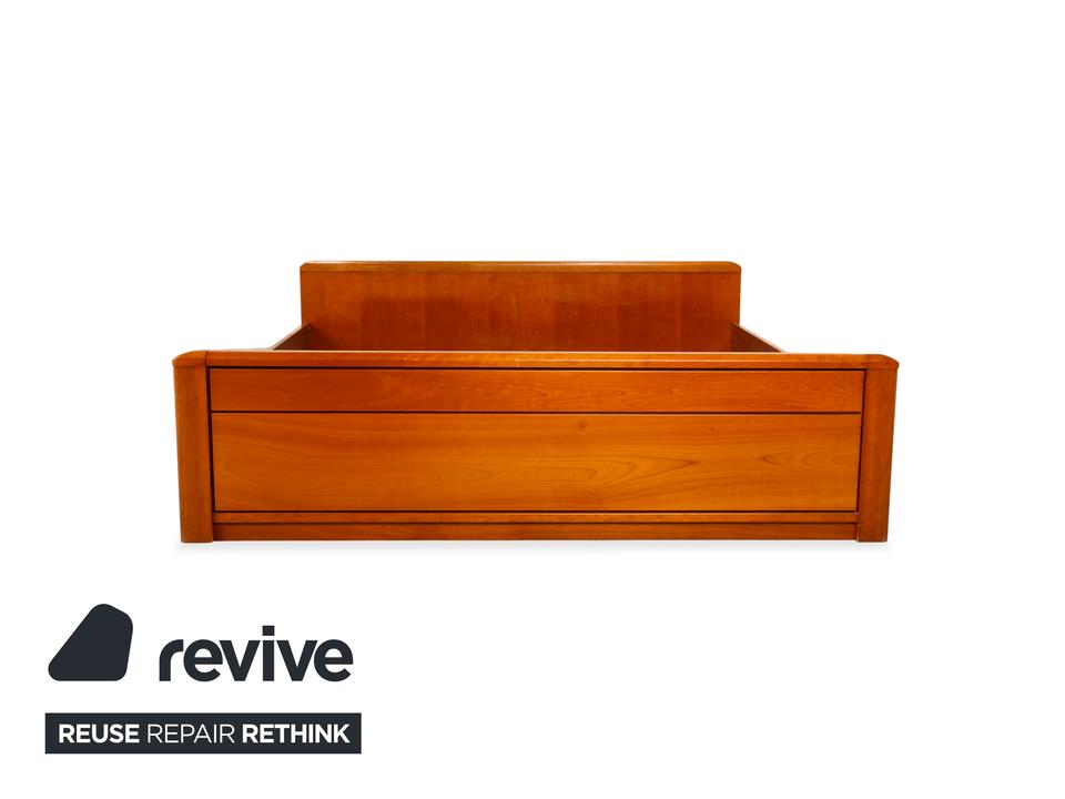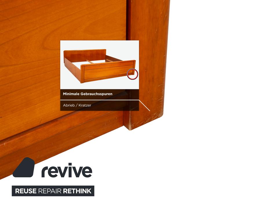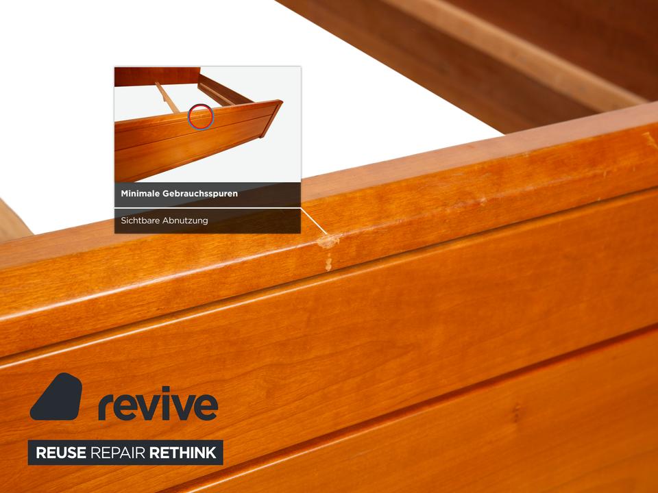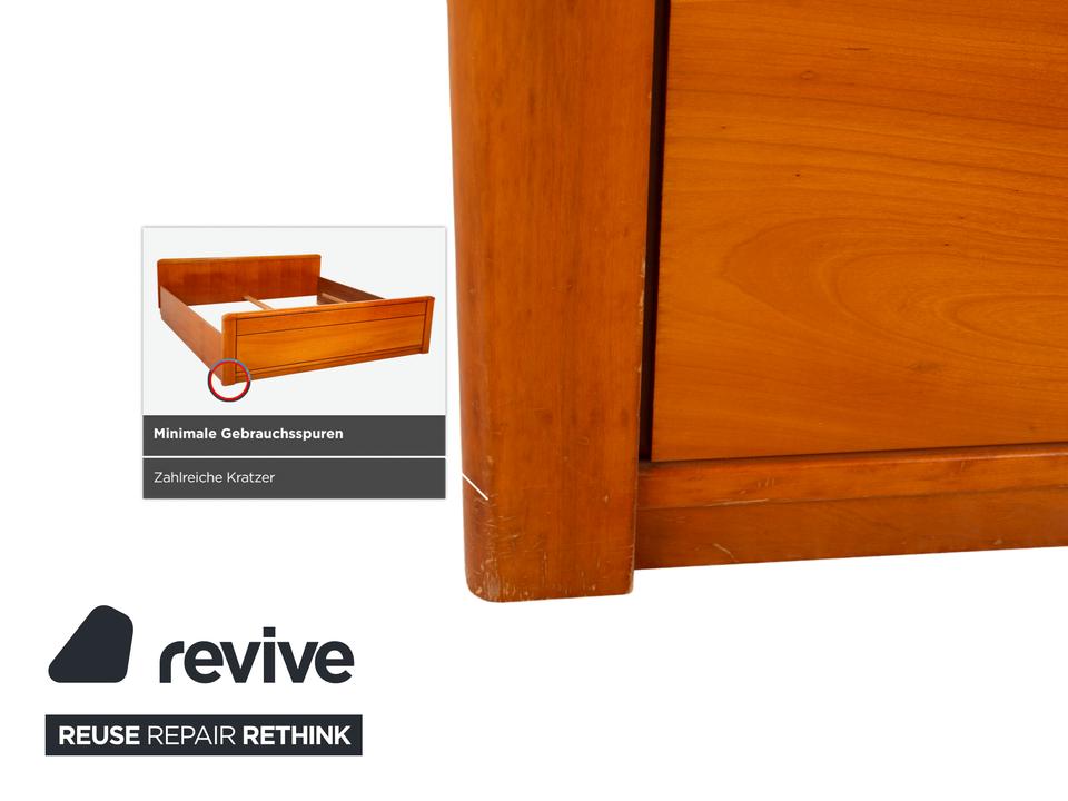 Dieses Bett von Hülsta überzeugt durch seine klassische, solide Machart und das zeitlose Design. Mit einer Liegefläche von 200×200 cm bietet es dir maximalen Platz im Schlafzimmer. Das Holz hat einen warmen, rötlichen Braunton (in Kirschbaum-Optik), der natürlich wirkt und Ruhe ausstrahlt.Das Design ist schlicht und funktional: Das Kopfteil ist gerade und schnörkellos gehalten, während das Fußteil durch die sanft abgerundeten Ecken auffällt, die die massive Optik etwas auflockern. Es handelt sich um eine sehr stabile Konstruktion, die langlebig ist und sich gut in verschiedene Einrichtungsstile integrieren lässt.