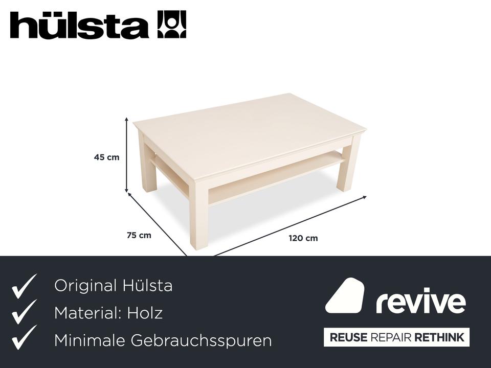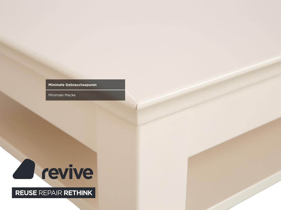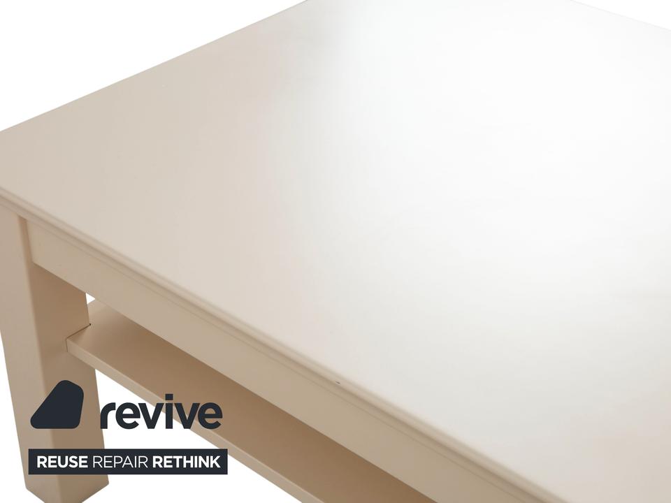 Hier bekommst du einen Couchtisch der Marke Hülsta, der durch seine ruhige und unaufgeregte Ästhetik überzeugt. Das Design in Creme-Beige fügt sich harmonisch in helle Wohnkonzepte ein und bringt eine angenehme Wärme in deinen Raum, ohne sich optisch in den Vordergrund zu drängen. Mit seiner quadratischen Grundform bietet er dir eine großzügige Ablagefläche, die perfekt für gemütliche Abende vor dem Sofa geeignet ist.Hülsta-typisch ist die Verarbeitung hier auf einem extrem hohen Niveau. Die Kombination aus der soliden Holzbasis und der sanften Farbgebung sorgt dafür, dass der Tisch sowohl robust als auch optisch leicht wirkt. Besonders praktisch ist das offene Fach unter der Tischplatte: Hier verschwinden Zeitschriften oder Fernbedienungen im Handumdrehen, sodass die Oberfläche immer aufgeräumt aussieht. Ein zeitloses Möbelstück für alle, die Wert auf Qualität und ein aufgeräumtes Design legen.