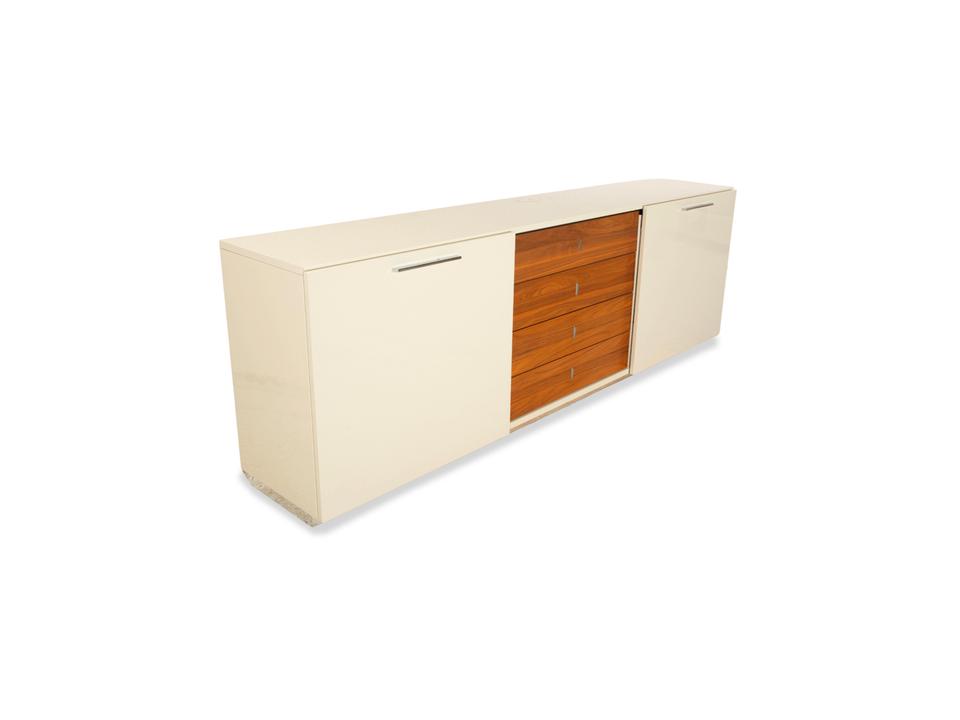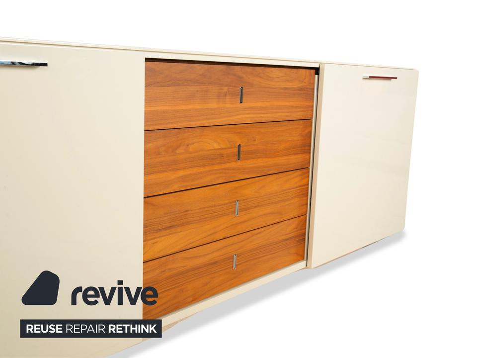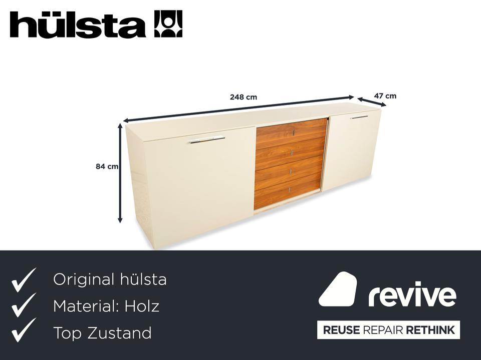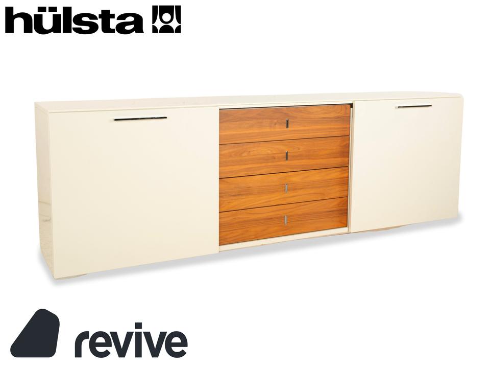 Dieses elegante Hülsta Sideboard vereint zeitloses Design, höchste Materialqualität und praktische Funktionalität – perfekt für moderne Wohnräume. Die Kombination aus cremefarbenen Fronten und einer Echtholz-Mittelpartie mit warmen Holzschubladen verleiht dem Möbelstück eine stilvolle und zugleich wohnliche Ausstrahlung. Das Sideboard zeichnet sich durch eine klare Formensprache, hochwertige Beschläge und die typische Hülsta-Verarbeitungsqualität aus. Mit seinen zwei Schiebetüren und vier mittig angeordneten Schubladen bietet es reichlich Stauraum für Geschirr, Wohnaccessoires, Unterlagen oder Textilien.
