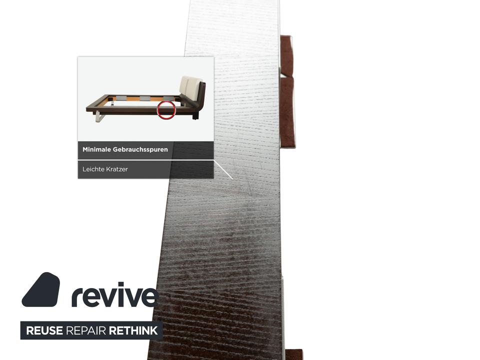 Revive GmbH | Gebrauchte Designermöbel • Aufbereitet • Nachhaltig • Sofort Verfügbar Das Hülsta Tamis Bett ist gefertigt aus einem hochwertigen Holzgestell und einem weißen Kopfteil aus Leder. Dieses bringt ein hohes Maß an Langlebigkeit und Stab…