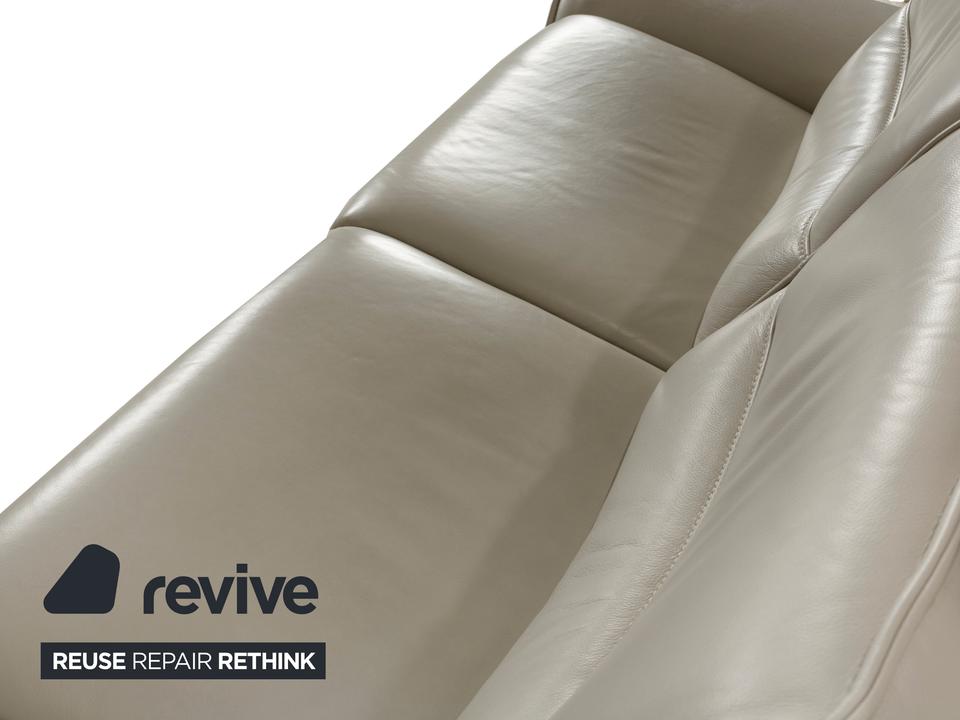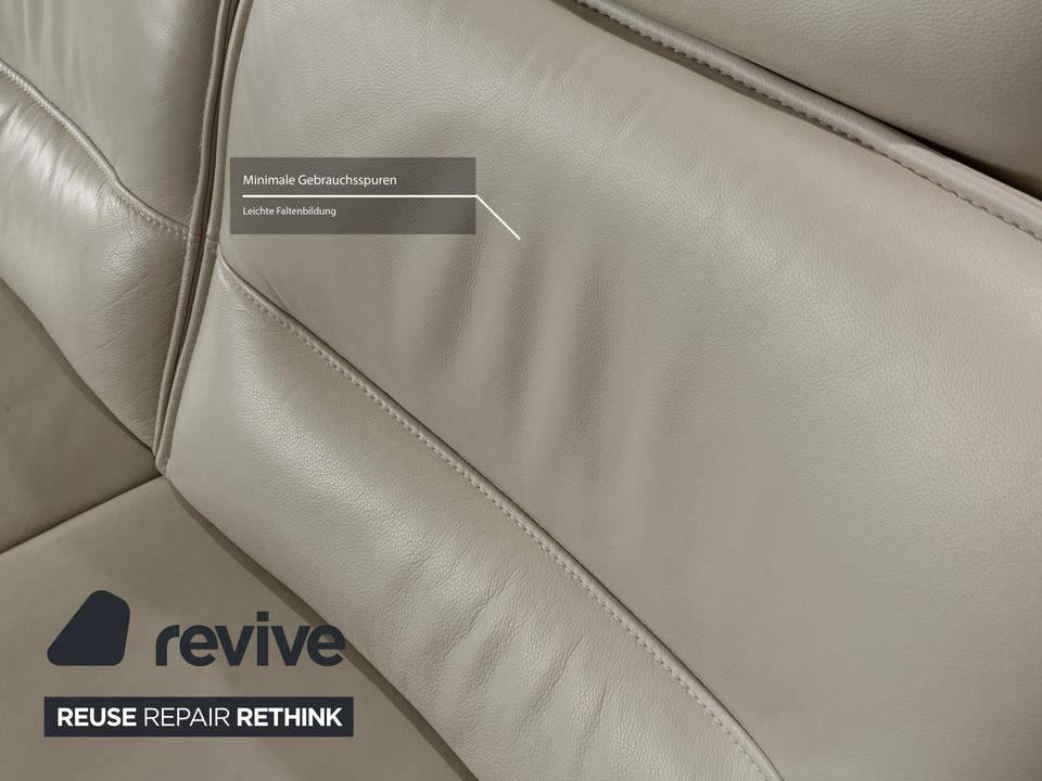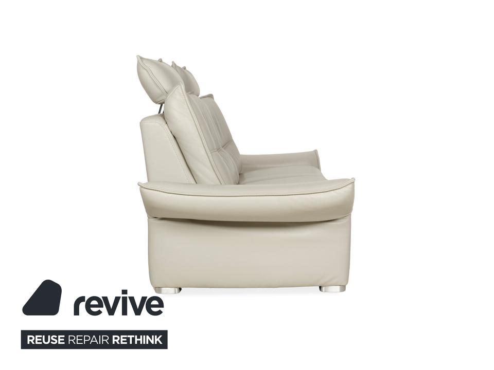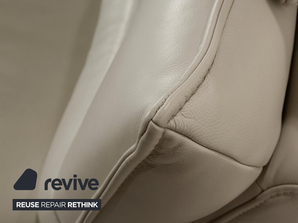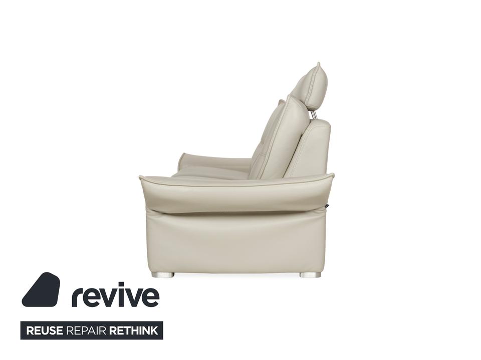 Dieses zweisitzige Sofa aus hellem Leder vereint Komfort mit Funktionalität. Die weich gepolsterten Rücken- und Sitzflächen sorgen für entspanntes Sitzen, während die elektrisch verstellbare Sitzfunktion zusätzlichen Komfort bieten.