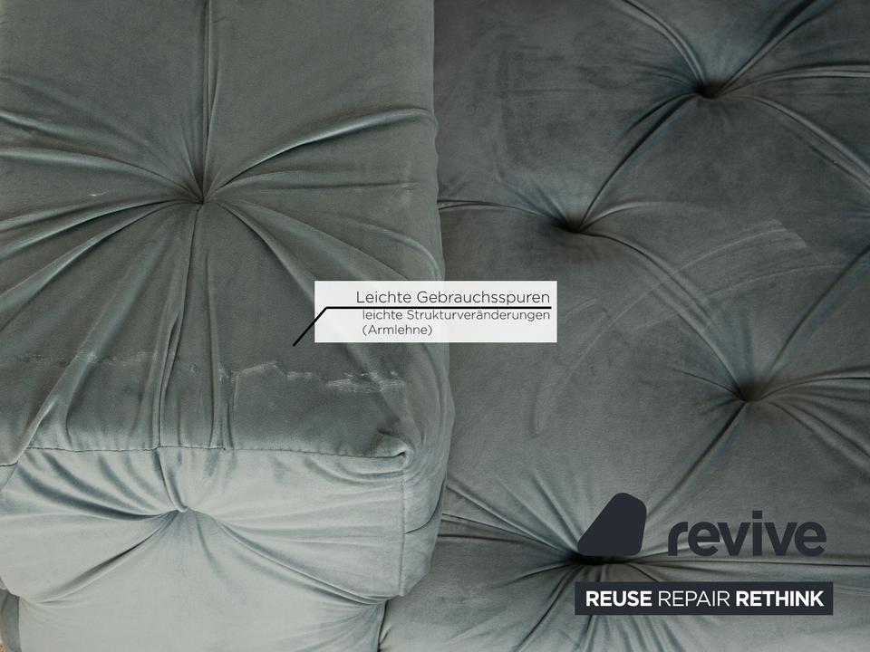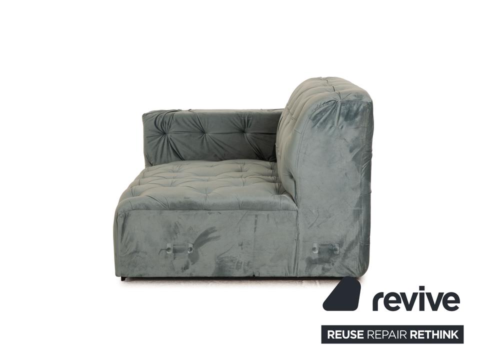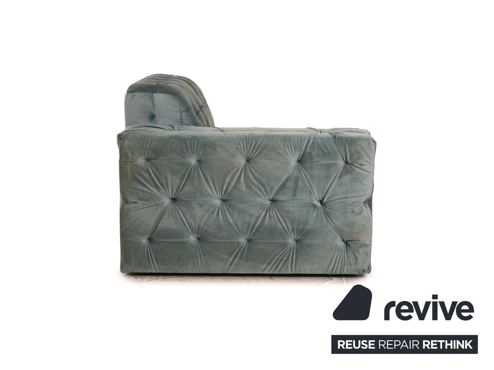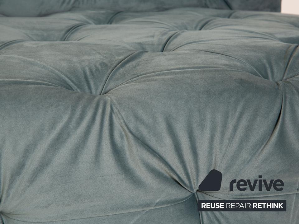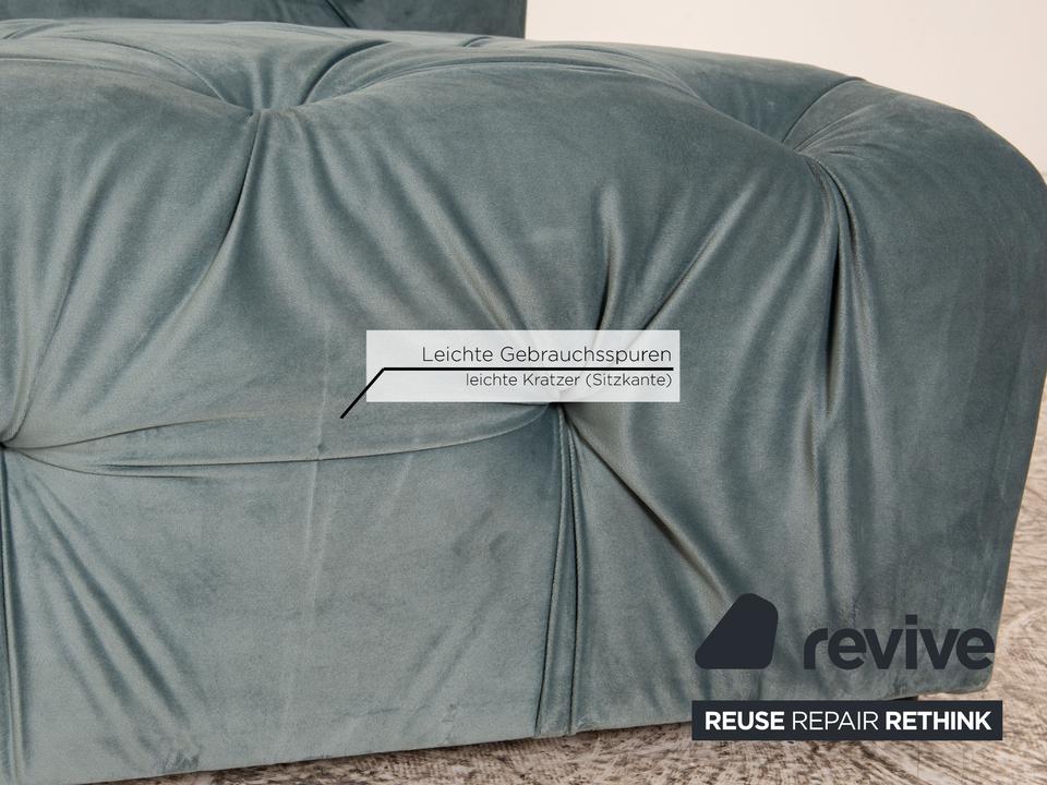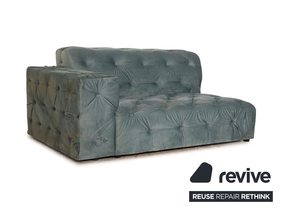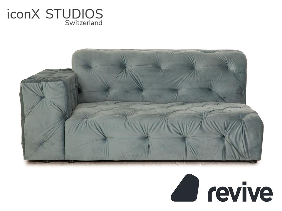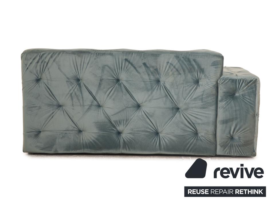 Die Liege Venus von IconX STUDIOS ist mit einem blauen Samt Stoff bezogen und steht auf schwarzen, unauffälligen Füßen. Sie zeichnet sich durch das helle, harmonische Design und die stilvolle Optik aus.