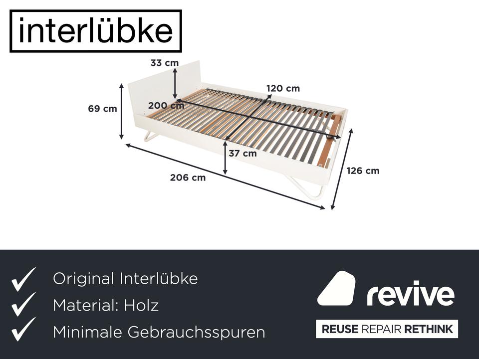 Das Interlübke Algo Bett überzeugt durch klare Linien, hochwertige Verarbeitung und zeitloses Design. In elegantem Weiß gehalten, wirkt es leicht und modern und fügt sich mühelos in unterschiedlichste Schlafzimmerkonzepte ein.Gefertigt aus hochwertigem Holz, steht das Bett für Stabilität und langlebige Qualität. Die reduzierte Formensprache unterstreicht den architektonischen Charakter des Designs, während das filigrane Gestell dem Bett eine angenehme Leichtigkeit verleiht. Der integrierte Lattenrost sorgt für eine solide Basis und zuverlässigen Liegekomfort.Mit seiner Liegefläche von 120 x 200 cm ist das Interlübke Algo ideal als komfortables Einzelbett oder platzsparende Lösung für moderne Wohnräume. Ein Designbett, das Funktion, Qualität und Ästhetik auf den Punkt bringt.