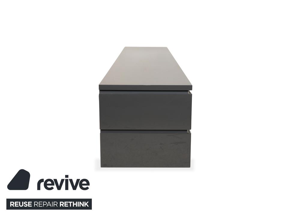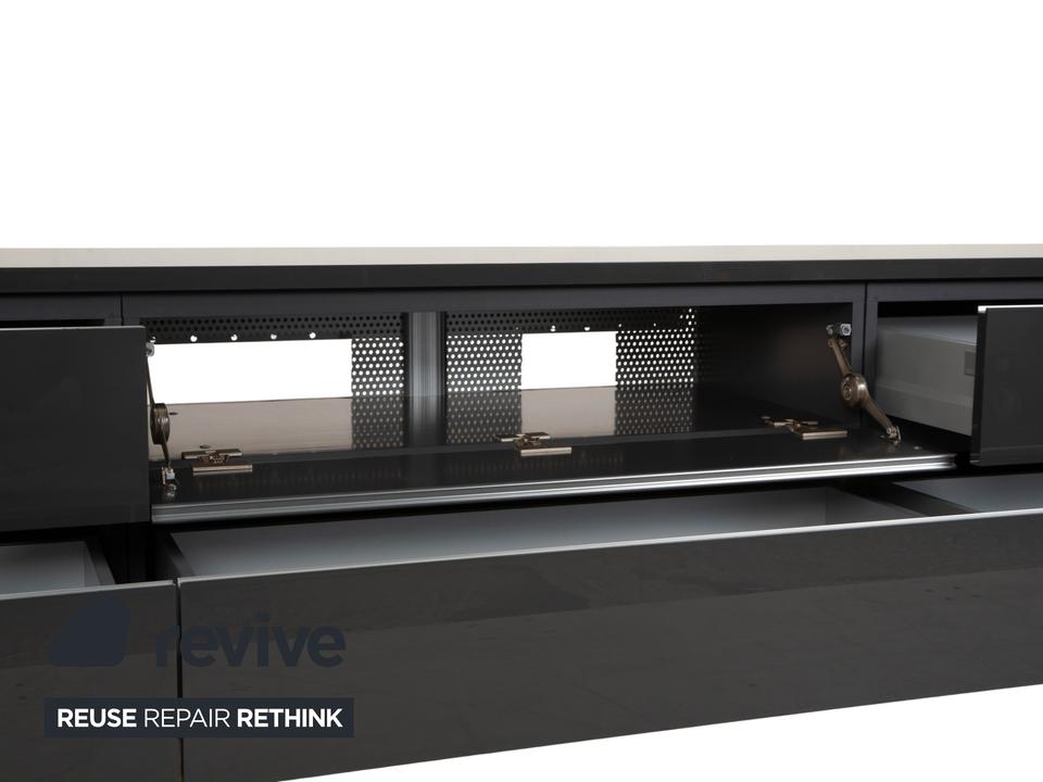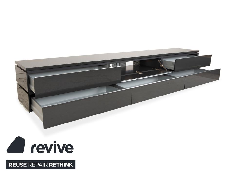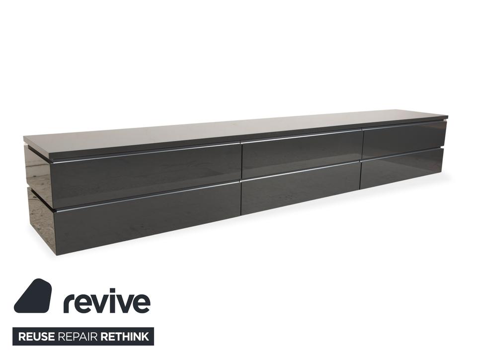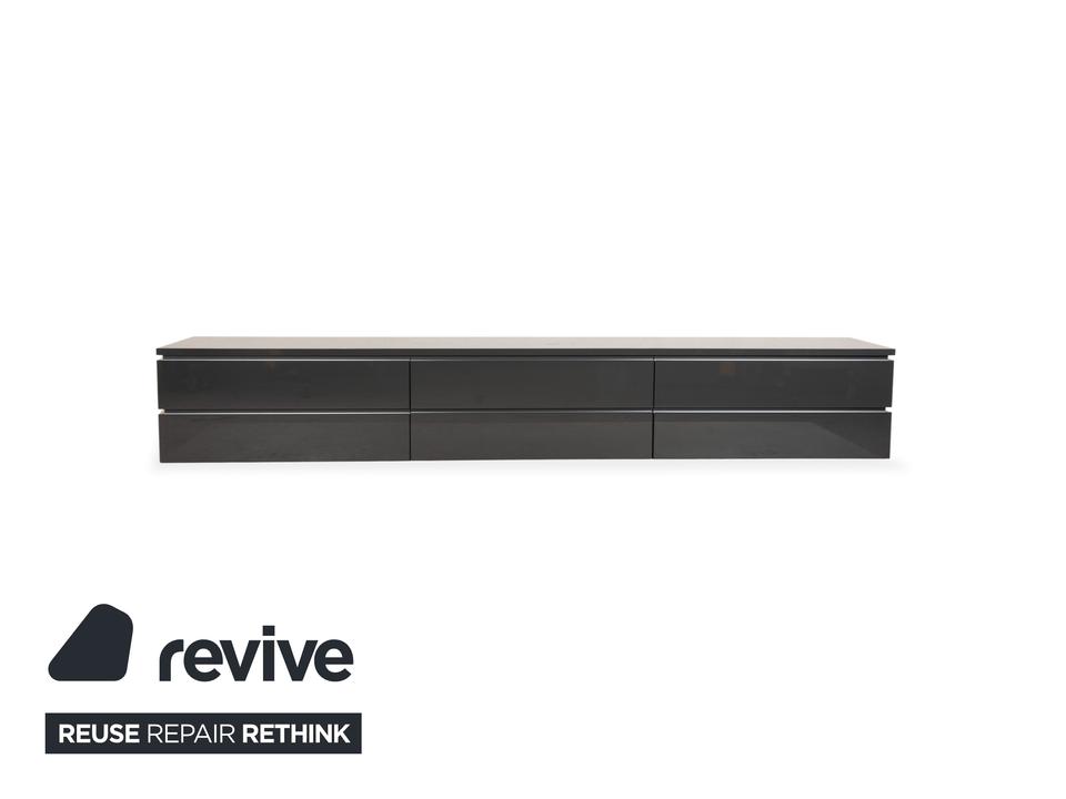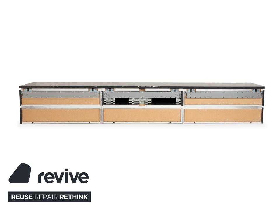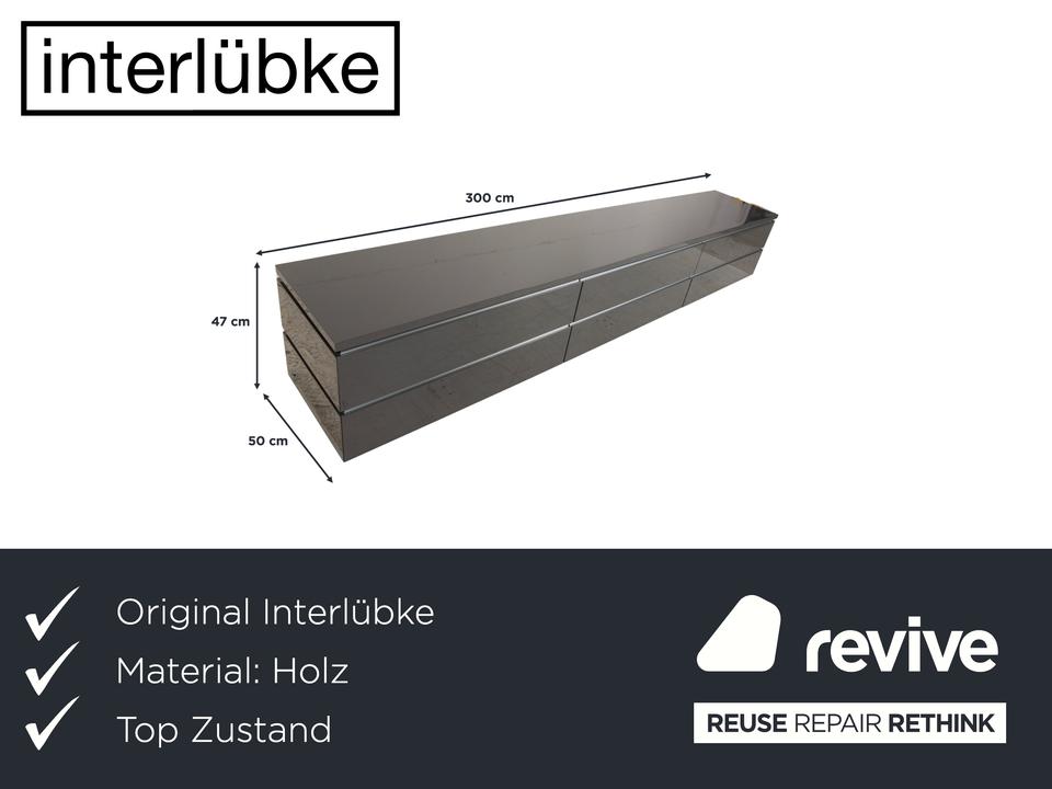 Dieses hochwertige interlübke Cube TV-Board in elegantem Grau überzeugt durch klare Linien, hochwertige Materialien und viel Stauraum. Mit einer Breite von 300 cm bietet es reichlich Platz und fügt sich clean in moderne Wohnräume ein.Links und rechts befinden sich jeweils zwei großzügige Schubladen.In der Mitte ist unten eine weitere Schublade integriert. Darüber liegt eine Klapptür, hinter der ein Medienfach mit Kabelführung auf der Rückseite untergebracht ist – ideal für Receiver, Konsolen oder Streaminggeräte etc.Die hochwertige Verarbeitung und das minimalistische Design machen dieses Cube-Sideboard zu einem zeitlosen Stück, das Funktion und Ästhetik perfekt verbindet.