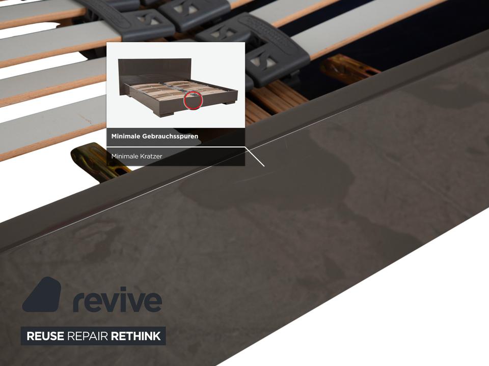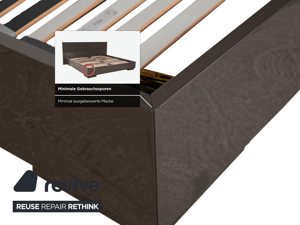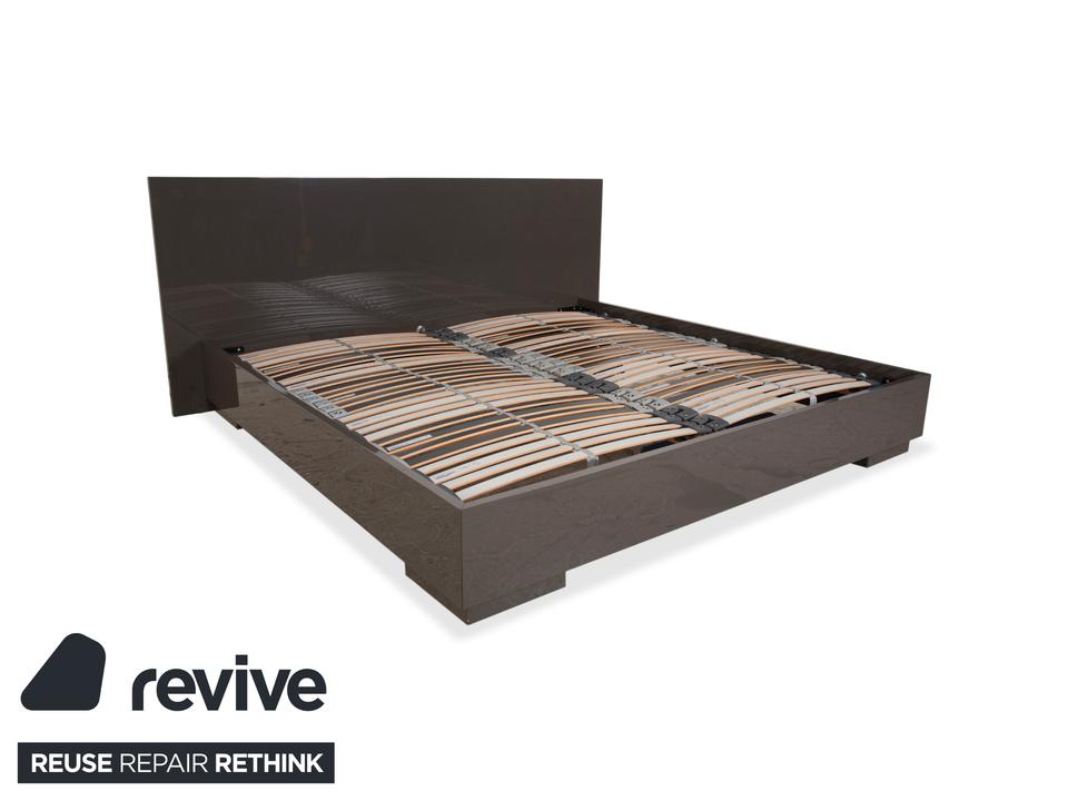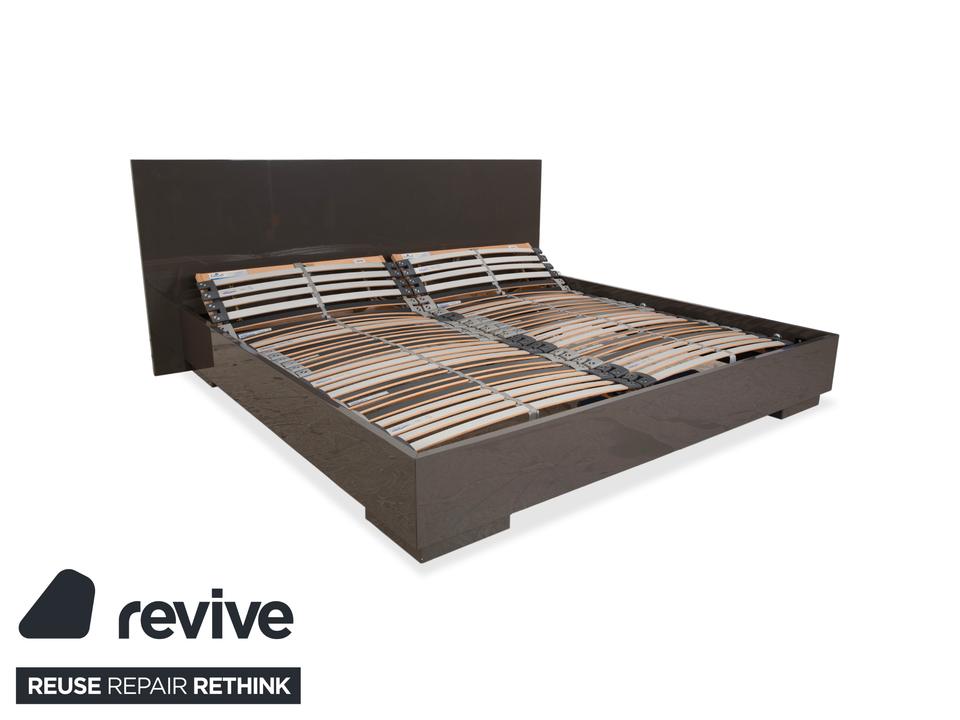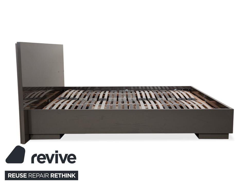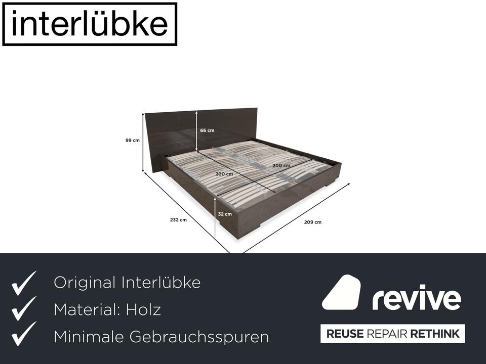Mit diesem Bett von Interlübke holst du dir pure Ästhetik und Großzügigkeit in dein Schlafzimmer. Der deutsche Premium-Hersteller ist berühmt für seine perfekten Lackoberflächen – und genau das macht dieses Modell so besonders. Der Rahmen und das geschlossene Kopfteil sind in einem edlen, glänzenden Grau gehalten (ein sehr warmer, tiefer Ton, der fast ins Taupe oder Schlamm geht), was dem Möbelstück eine unglaubliche Eleganz und Ruhe verleiht.Mit der „King Size“-Liegefläche von 200×200 cm hast du hier Luxus pur und Platz ohne Ende – eine echte Spielwiese. Das Design ist absolut zeitlos und minimalistisch: Klare Linien, keine störenden Schnörkel, einfach pure Form. Der Rahmen wirkt massiv und wertig, schwebt aber durch die dezenten Füße leicht über dem Boden. Ein Bett, das nicht nur als Schlafstätte dient, sondern als stilvolles Design-Objekt den ganzen Raum aufwertet.