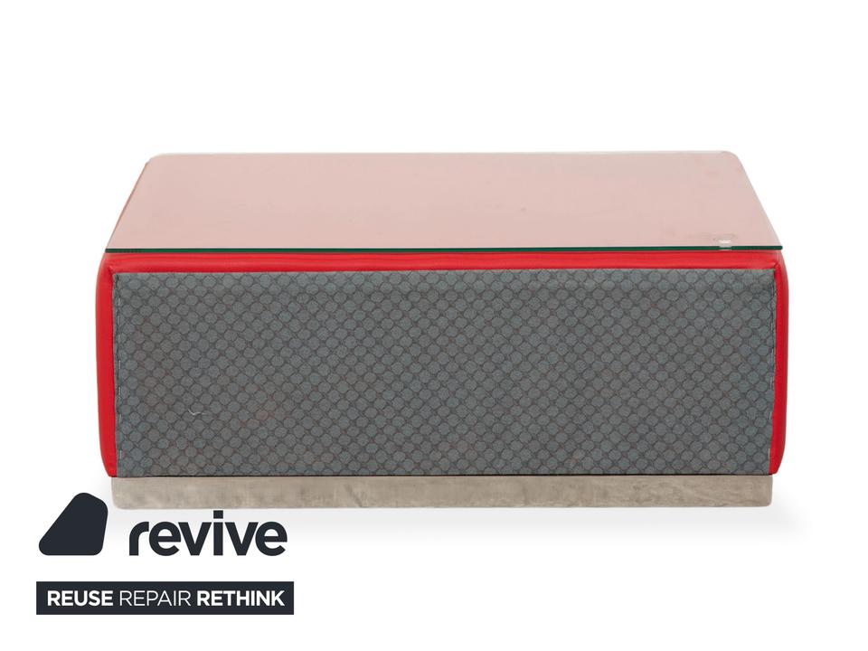Dieser kompakte Joop!-Tisch kombiniert rot bezogenes Leder mit einer klaren Glasplatte zu einem modernen, luxuriösen Look. Mit seiner rechteckigen Form eignet er sich ideal als Nachttisch, Sideboard-Ergänzung oder kleiner Couchtisch mit praktischer Schublade für Stauraum.Die weiche, rund ausgeformte Lederfront trifft auf einen chromfarbenen Griff, der dem Stück eine elegante, designerhafte Note gibt. Unten ruht der Tisch auf einem dezenten Metallrahmen, der das rote Leder optisch anhebt.Ein kompaktes Möbelstück, das trotz seiner Größe sofort auffällt – stylisch, hochwertig und typisch Joop!.