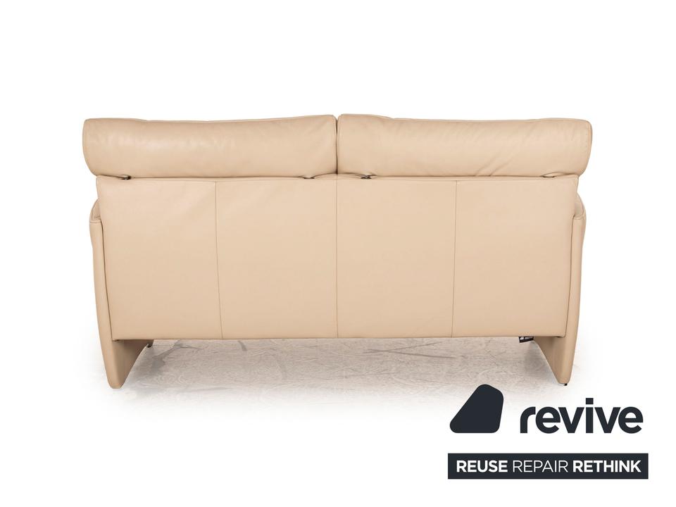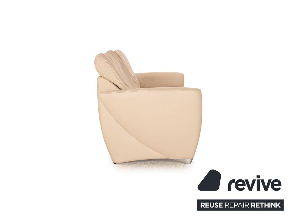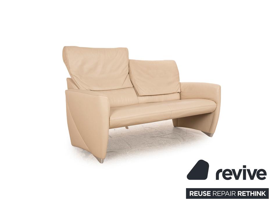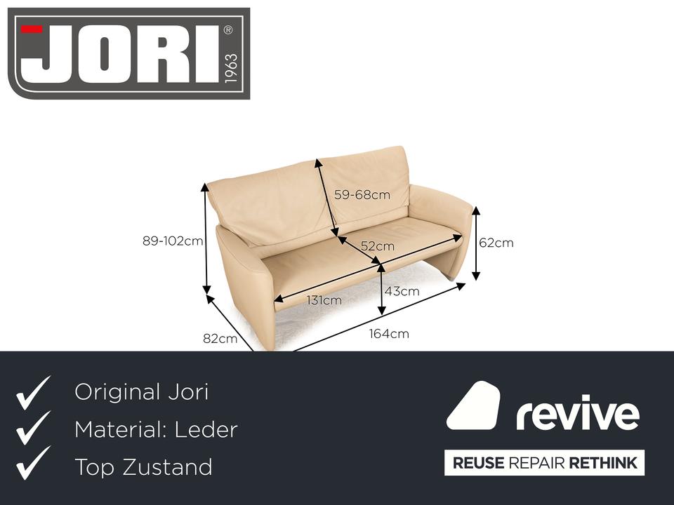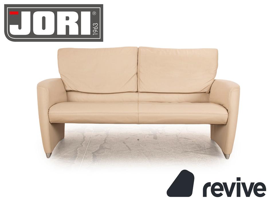 Das Angel 3250 Sofa von Jori ist mit einem cremefarbenen Echtleder bezogen und steht auf bodentiefen Seitenteilen. Das zeitlose Design und die verstellbaren Rückenlehnen zeichnen den Zweisitzer aus.