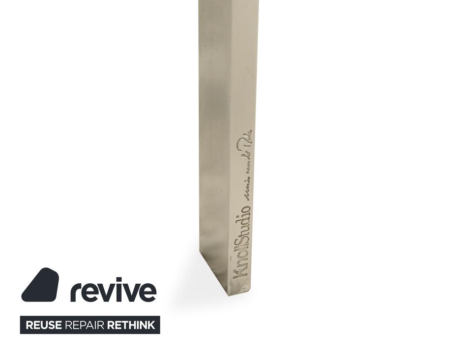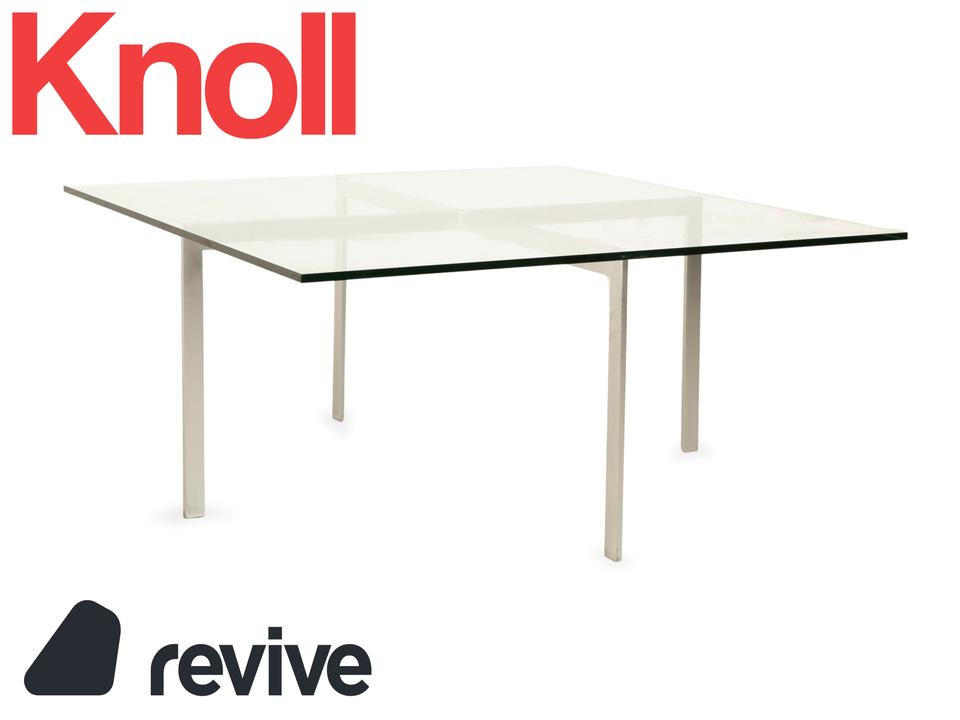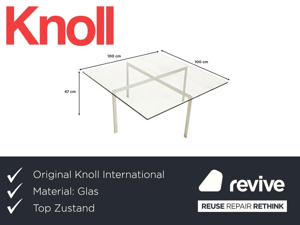 Der Barcelona Tisch von Knoll International besteht aus dickem Kristallglas und steht auf einem verchromten Gestell. Der Glastisch überzeugt durch sein unaufdringliches Design und die geraden Linien.