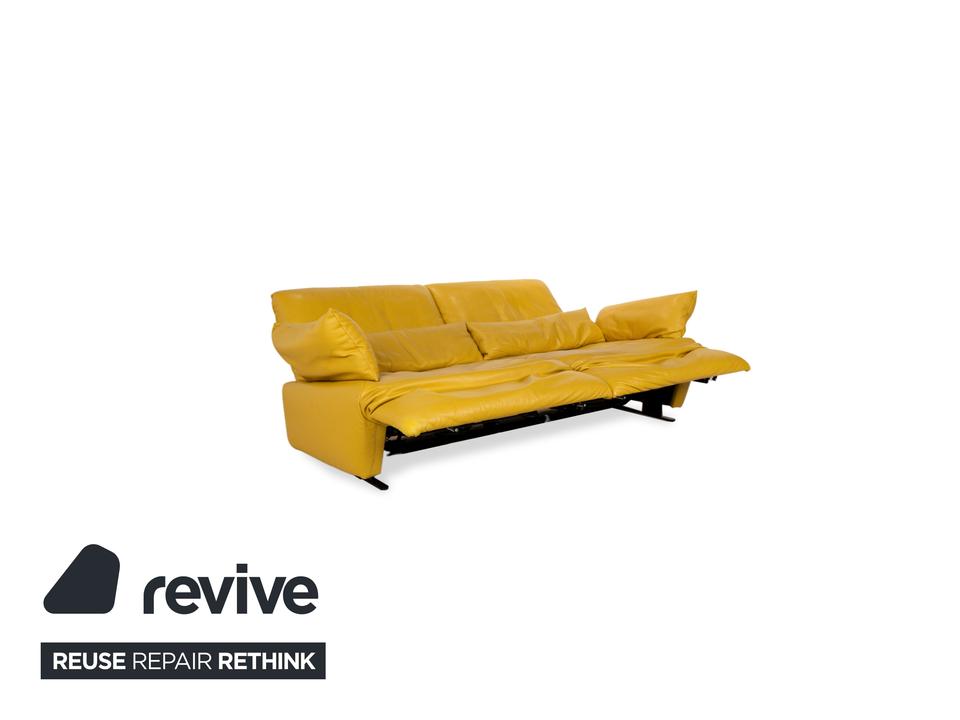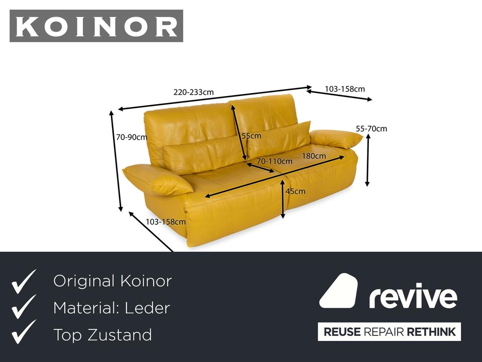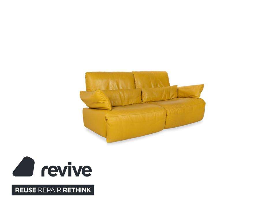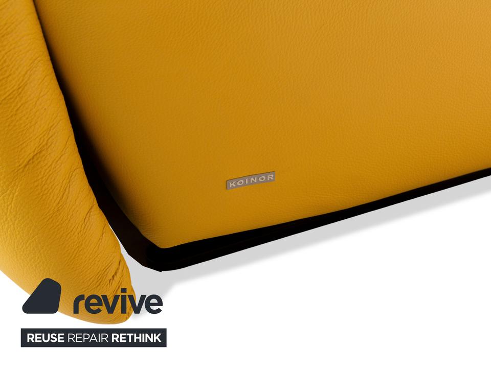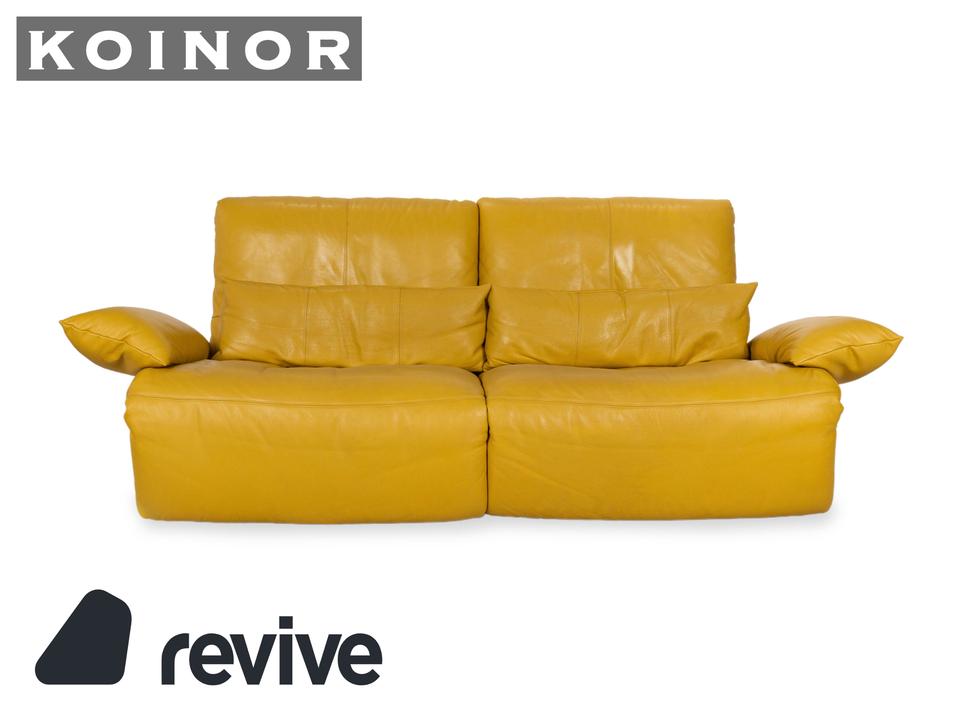 Das Sofa Easy von Koinor ist mit einem gelben Echtleder bezogen und steht auf schmalen, kaum sichtbaren Metallkufen. Es verfügt über zahlreiche elektrische Verstellmöglichkeiten, so dass maximaler Komfort gewährleistet wird. Die üppige Polsterung das ausladende Format zeichnen diesen Zweisitzer aus.
