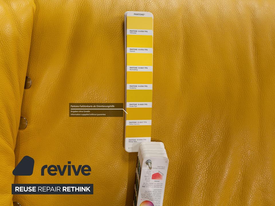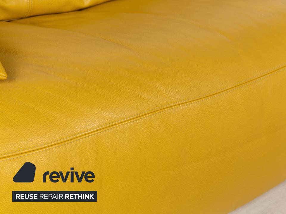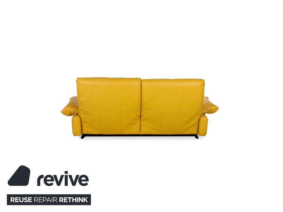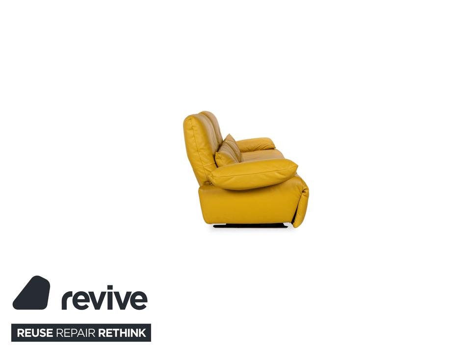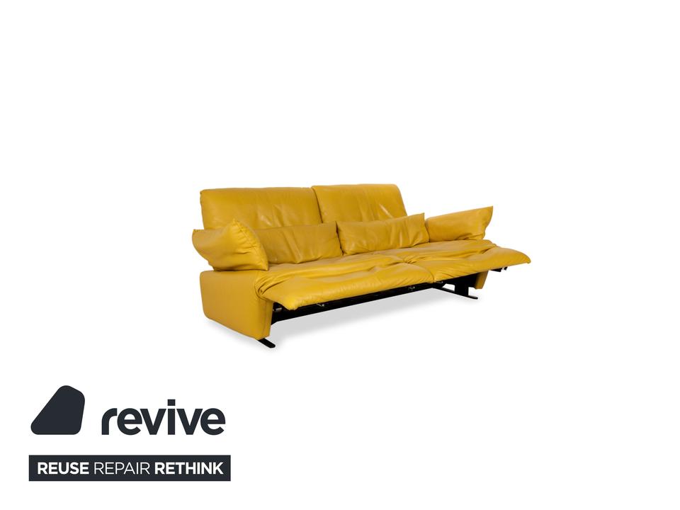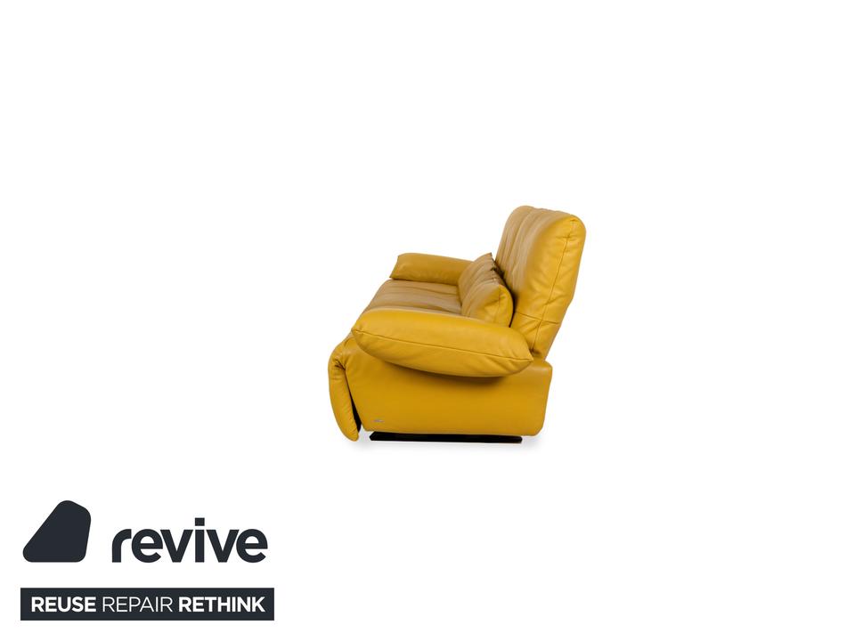 Das Sofa Easy von Koinor ist mit einem gelben Echtleder bezogen und steht auf schmalen, kaum sichtbaren Metallkufen. Es verfügt über zahlreiche elektrische Verstellmöglichkeiten, so dass maximaler Komfort gewährleistet wird. Die üppige Polsterung das ausladende Format zeichnen diesen Zweisitzer aus.