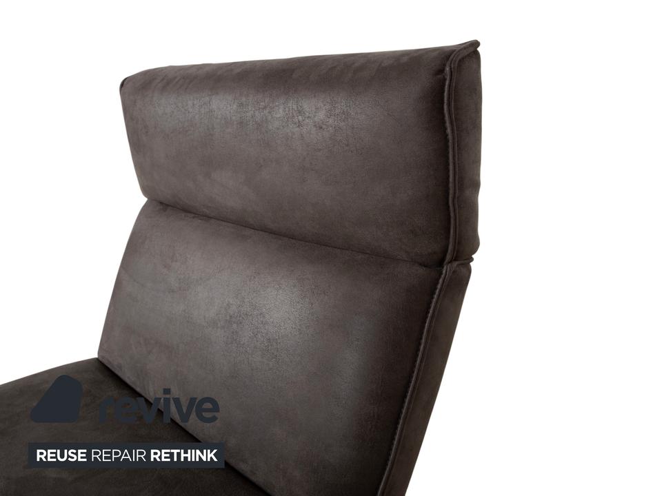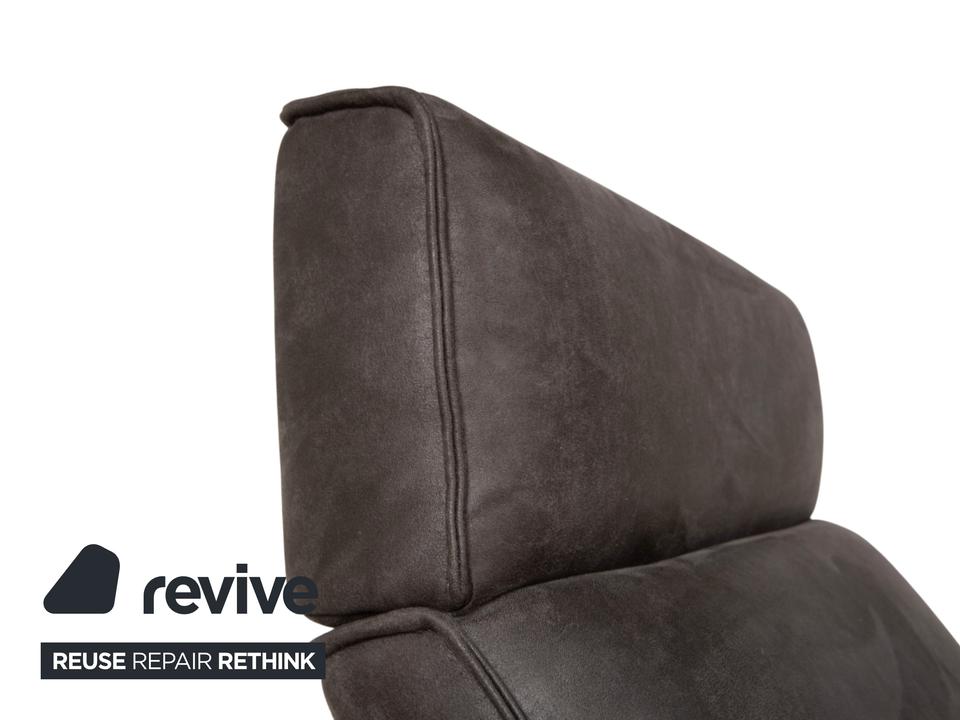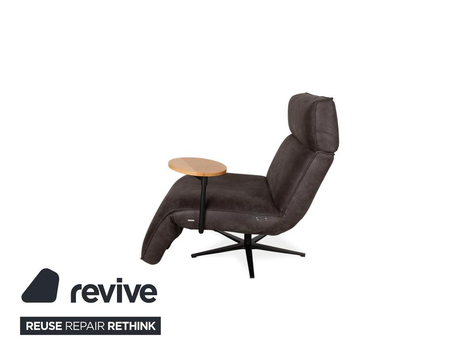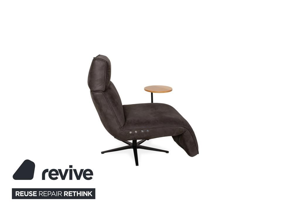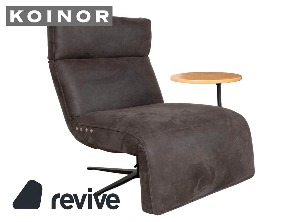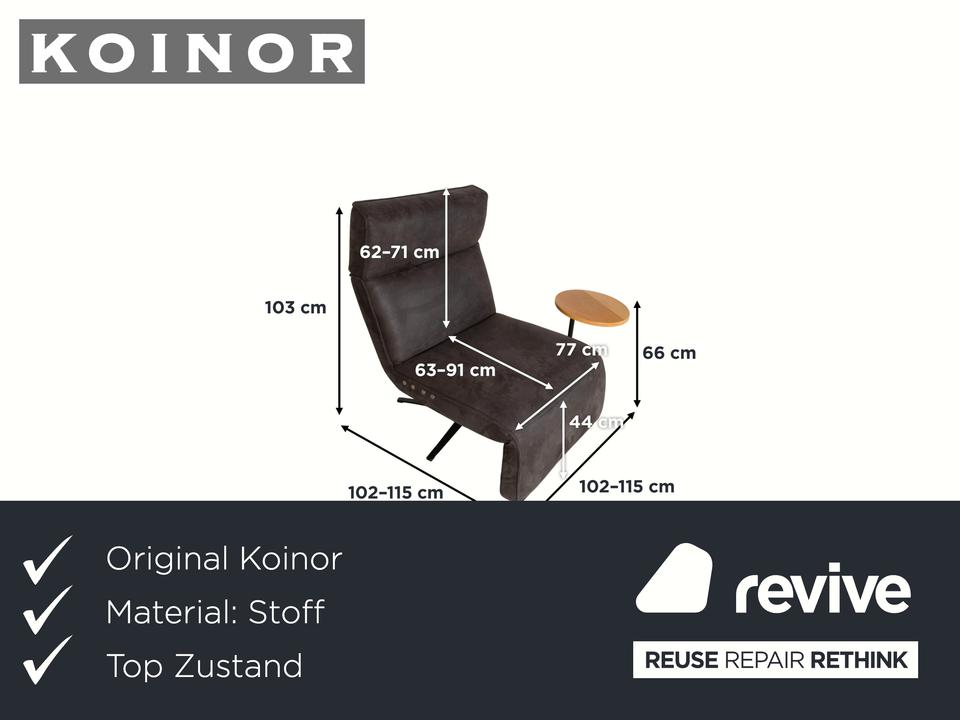 Hier bekommst du mit dem Etino von KOINOR ein echtes Komfort-Highlight, das sofort zeigt, dass gemütliche Abende hier Programm sind. Das Design besticht durch die großzügige Polsterung und die breite Sitzfläche, die durch die feine Textur des anthrazitfarbenen Stoffes einen sehr wohnlichen und modernen Look bekommt. Der Sessel steht auf einem stabilen, dunklen Sternfuß.Das Herzstück ist auf jeden Fall die elektrische Relaxfunktion, die sich über dezente Knöpfe an der Außenseite steuern lässt: Hierbei fahren das Fußteil und die Rückenlehne stufenlos in eine komfortable Liegeposition, während das höhenverstellbare Kopfteil zusätzliche Unterstützung für Nacken und Kopf bietet.Ein weiters Highlight ist der integrierte, schwenkbare Beistelltisch aus schicken Holz, der an einem unauffälligen schwarzen Metallarm befestigt ist. Die Tischplatte lässt sich flexibel um schwenken, sodass sie wahlweise als praktische Ablage direkt vor dem Nutzer dient oder mit einem Handgriff bequem zur Seite geschwenkt werden kann. Schwenkbarer Beistelltischelektische Relaxfunktion: Rückenlehne und Fußteilverstellbare Kopfstütze