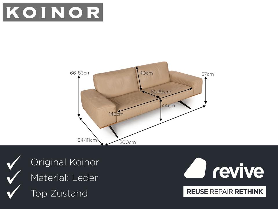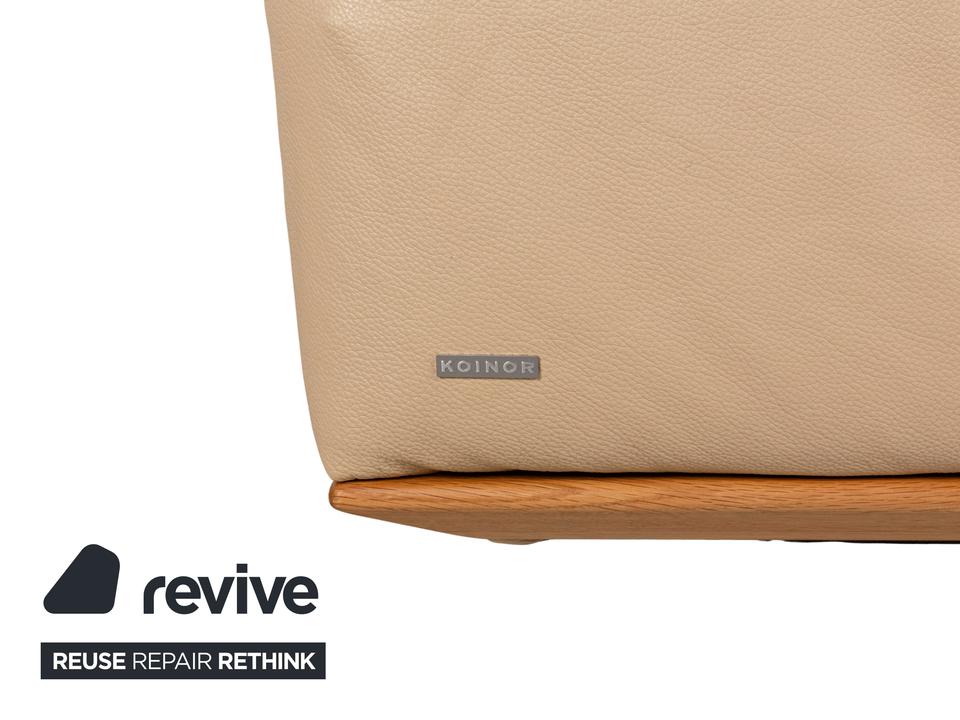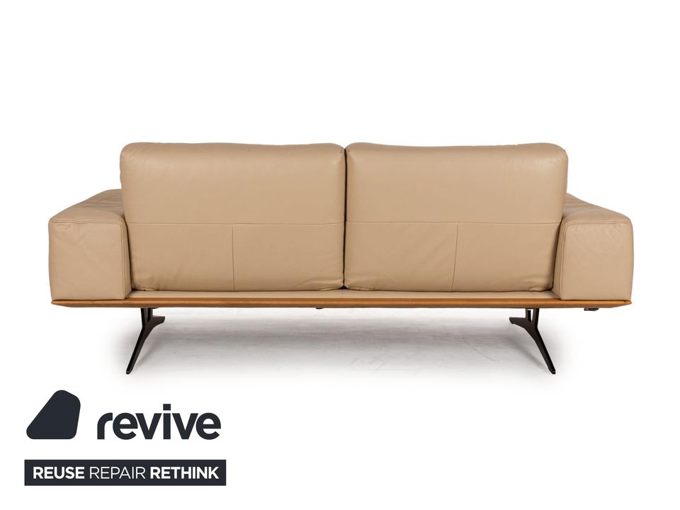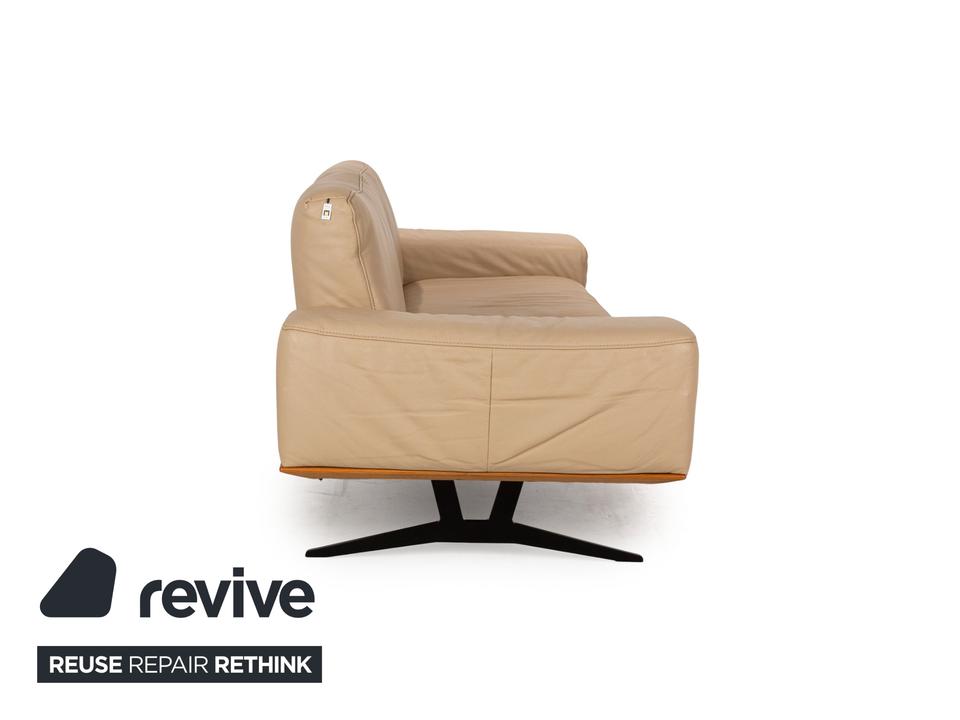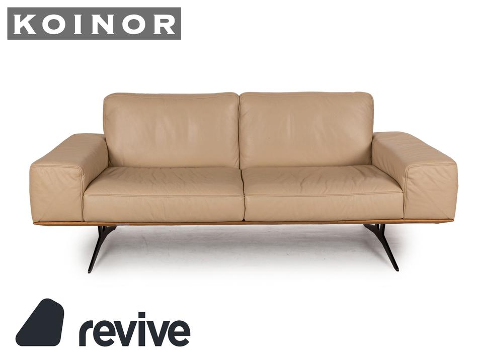 Das Hiero Sofa von Koinor ist mit einem beigen Echtleder bezogen und steht auf Metallfüßen.