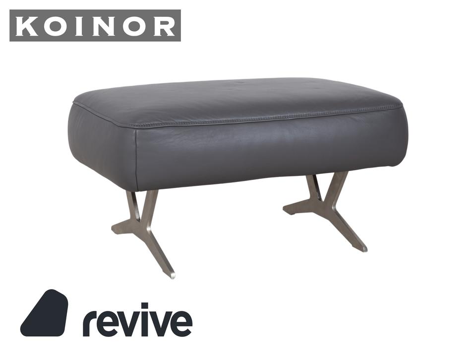 Dieser kompakte Hocker der Serie MONROE vom deutschen Hersteller KOINOR ist die ideale Ergänzung für jedes Wohnzimmer. Der Hocker besticht durch seine einladend rundliche Form und das praktische Format, das sich unkompliziert in verschiedene Einrichtungsstile integrieren lässt. Du kannst ihn ganz klassisch nutzen, um die Beine hochzulegen, oder ihn als zusätzliche Sitzgelegenheit für Gäste einplanen. Der Korpus in grauem Leder steht auf markanten, fächerförmigen Metallkufen, die dem Polsteraufbau eine angenehme visuelle Leichtigkeit verleihen.