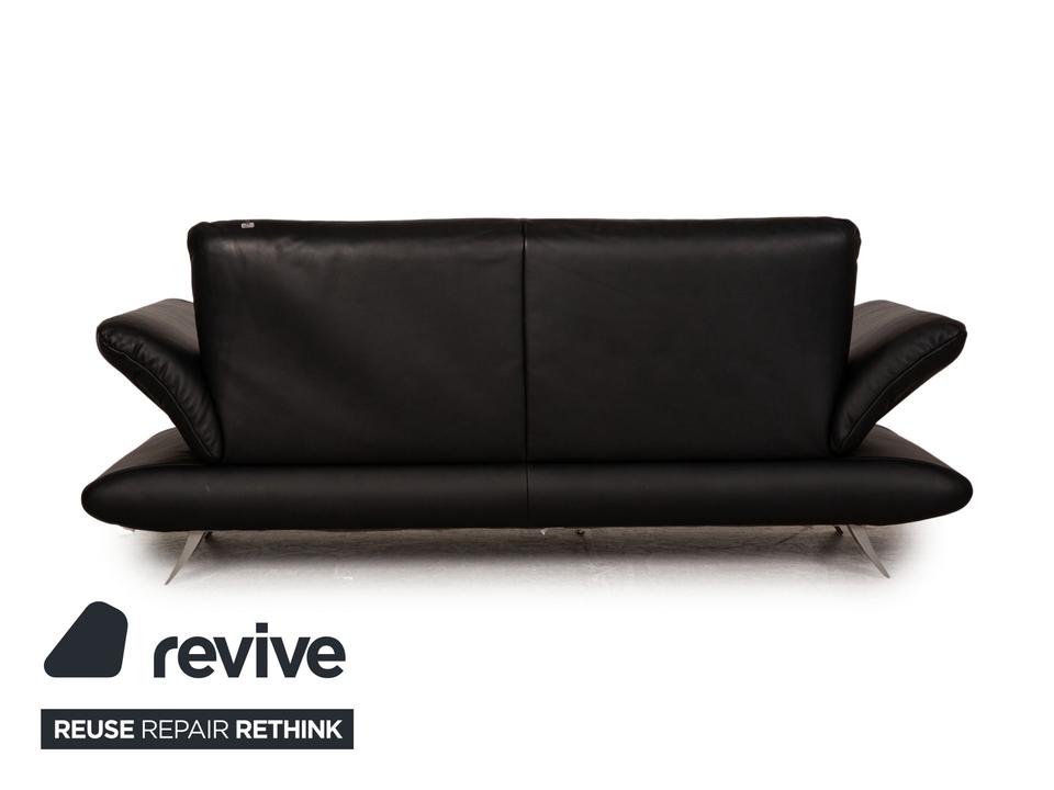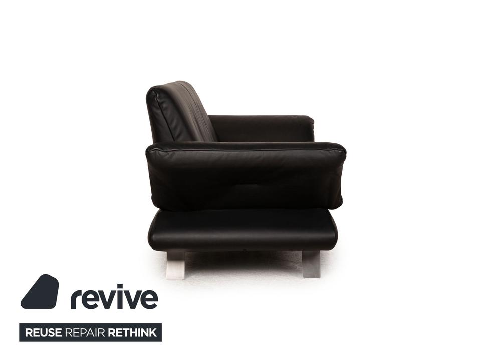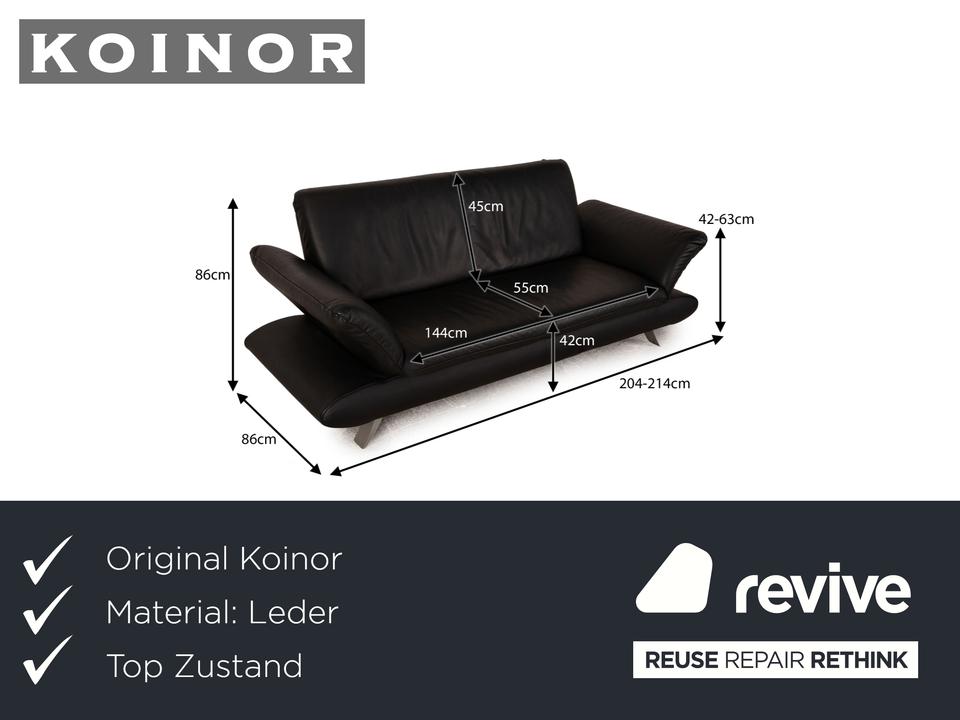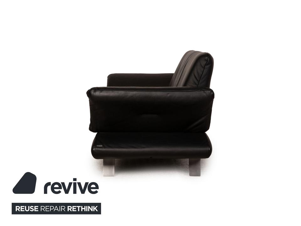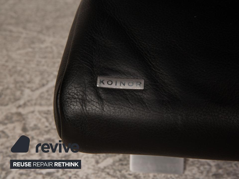 Das Rossini Sofa von Koinor ist mit schwarzem Leder bezogen und steht auf Metallfüßen. Der Zweisitzer überzeugt mit seinem zeitlosen Design und den verstellbaren Armlehnen.