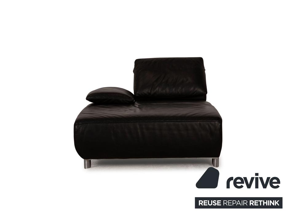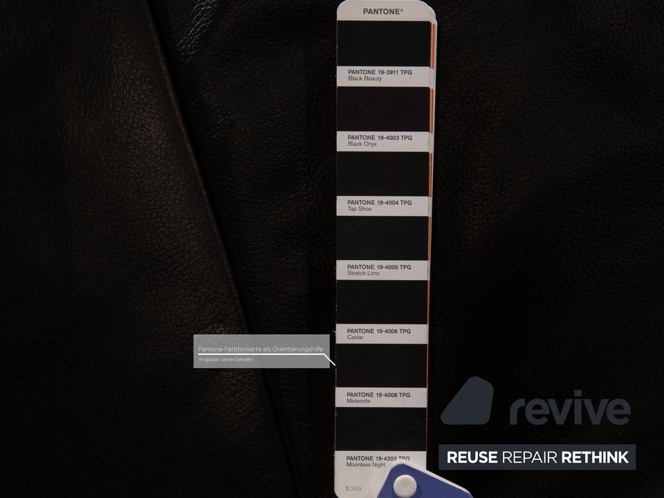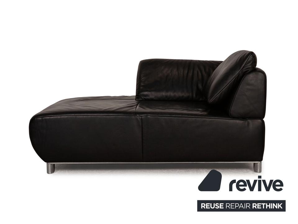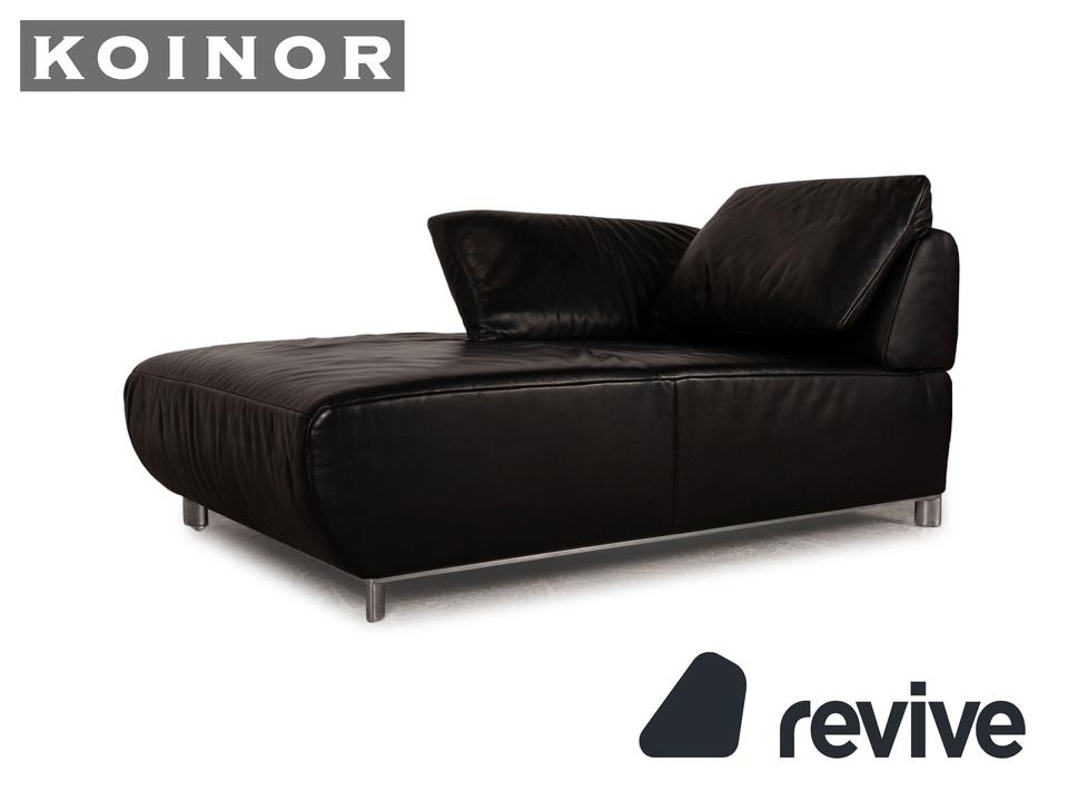Die Liege Volare von Koinor ist mit einem schwarzen Echtleder bezogen und steht auf schmalen Metallfüßen. Sie zeichnet sich durch das schlichte, klassische Design und die zeitlose Optik aus.