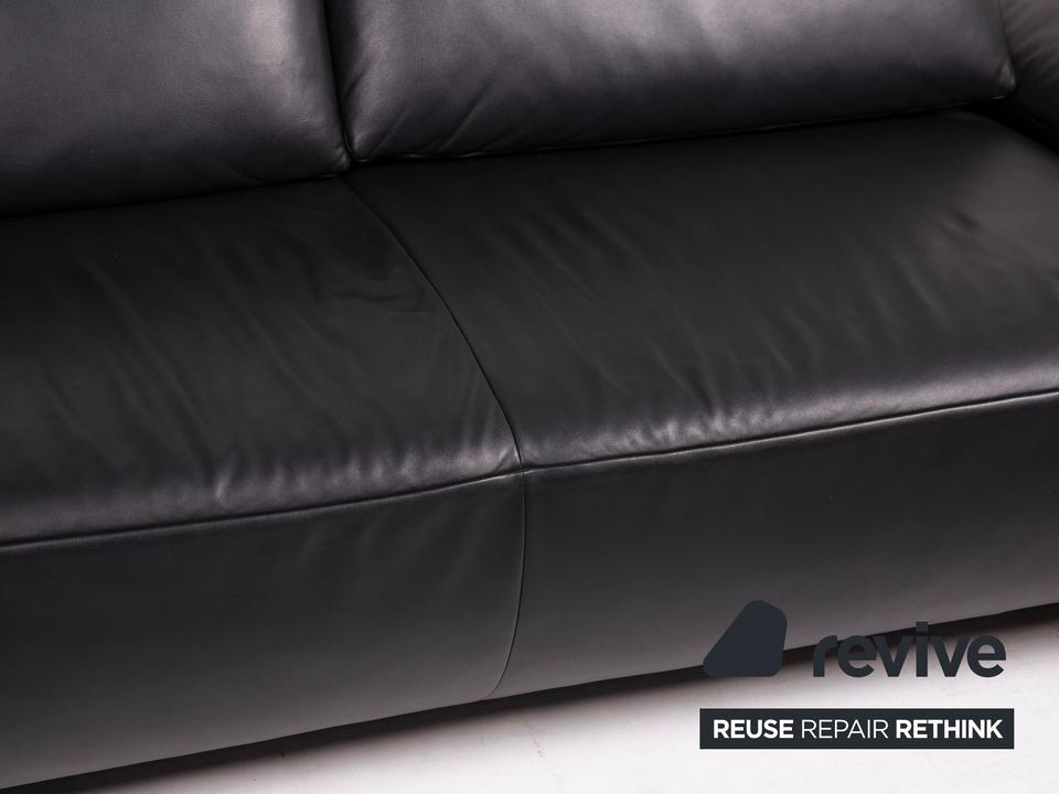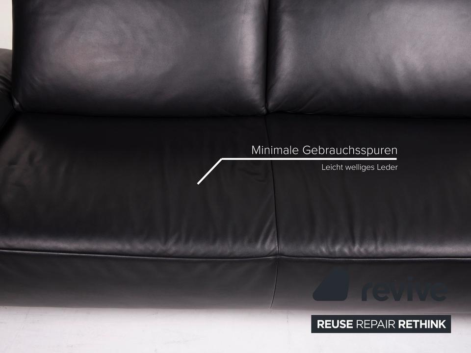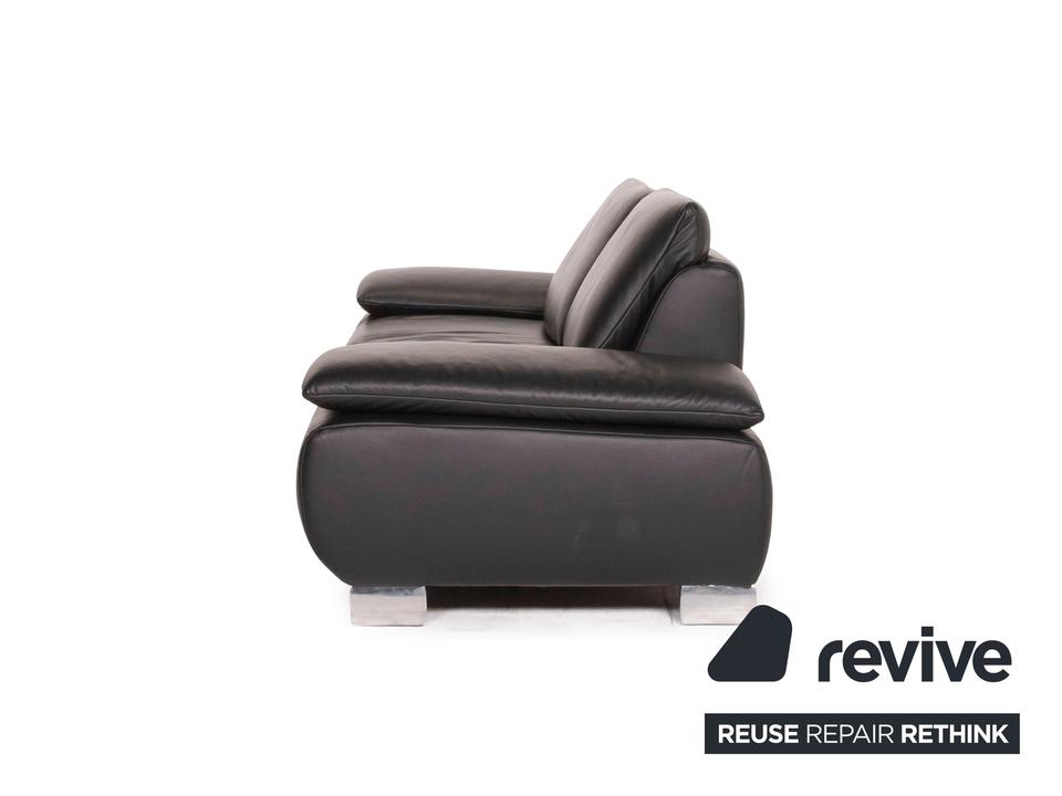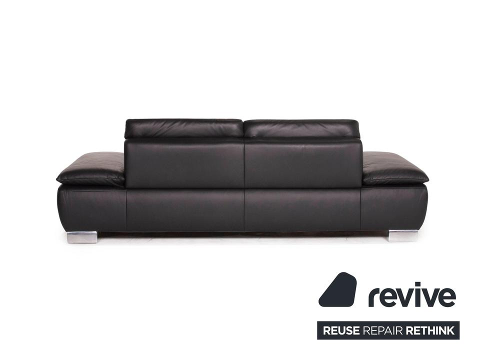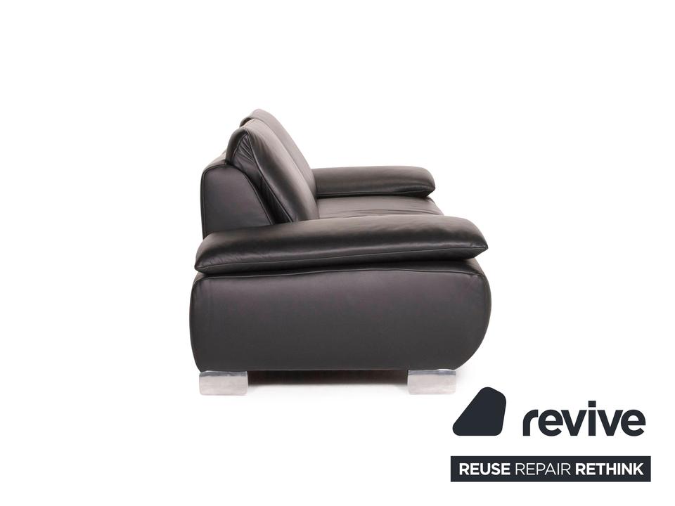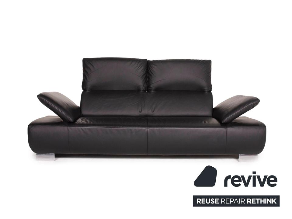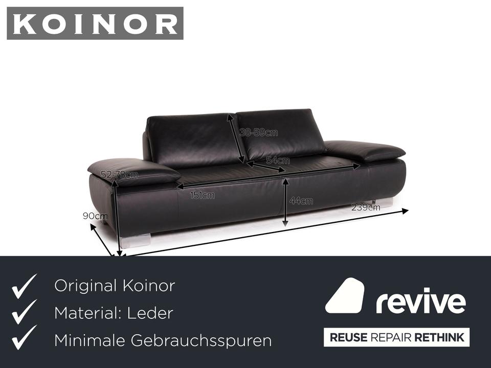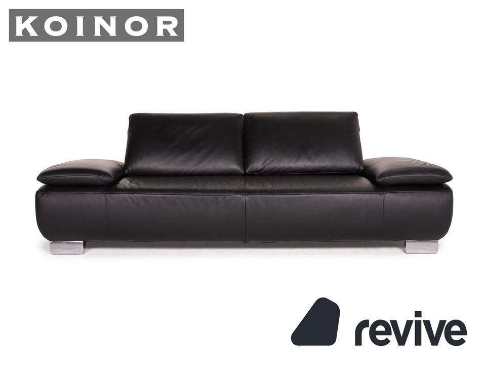 Der Dreisitzer Volare von Koinor ist mit einem schwarzen Echtleder bezogen und steht auf schlanken Metallfüßen. Die Arm- und Rückenlehnen können für mehr Komfort aufgestellt werden. Das klassische zeitlose Design lässt in jede Einrichtung integrieren.