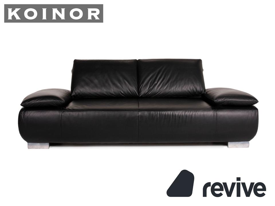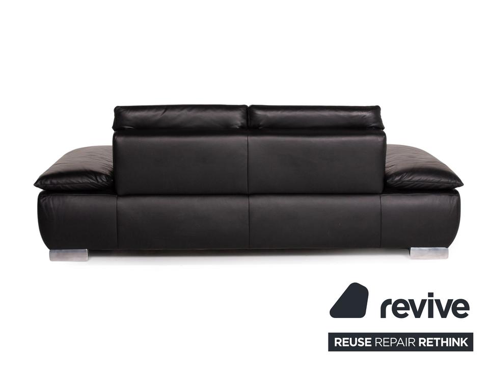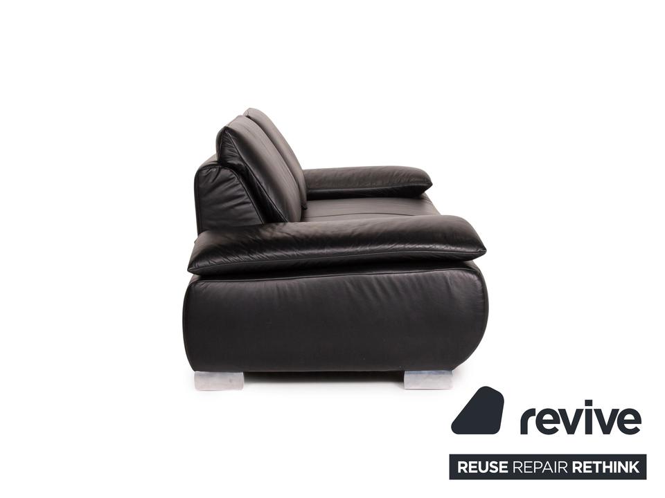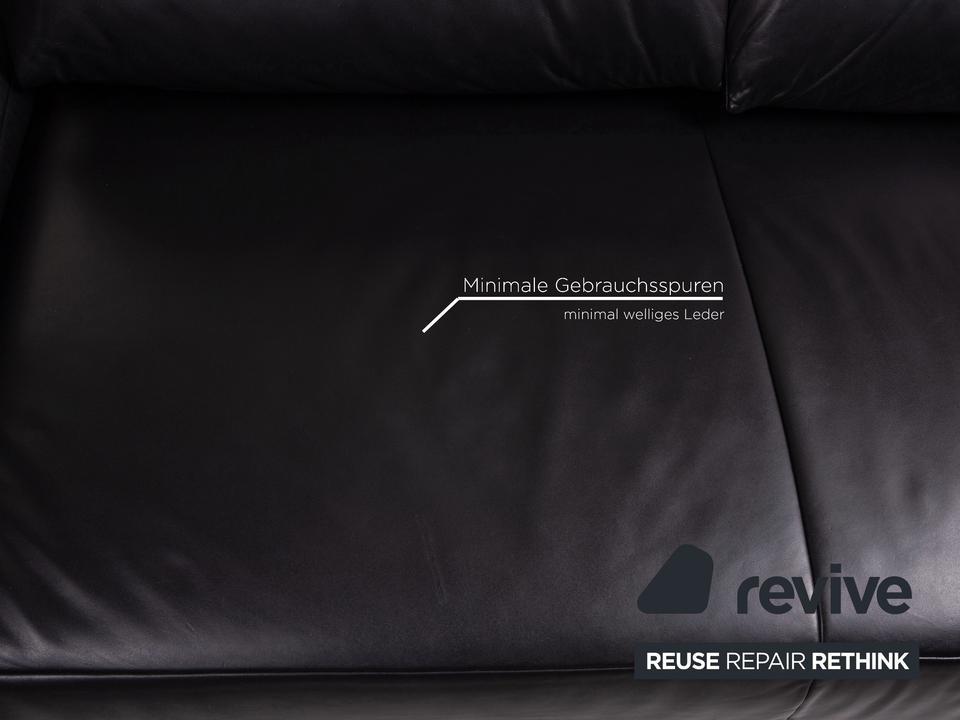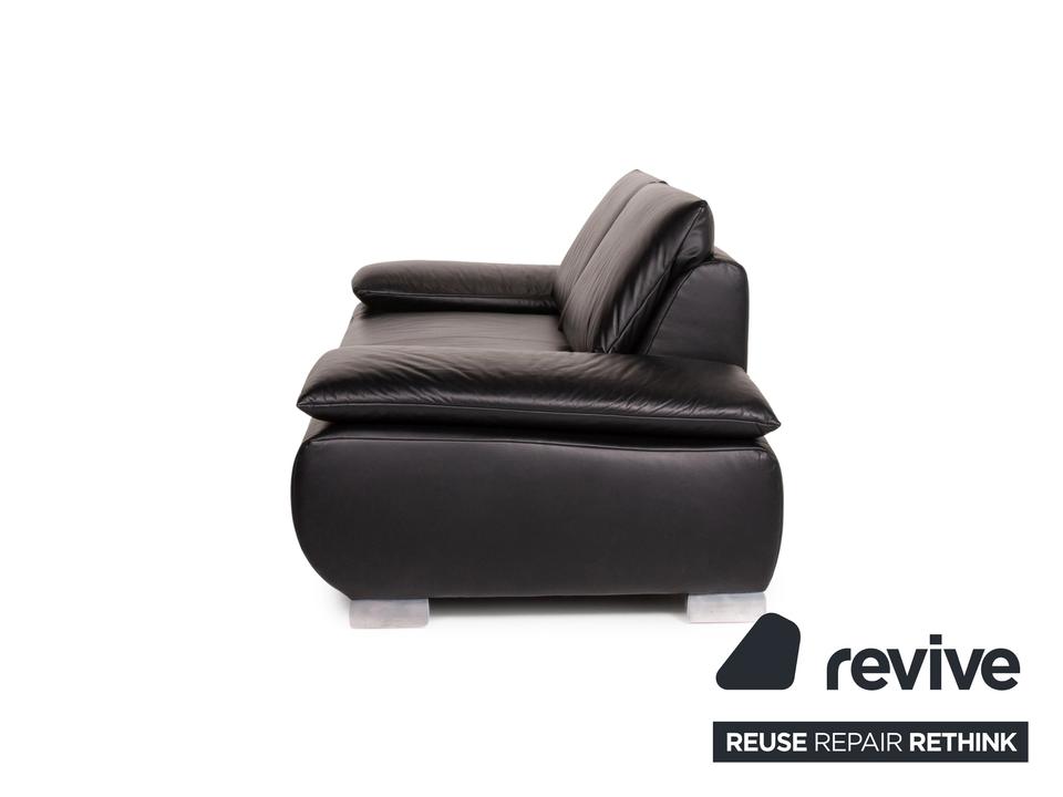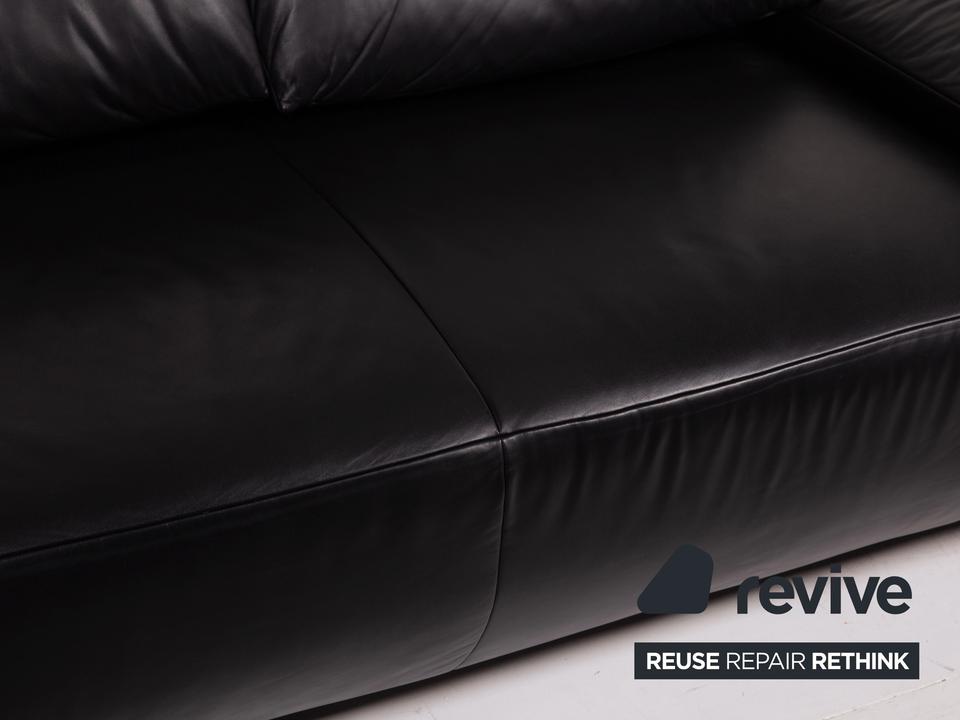 Das Modell Volare des deutschen Herstellers ist mit einem schwarzen Echtleder bezogen und steht auf flachen Metallfüßen. Die markante Formsprache prägt das Design des Zweisitzers. Die Rückenlehnen sowie Armlehnen können hochgeklappt werden.