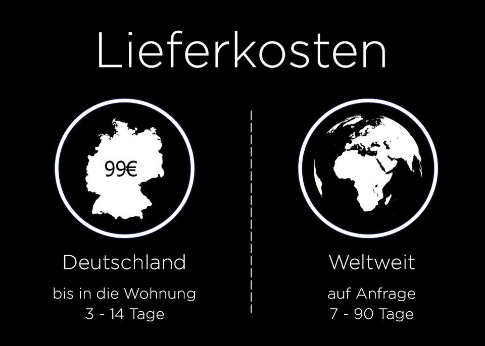 Die Lieferung erfolgt durch zwei unserer Mitarbeiter bis zum gewünschten Platz (inkl. Verpackungsentsorgung).