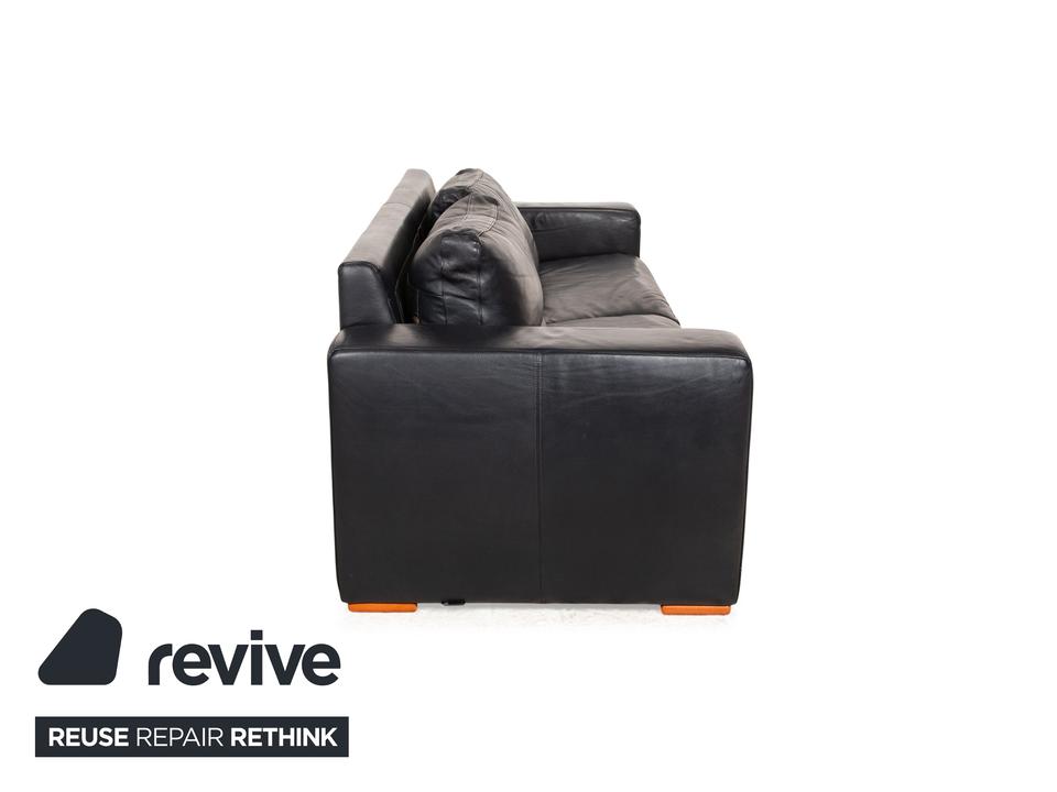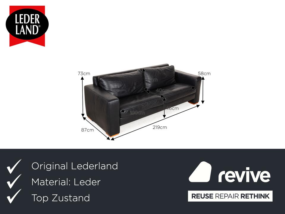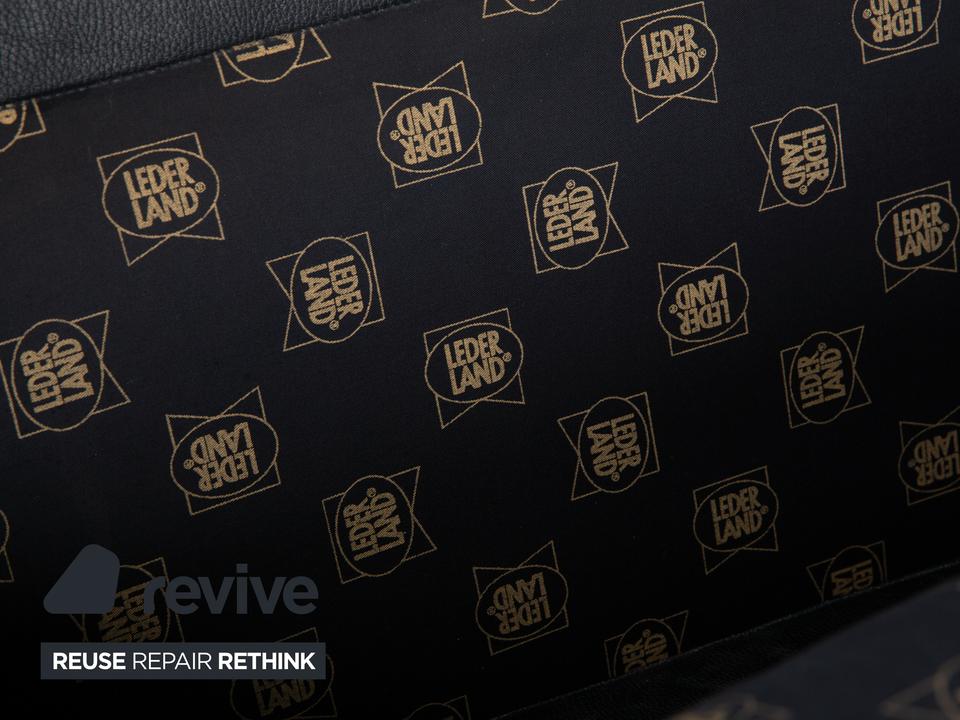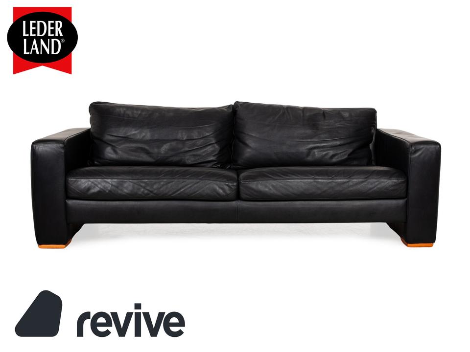 Das Sofa von Lederland ist mit einem schwarzen Echtleder bezogen und steht auf massiven Füßen. Das klassische, zeitlose Design und der Sitzkomfort zeichnen den Dreisitzer aus.