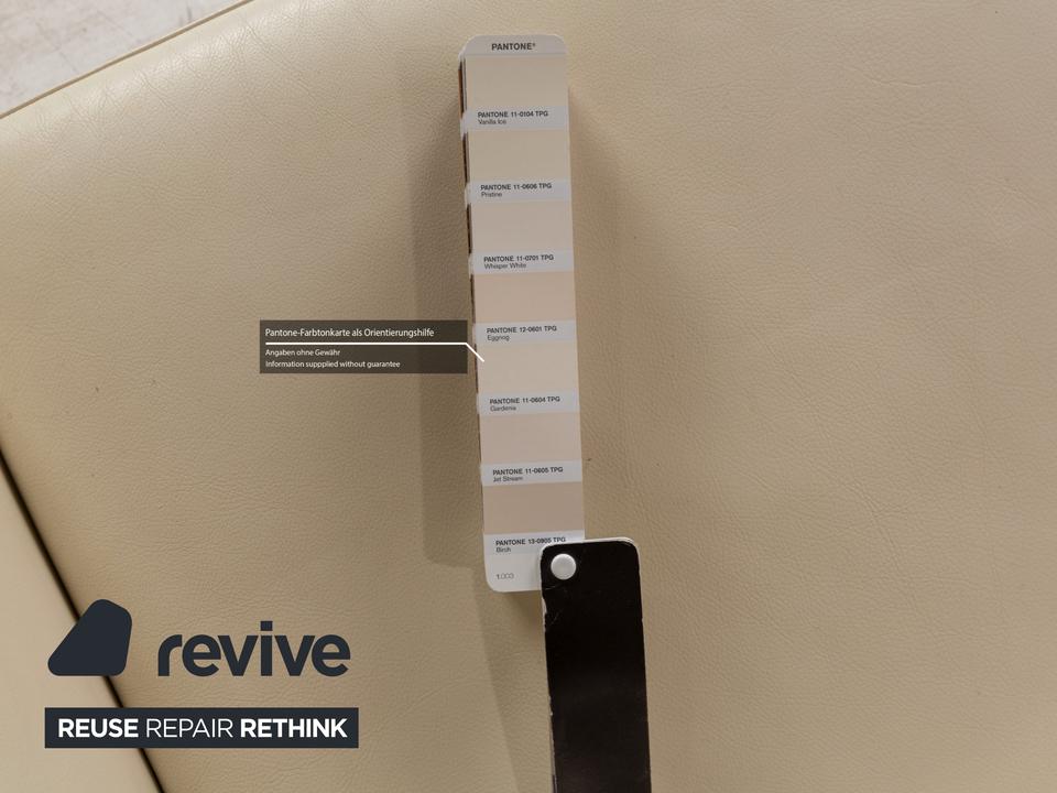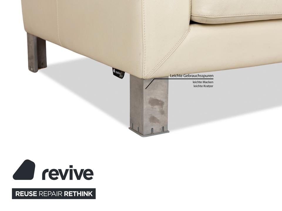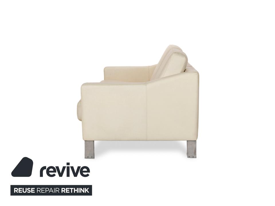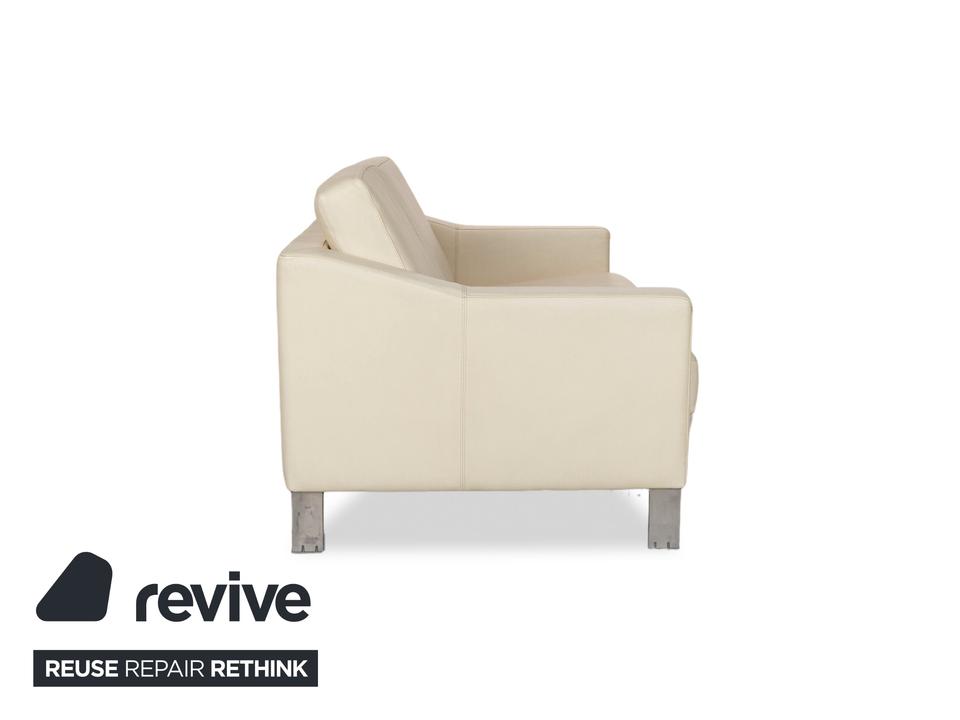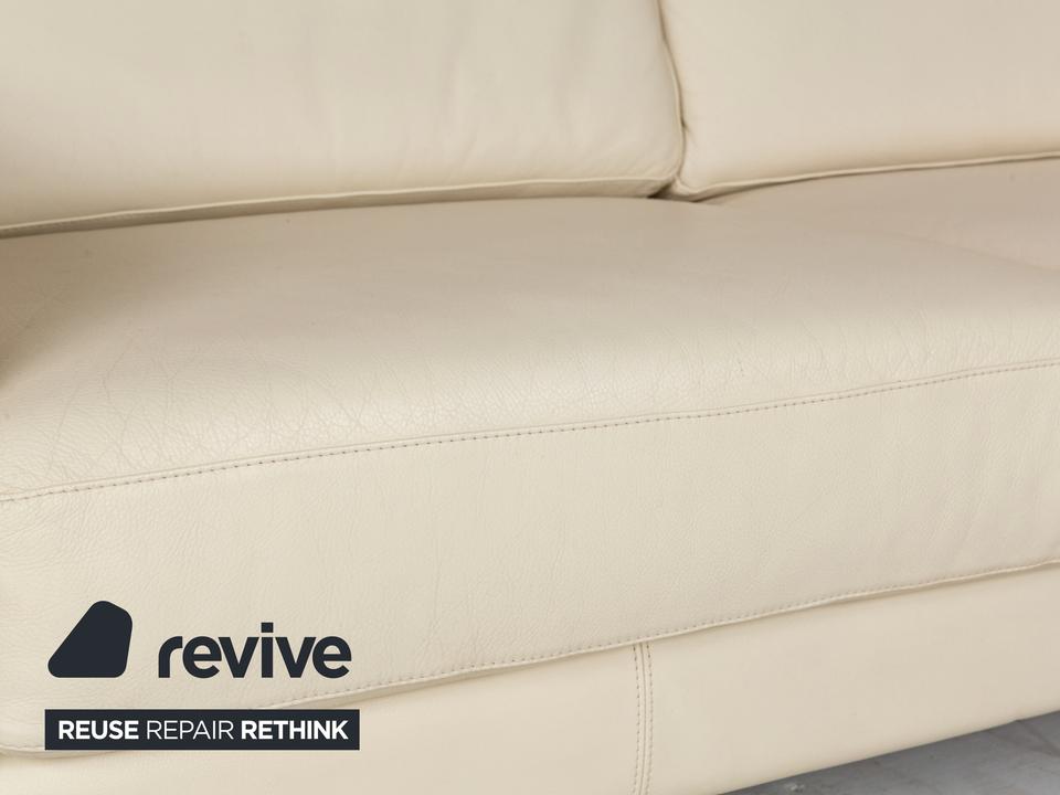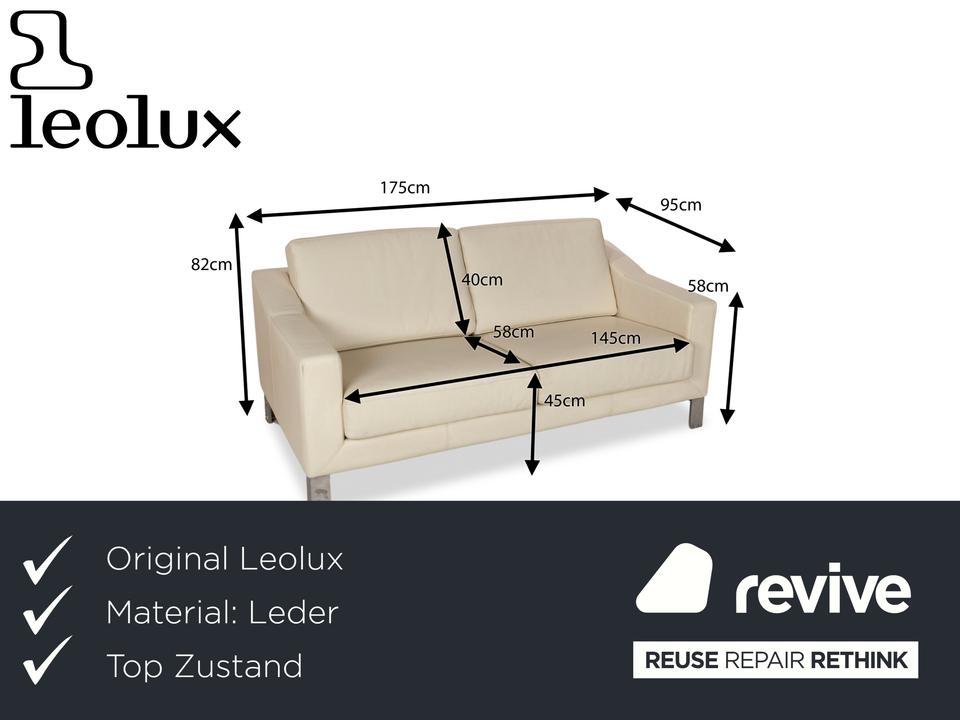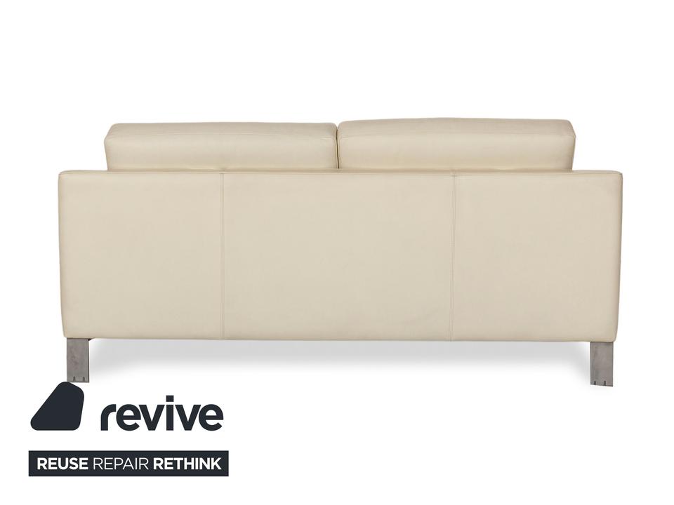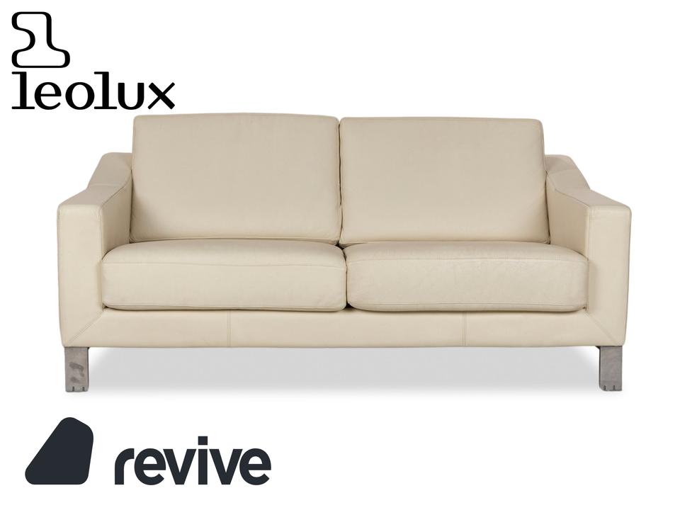Der Zweisitzer Antonia von Leolux überzeugt durch sein klassisches Design und hohe Rückenpolster.Das Sofa ist mit einem cremefarbenen Echtleder bezogen und steht auf Metallfüßen im Winkelprofil.