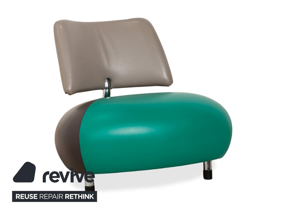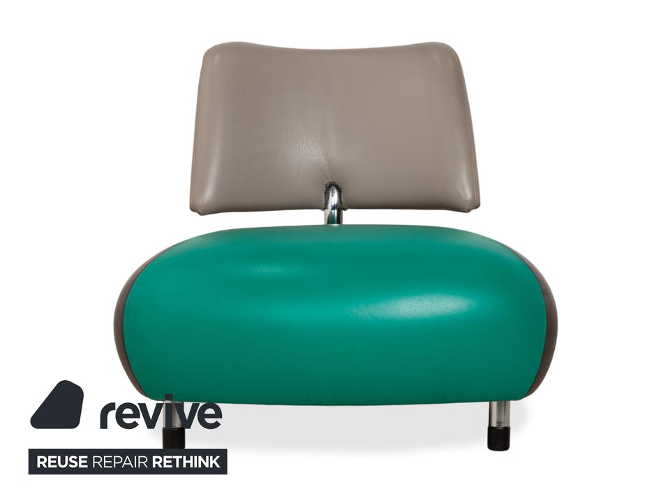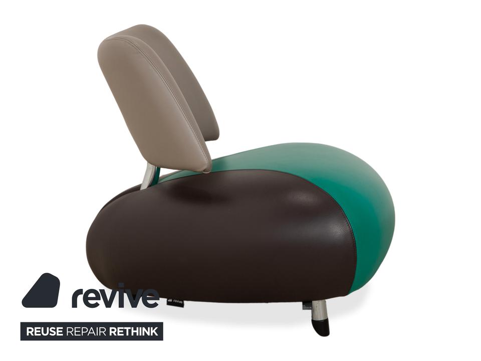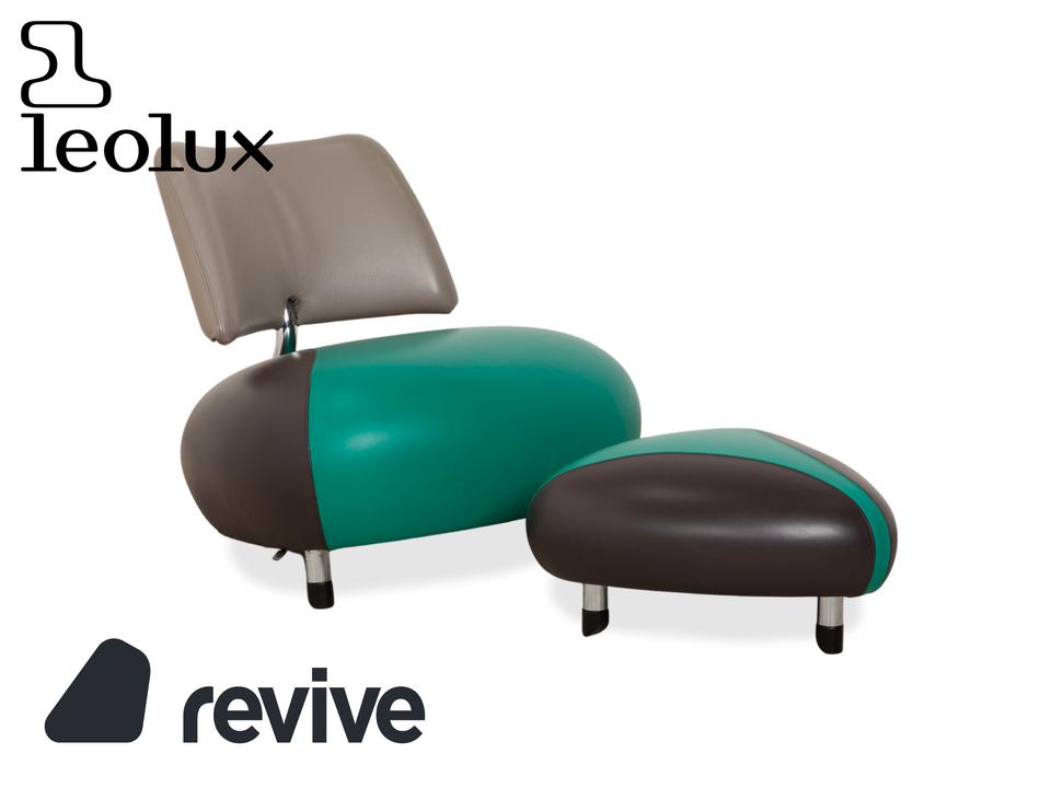 Dieses Set besteht aus dem Leolux Pallone Ledersessel in einer ausdrucksstarken Farbkombination aus Grün, Dunkelgrau und Taupe sowie dem passenden Pallone Lederhocker in Grün und Dunkelgrau. Der Sessel besticht durch seine außergewöhnliche Form: Die Sitzfläche erstrahlt in intensivem Grün, die seitlichen Elemente sind in Dunkelgrau gehalten und die geschwungene Rückenlehne in einem warmen Taupe. Ergänzt wird dieses Design durch den farblich abgestimmten Pallone Hocker, der ebenfalls eine grüne Oberseite mit dunkelgrauen Seiten kombiniert. Zusammen ergeben beide Möbel ein harmonisches Ensemble, das modernen Wohnräumen, Arbeitsbereichen oder Empfangszonen eine besondere Note verleiht. Das Set verbindet hohen Komfort mit dem unverkennbaren Stil von Leolux und wird so zu einem Blickfang, der zugleich Funktionalität und Ästhetik vereint.