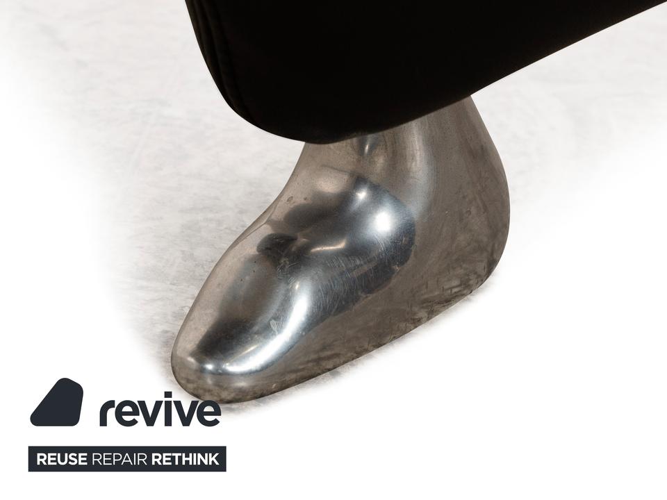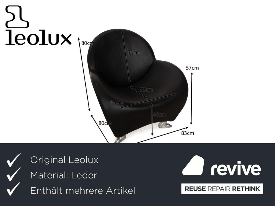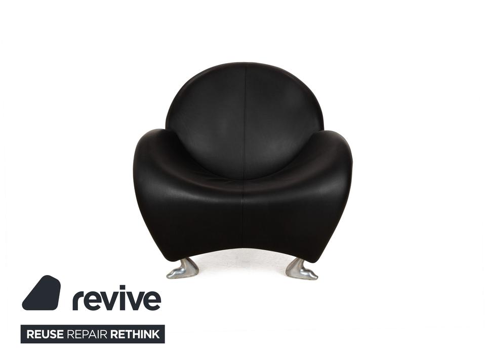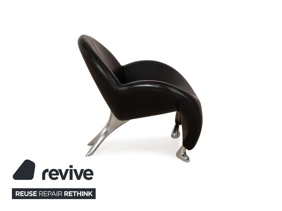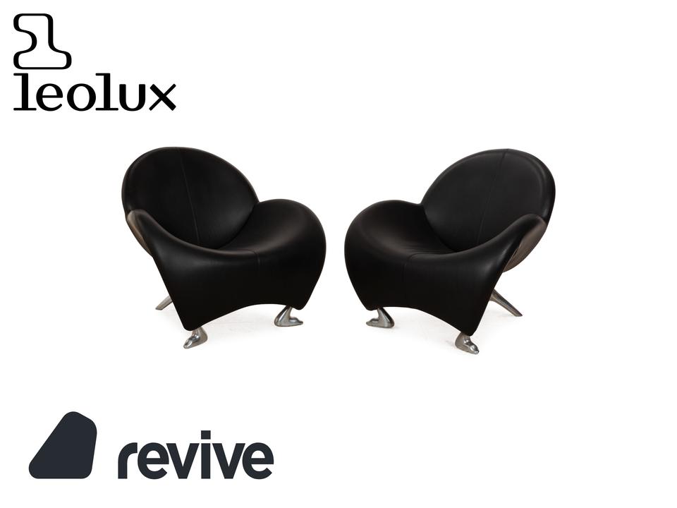 Die Sessel-Garnitur Papageno von Leolux, bestehend aus zwei baugleichen Exemplaren, ist eine verspielte Angelegenheit. Das außergewöhnliche Design lässt mit viel Fantasie etwas Körperhaftes, vielleicht sogar papageienartiges erahnen. Die Füße aus Metall und der mit schwarzem Leder bezogene Korpus gehen einen spannenden Kontrast ein, der zum Verweilen einlädt.