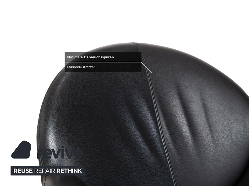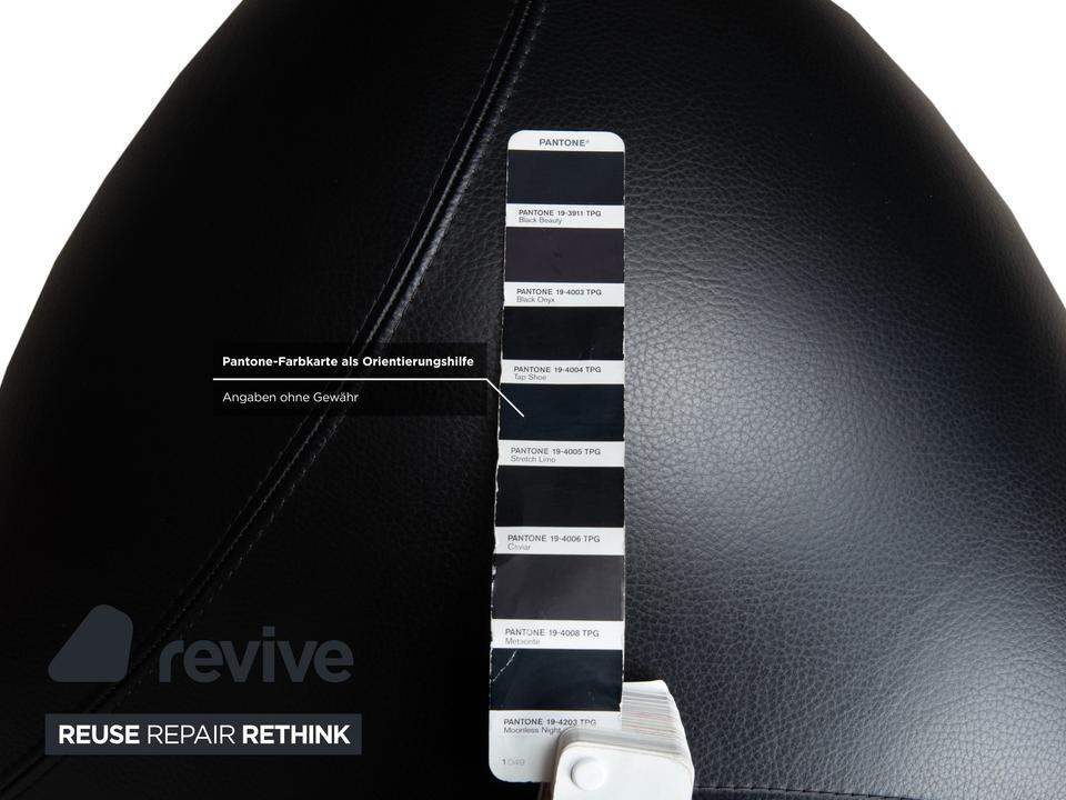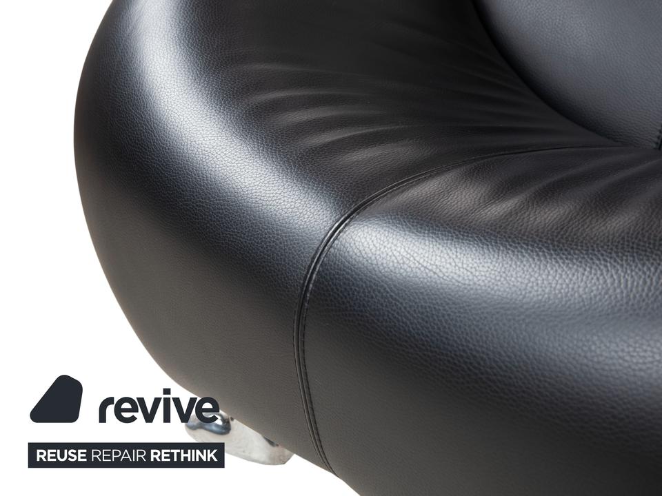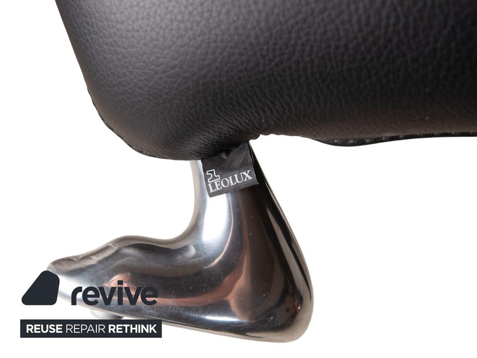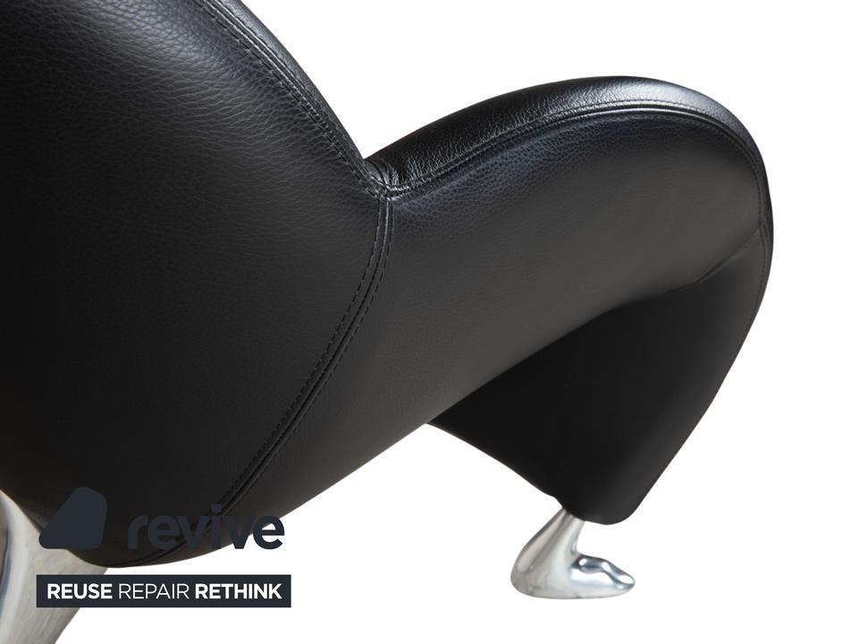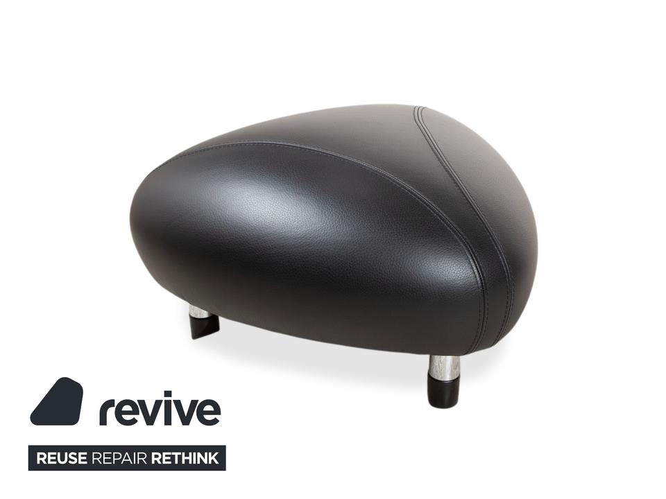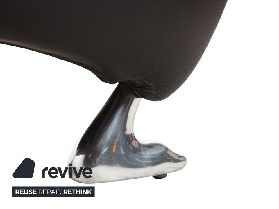 Leolux Papageno: Das unschlagbare Duo für Design-LiebhaberWenn der ikonische Sessel „Papageno“ auf seinen passenden Hocker trifft, entsteht mehr als nur ein Sitzplatz – es entsteht eine kleine Insel der extravaganten Gemütlichkeit. Dieses Set vereint Humor, Kunst und höchsten Komfort auf typische Leolux-Art.Beide Elemente sind in hochwertiges, schwarzes Leder gehüllt. Die glatte Oberfläche bringt die organischen Kurven beider Möbelstücke perfekt zur Geltung und verleiht dem verspielten Design eine elegante Seriosität. Das Design ist ein Dialog der Formen:Der Sessel: Er besticht durch seine bekannte, fast vogelartige Silhouette mit der gewölbten Rückenlehne und den integrierten Armlehnen, die den Sitzenden förmlich umarmen.Der Hocker: Er greift die organische Formensprache auf. Seine dreieckige, abgerundete Form („Kieselstein-Optik“) passt sich perfekt an die Rundungen des Sessels an und ist durch feine Ziernähte strukturiert.Ein glänzendes Highlight sind die Füße aus poliertem Aluminium. Während der Sessel auf seinen charakteristischen, tatzenartigen Vorderfüßen und stützenden Hinterbeinen ruht, steht der Hocker auf passenden, zylindrischen Metallfüßen – eine Kombination, die Solidität mit einer Prise Witz verbindet.