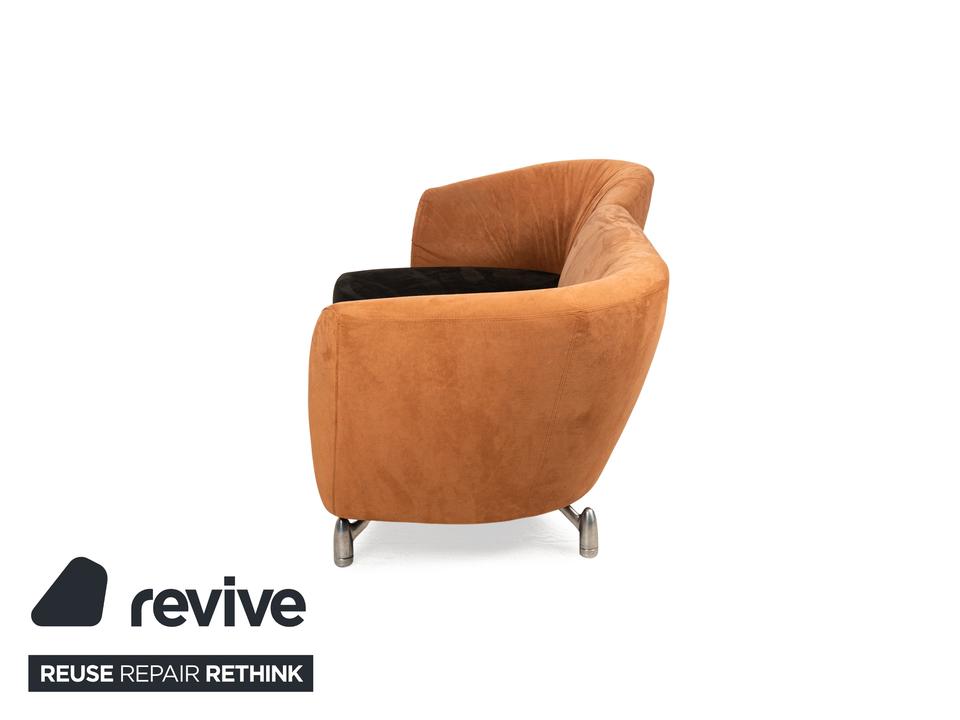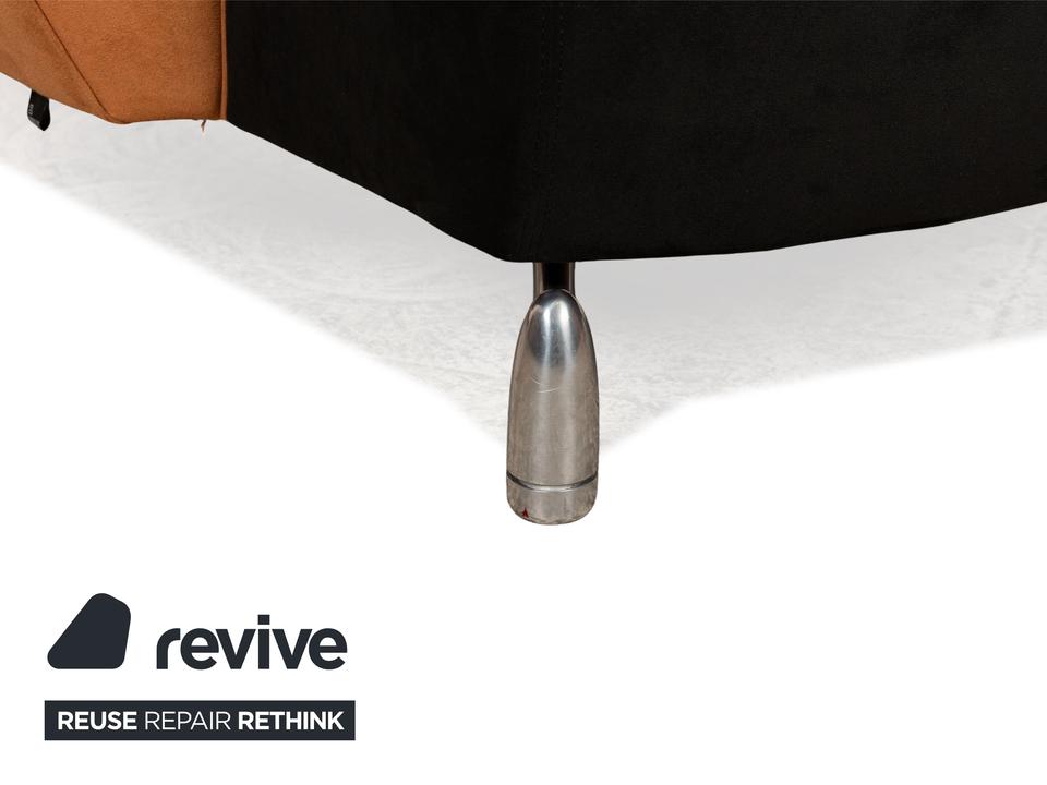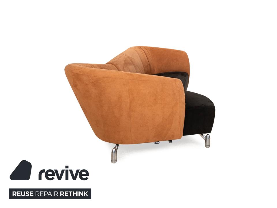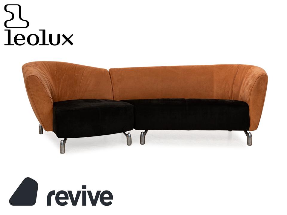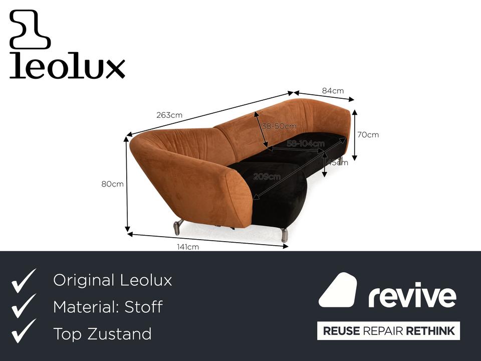 Das Ecksofa Pupilla von Leolux ist mit einem schwarzen und braunen Stoff bezogen und steht auf silbernen Metallfüßen. Es überzeugt durch das organische, extravagante Design und die minimalistische Optik.