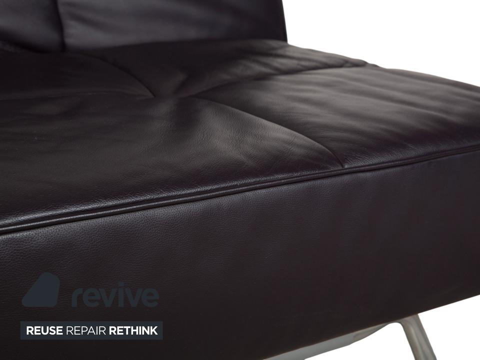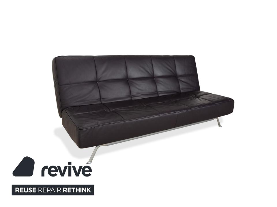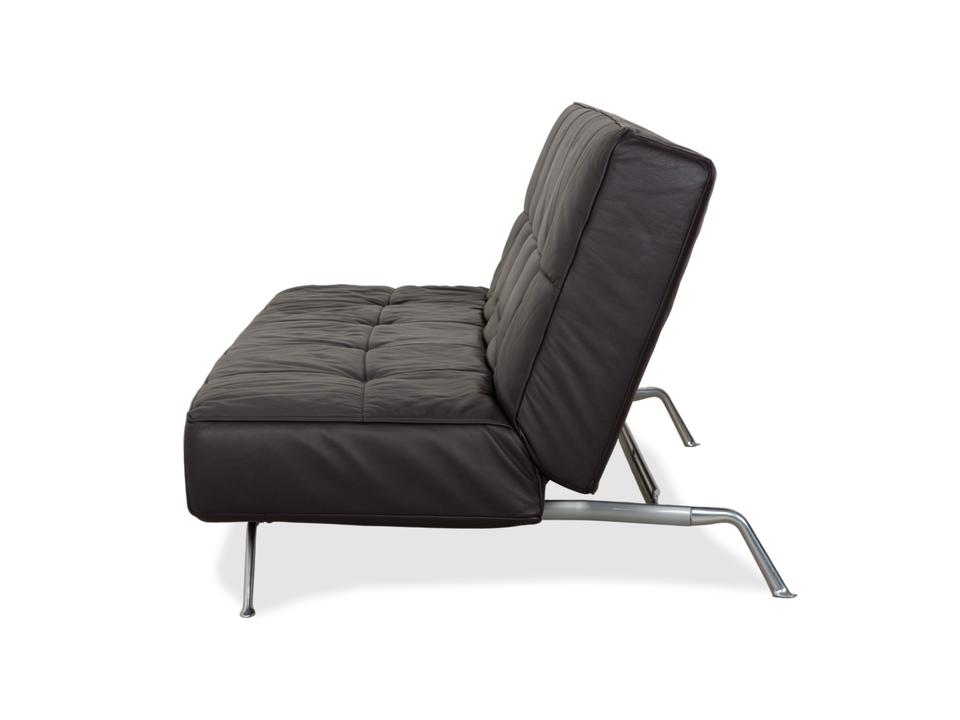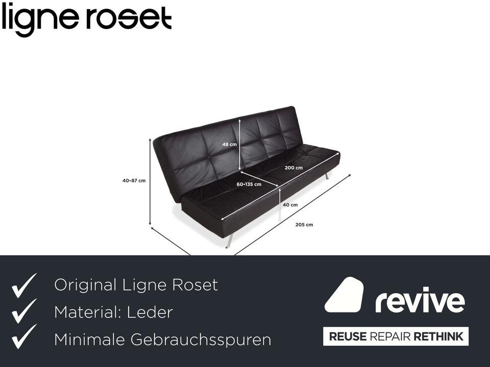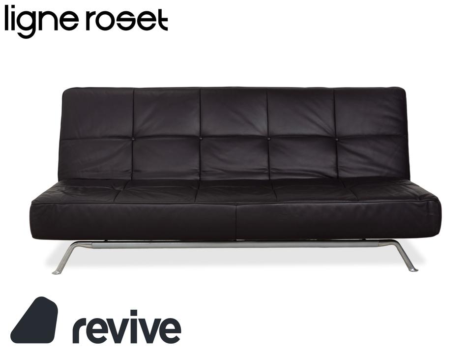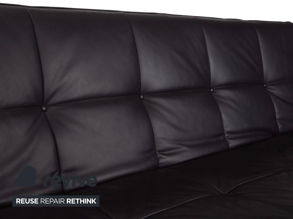 Mit dem Modell „Smala“, entworfen von Pascal Mourgue, holst du dir einen modernen Designklassiker von Ligne Roset in dein Wohnzimmer. Dieses Sofa besticht durch seine klare, fast puristische Linienführung und die genialen Proportionen.Der Lederbezug in einem tiefen, dunklen Braun mit leichtem Lila-Stich (Aubergine) wirkt unglaublich edel und verleiht dem Raum eine warme, luxuriöse Atmosphäre. Ein charakteristisches Merkmal ist die dezente Knopfheftung auf der Sitz- und Rückenfläche, die dem Leder Struktur gibt, ohne verspielt zu wirken.Das absolute Highlight ist die Vielseitigkeit: Dank der manuellen Funktion lassen sich die Rückenlehnen und Armlehnen unabhängig voneinander in verschiedene Positionen bringen. Du kannst die Armlehnen flach stellen, um die Sitzfläche zu verbreitern, oder alles komplett zur Ebene klappen, um das Sofa in ein bequemes Gästebett zu verwandeln. Getragen wird die Konstruktion von einem markanten Gestell aus poliertem Aluminium, das dem Sofa eine technische Eleganz und optische Leichtigkeit verleiht, da es förmlich über dem Boden schwebt.