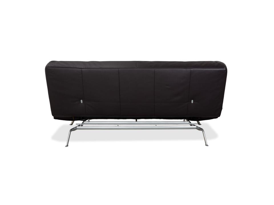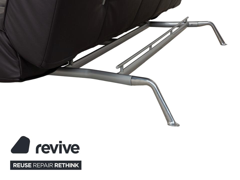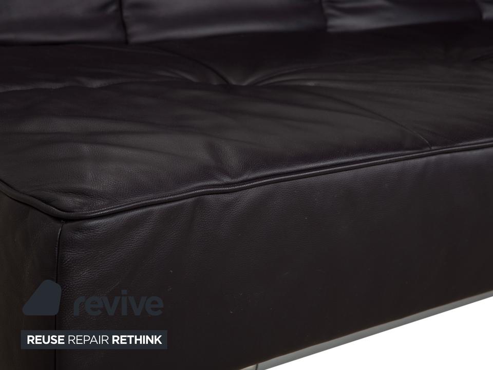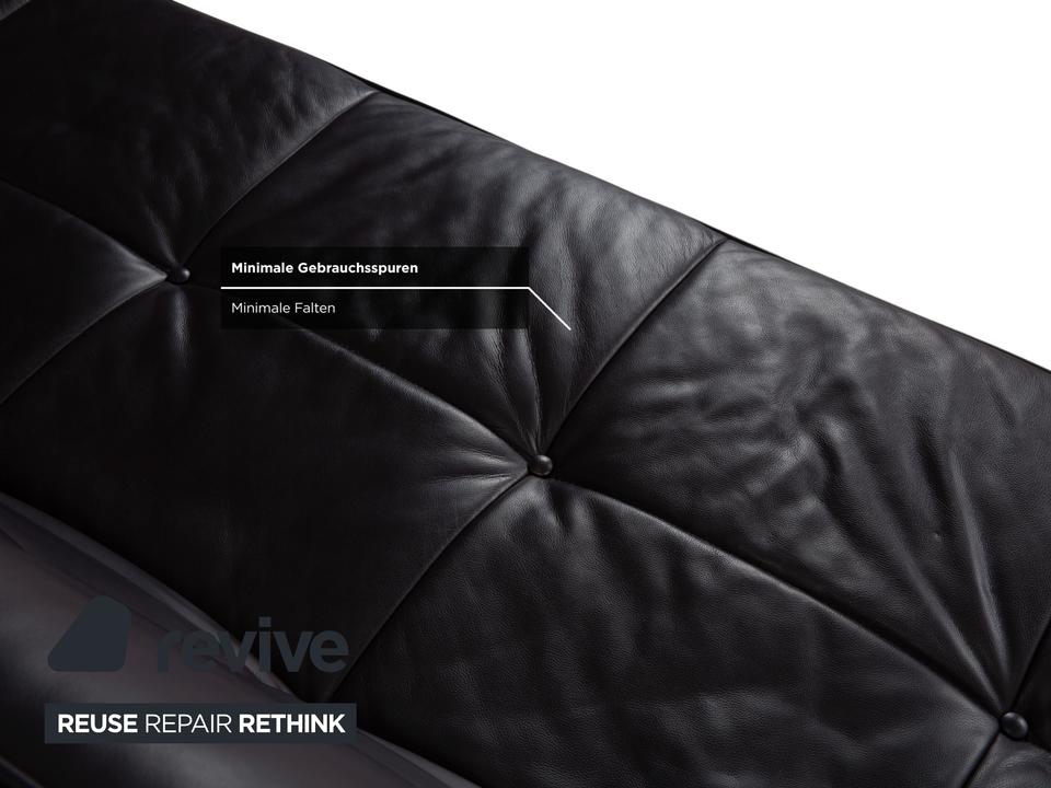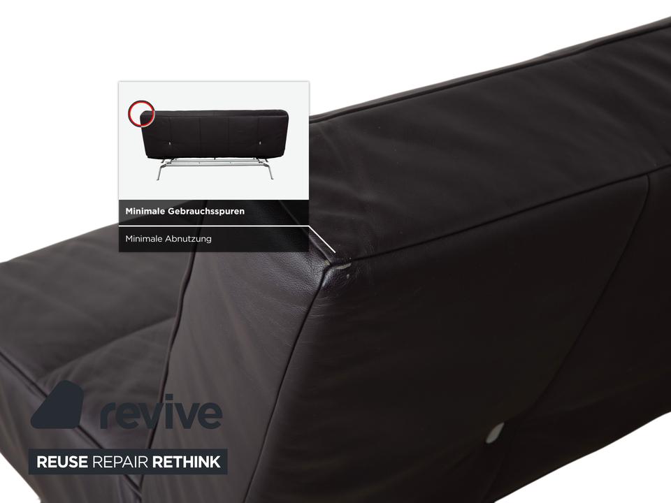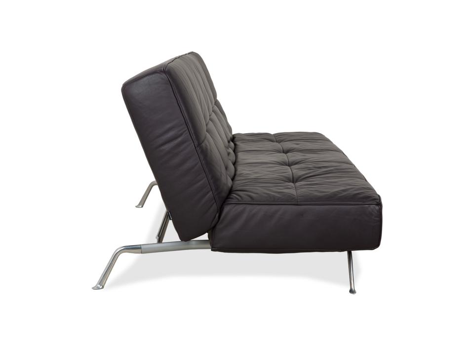 Mit dem Modell „Smala“, entworfen von Pascal Mourgue, holst du dir einen modernen Designklassiker von Ligne Roset in dein Wohnzimmer. Dieses Sofa besticht durch seine klare, fast puristische Linienführung und die genialen Proportionen.Der Lederbezug in einem tiefen, dunklen Braun mit leichtem Lila-Stich (Aubergine) wirkt unglaublich edel und verleiht dem Raum eine warme, luxuriöse Atmosphäre. Ein charakteristisches Merkmal ist die dezente Knopfheftung auf der Sitz- und Rückenfläche, die dem Leder Struktur gibt, ohne verspielt zu wirken.Das absolute Highlight ist die Vielseitigkeit: Dank der manuellen Funktion lassen sich die Rückenlehnen und Armlehnen unabhängig voneinander in verschiedene Positionen bringen. Du kannst die Armlehnen flach stellen, um die Sitzfläche zu verbreitern, oder alles komplett zur Ebene klappen, um das Sofa in ein bequemes Gästebett zu verwandeln. Getragen wird die Konstruktion von einem markanten Gestell aus poliertem Aluminium, das dem Sofa eine technische Eleganz und optische Leichtigkeit verleiht, da es förmlich über dem Boden schwebt.