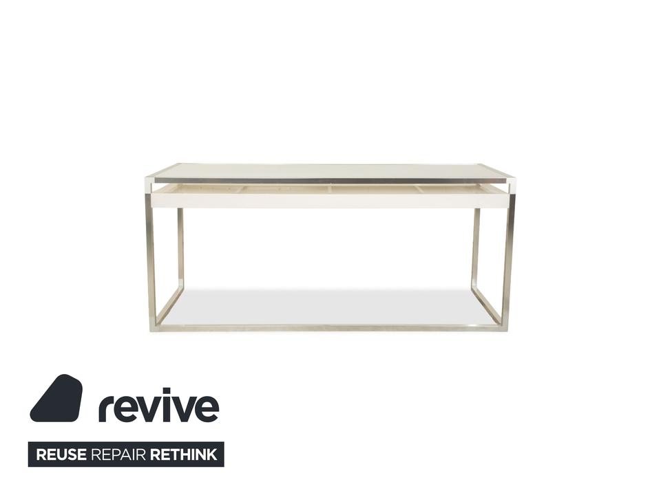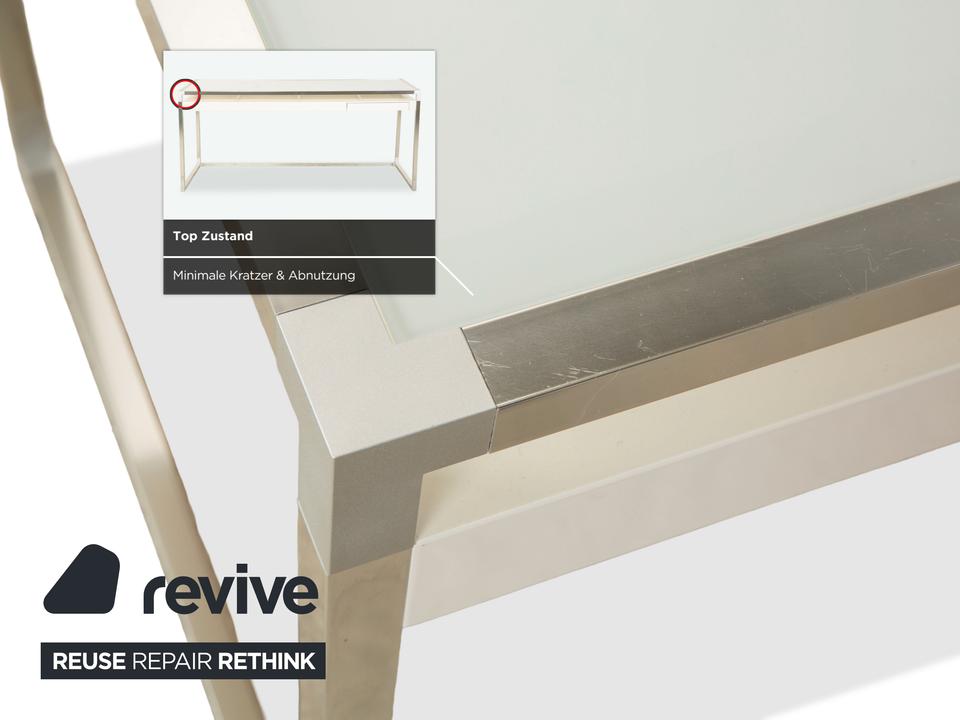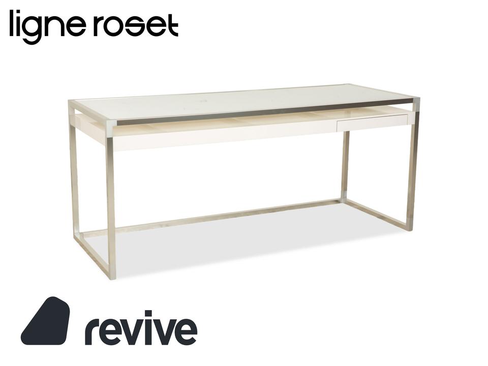 Der ligne roset Contour Glas Schreibtisch in Weiß verbindet modernes Design mit einer leichten, transparenten Ausstrahlung und ist ideal für Homeoffice und Büro. Die klar gestaltete Glasplatte sorgt für ein offenes, helles Arbeitsumfeld und verleiht dem Raum eine elegante, zeitgemäße Wirkung. Das weiße Gestell ergänzt die Glasfläche harmonisch und schafft ein ruhiges, stilvolles Gesamtbild.Eine integrierte Schublade bietet praktischen Stauraum für Schreibutensilien, Dokumente oder kleine Arbeitsmaterialien und unterstützt einen aufgeräumten Arbeitsplatz. Die hochwertige Verarbeitung und die stabile Konstruktion garantieren eine zuverlässige Nutzung im täglichen Arbeitsablauf.Durch seine klare Form, die luftige Optik und die funktionale Ausstattung eignet sich der ligne roset Contour Glas Schreibtisch perfekt für moderne Arbeitsbereiche und verleiht jedem Raum eine elegante und strukturierte Atmosphäre.