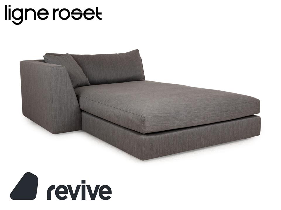 Die EXCLUSIF Liege von ligne roset ist mit einem grauen Stoff bezogen und ist bodentief. Das minimalistische Design zeichnet das Daybed aus.