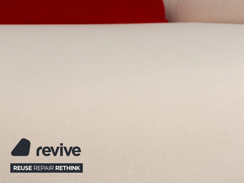Das Sofa Multy von Ligne Roset ist mit einem creme-beigefarbenen Stoff (Malou 107 von Höpke) neu bezogen worden und steht auf einem schwarzen Metallgestell. Das minimalistische Design und die komfortable Schlaffunktion zeichnen den Dreisitzer aus, der sich mit nur wenigen Handgriffen in ein Schlafsofa verwandeln lässt. Diese Ausführung verfügt über praktische und seitlich verstellbare Armlehnen. Die mit einem andersfarbigen Stoff (1x Malou 136 + 1 x Malou 126) bezogenen Kissen sorgen für einen gelungenen Kontrast. Informationen zum verwendeten Mikrofaserstoff: – Scheuertouren: 100.000- deutsches Qualitätsprodukt