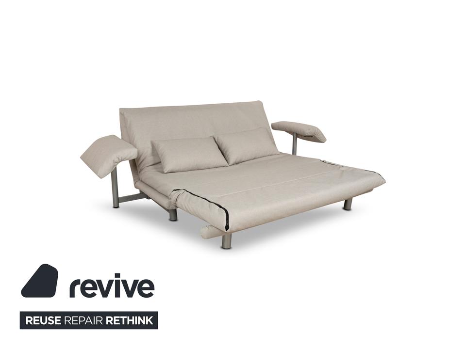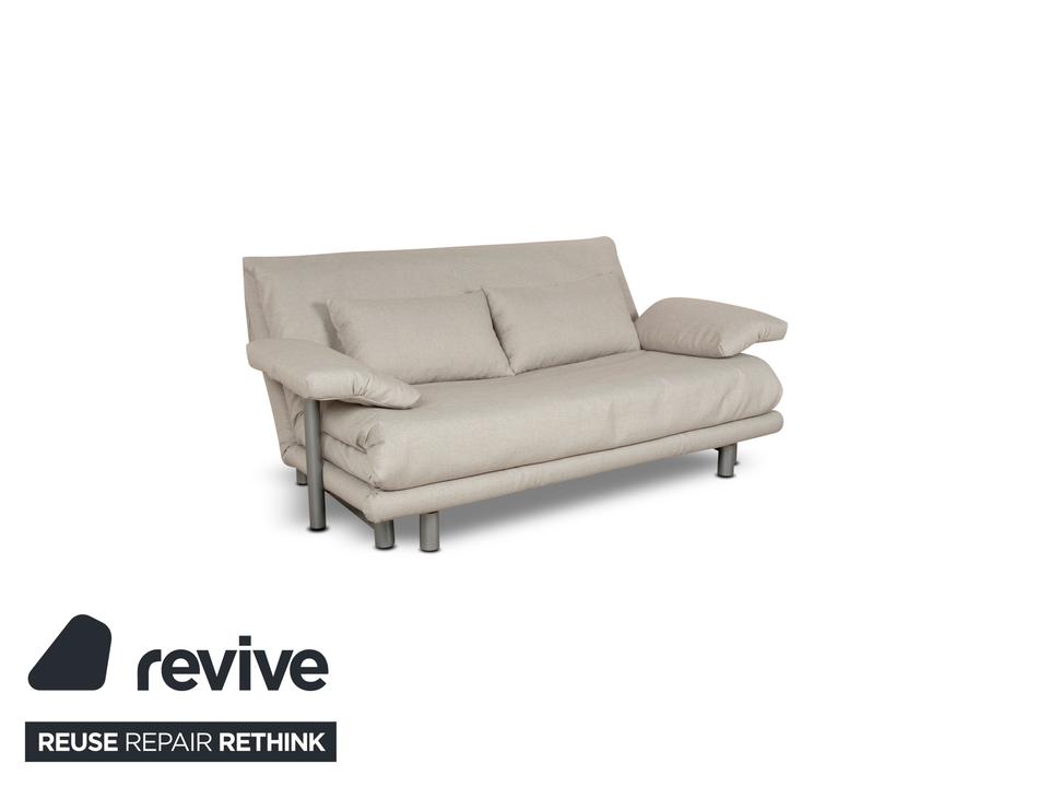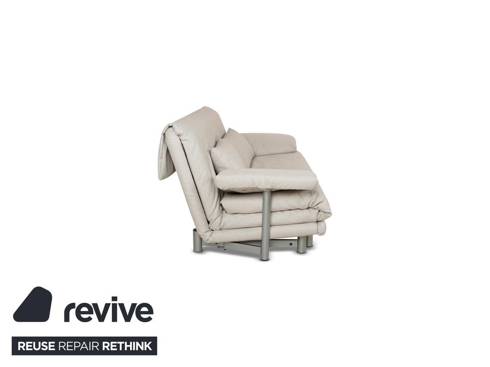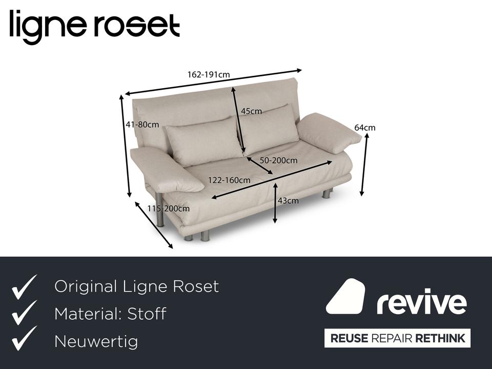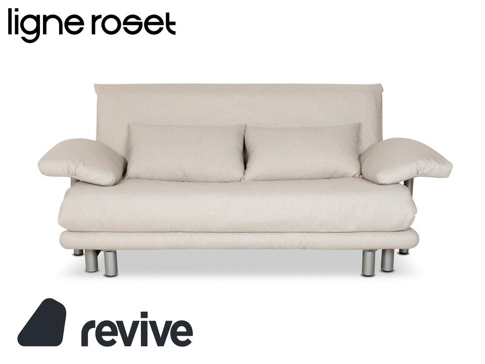Das Multy Sofa von ligne roset ist mit einem grauen Stoff neu bezogen worden und steht auf runden Füßen. Das minimalistische Design und die praktische Schlaffunktion zeichnen den Dreisitzer aus.