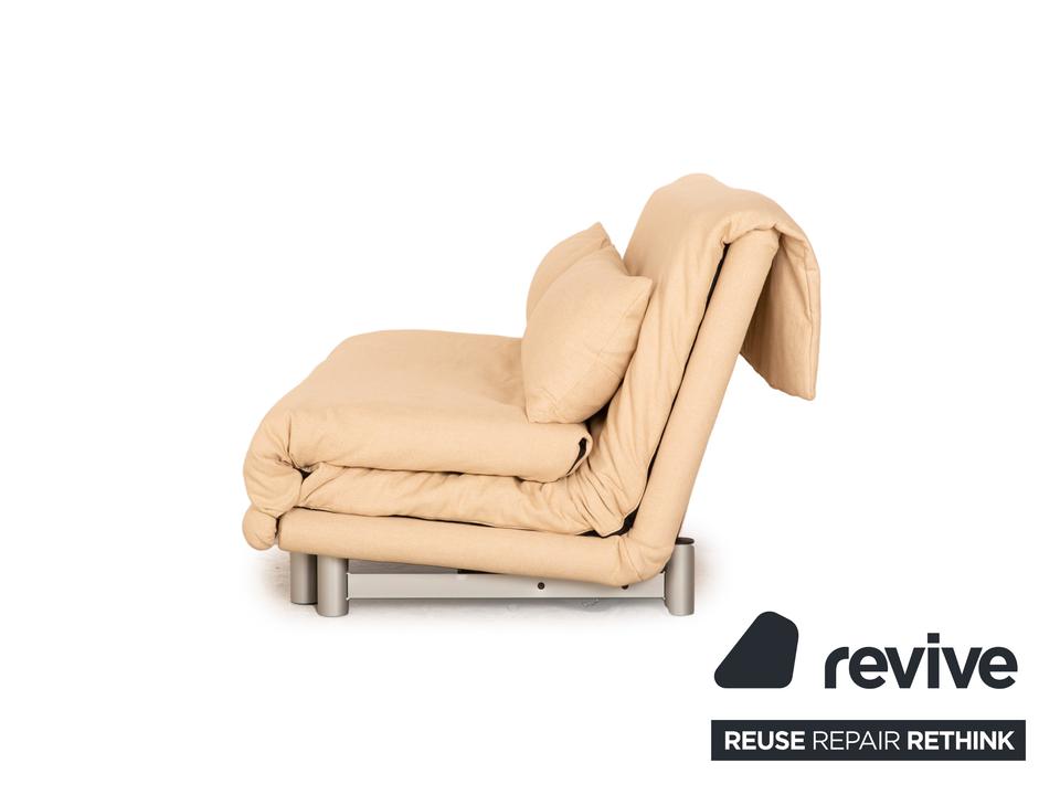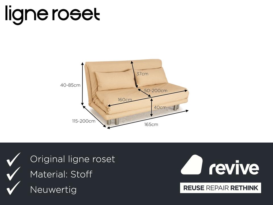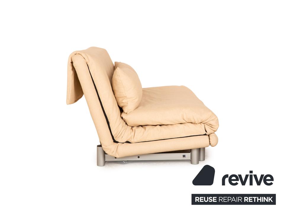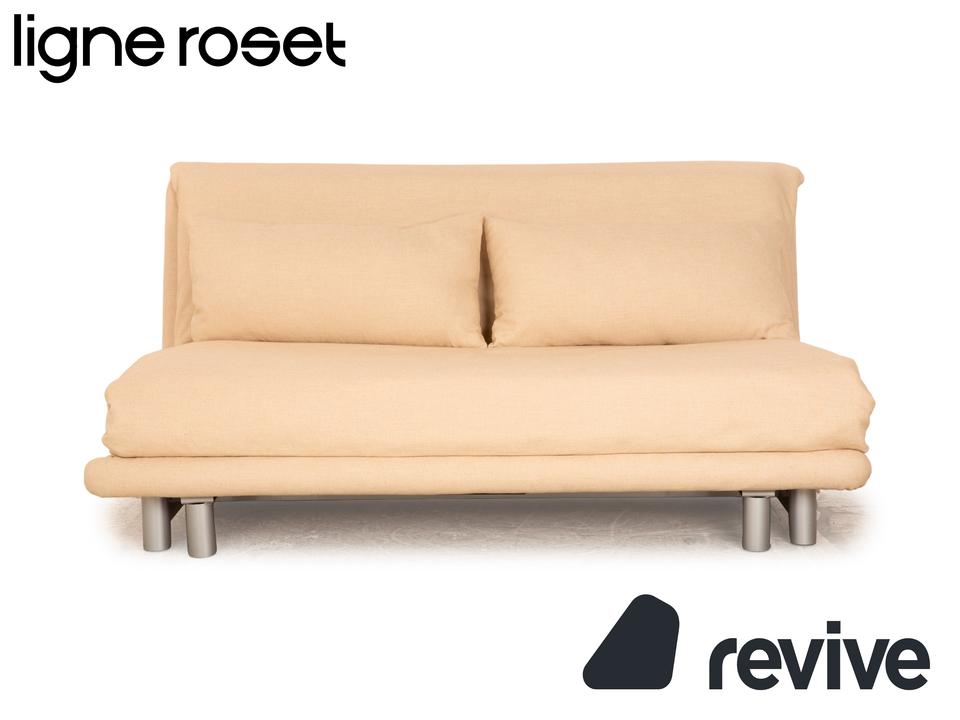 Das Multy Sofa von ligne roset ist mit einem cremefarbenen Qualitätsstoff von Höpke (Linen 504) neu bezogen und steht auf runden Metallfüßen. Das minimalistische Design und die praktische Schlaffunktion zeichnen den Dreisitzer aus.