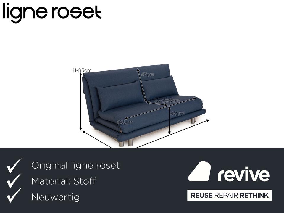 Das Multy Sofa von ligne roset ist mit einem blauen Stoff neu bezogen und steht auf runden Metallfüßen. Das minimalistische Design und die praktische Schlaffunktion zeichnen den Dreisitzer aus.Neubezug mit VERANO 674 Fleckschutzausrüstung „Clean active“Material: 100% Polyester Breite: ca. 140cm Gewicht: 539 g/lfm Kettrapport: ———- Schußrapport: —— Scheuertouren: 73.000