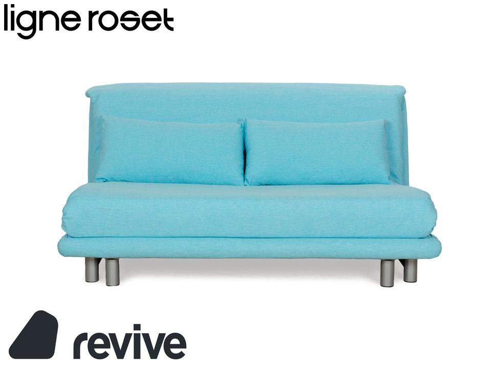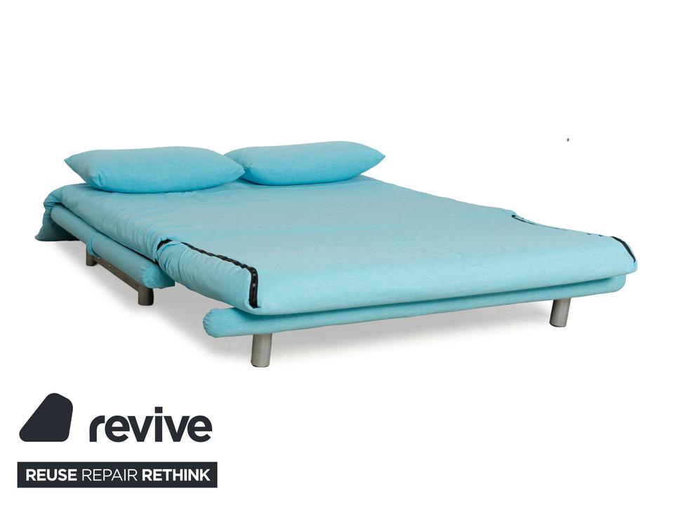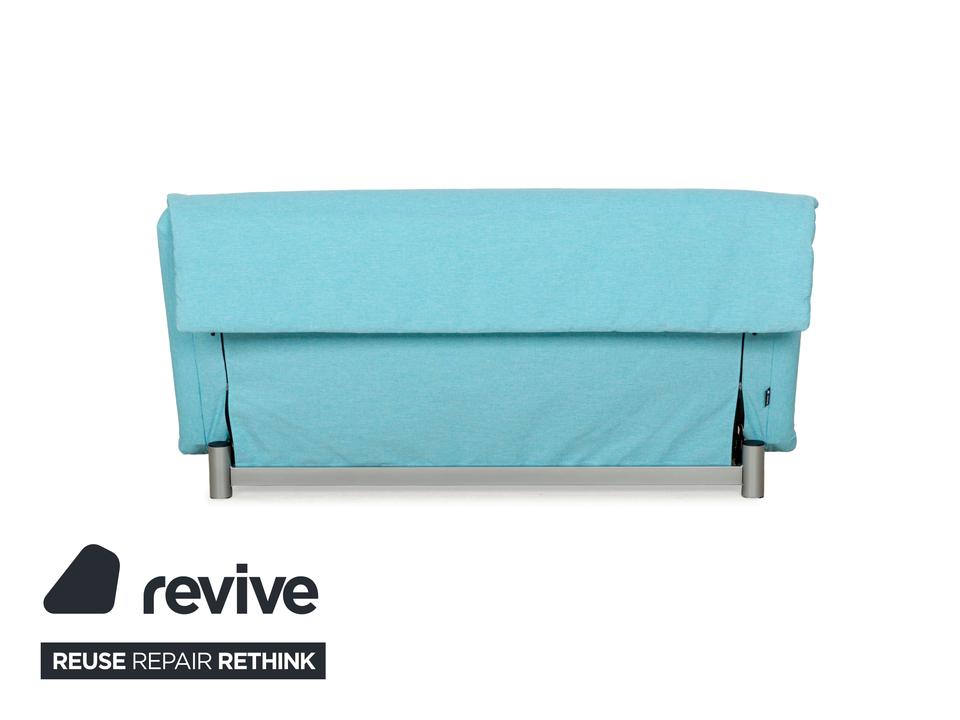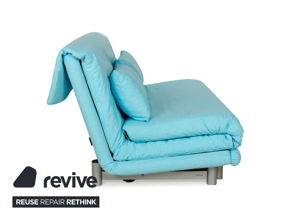 Das Sofa Multy von Ligne Roset ist mit einem hellblauen Stoff (Malta 762 von Höpke) neu bezogen worden und steht auf einem silbernen Metallgestell. Das minimalistische Design und die komfortable Schlaffunktion zeichnen den Dreisitzer aus, der sich mit nur wenigen Handgriffen in ein Schlafsofa verwandeln lässt. Diese Ausführung verfügt über praktische und seitlich verstellbare Armlehnen. Informationen zum verwendeten Mikrofaserstoff:Gewicht: 312 g/lfmScheuertouren: 16.000Lichtechtheit: 7