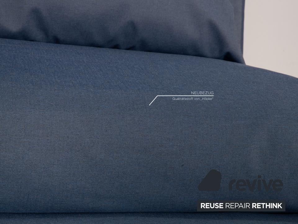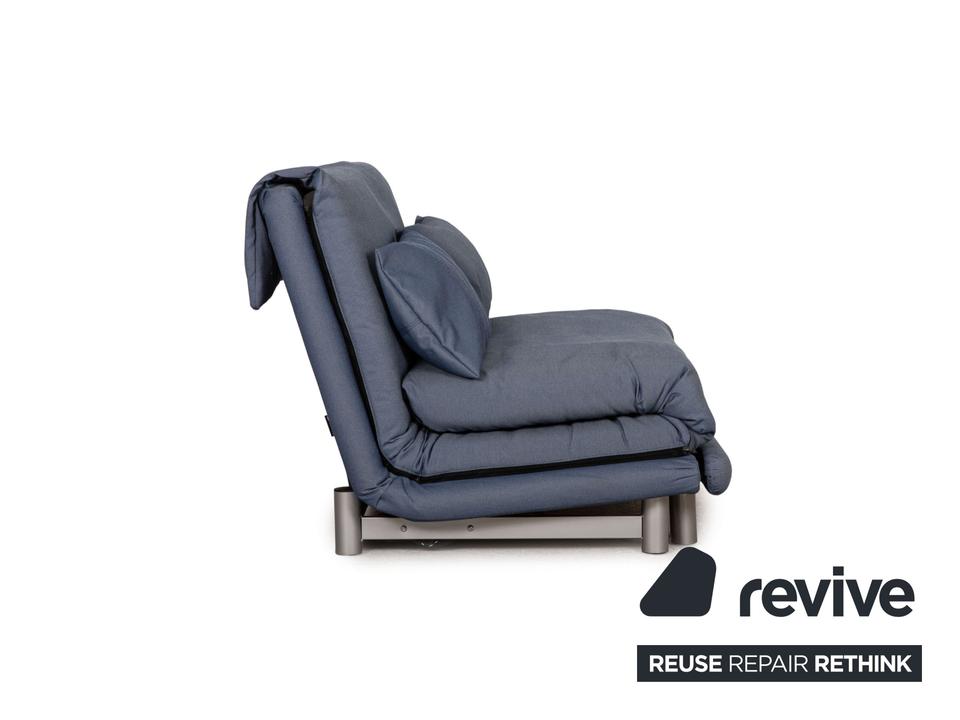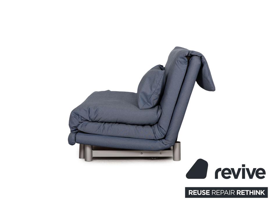 Das Multy Sofa von ligne roset ist mit einem blauen Stoff neu bezogen und steht auf runden Metallfüßen. Das minimalistische Design und die komfortable Schlaffunktion zeichnen den Dreisitzer aus.Neubezug mit MALTA 765 Fleckschutzausrüstung „Clean active“ Material: 100% Polypropylen Breite: 140 cm Gewicht: 312 g/lfm Kettrapport: — Schußrapport: — Scheuertouren: 20.000