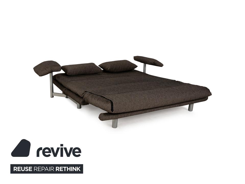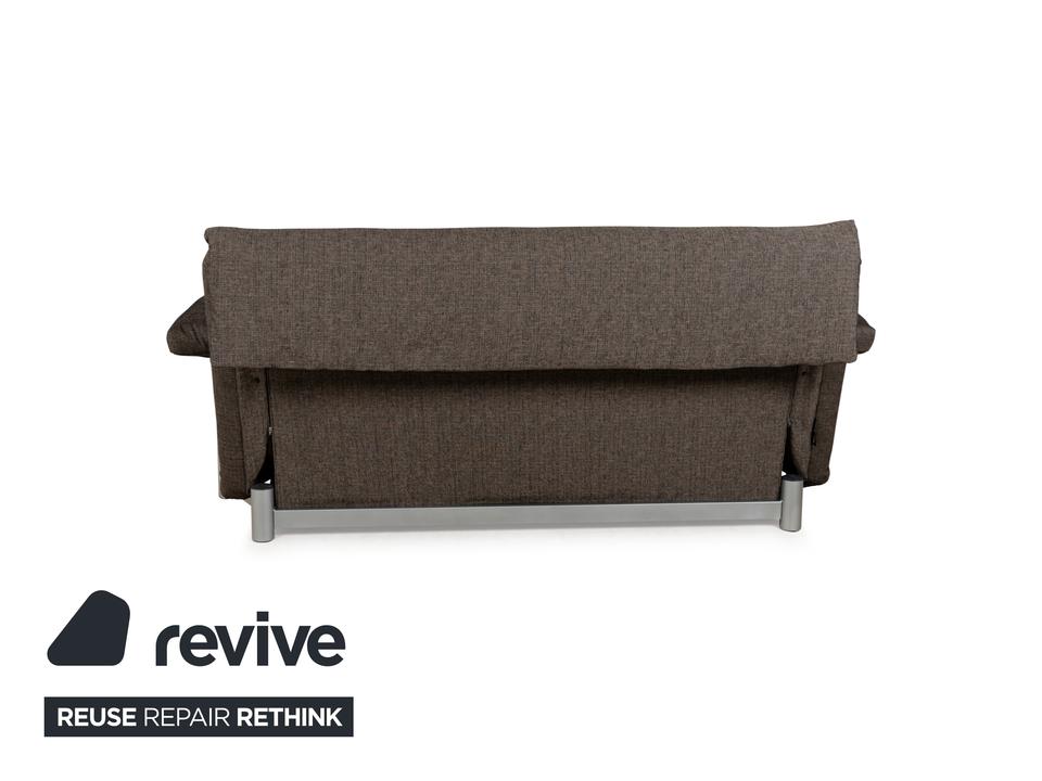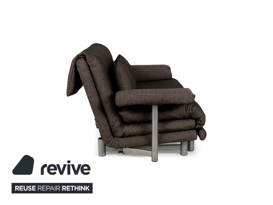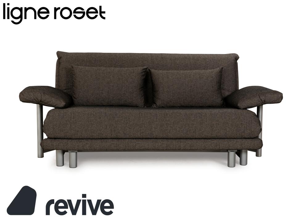 Das Multy Sofa von ligne roset ist mit einem braun-grauen Stoff neu bezogen worden und steht auf runden Metallfüßen. Das minimalistische Design und die praktische Schlaffunktion zeichnen den Dreisitzer aus.