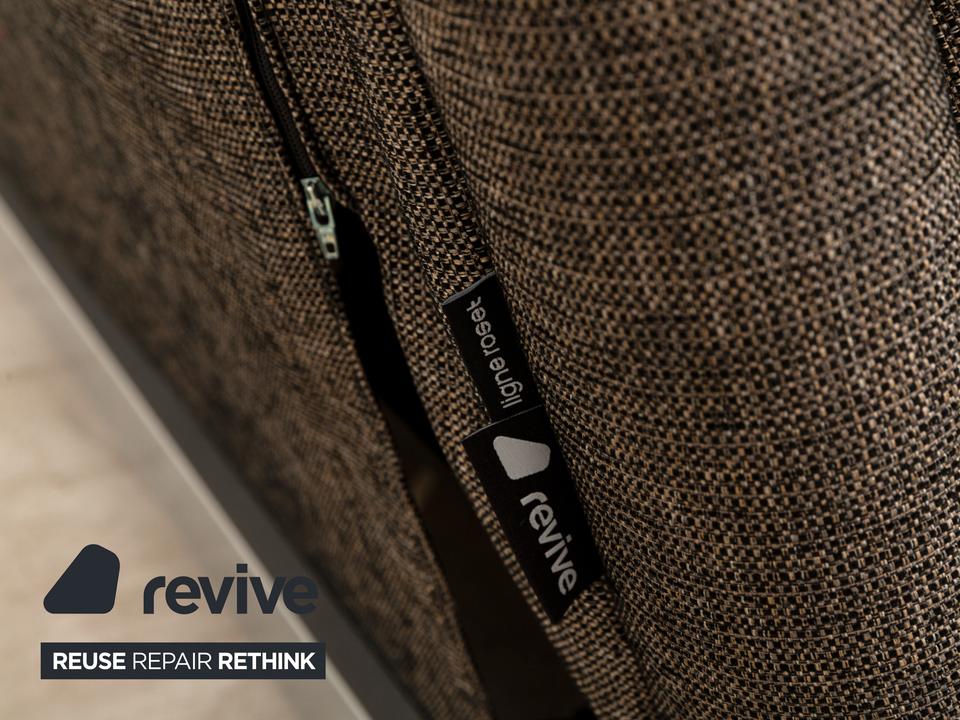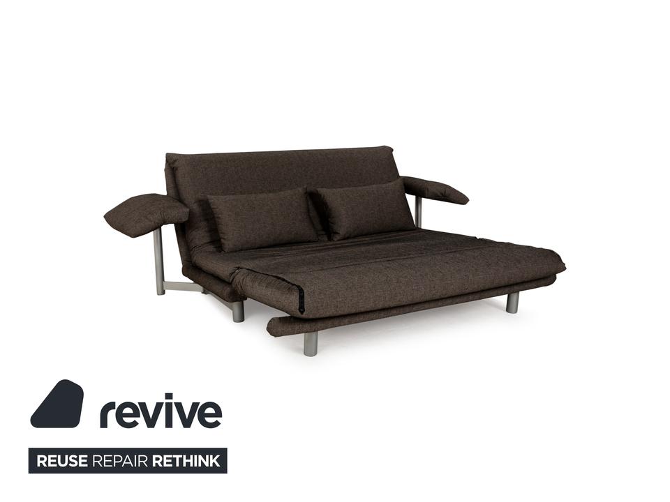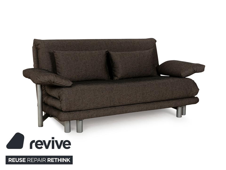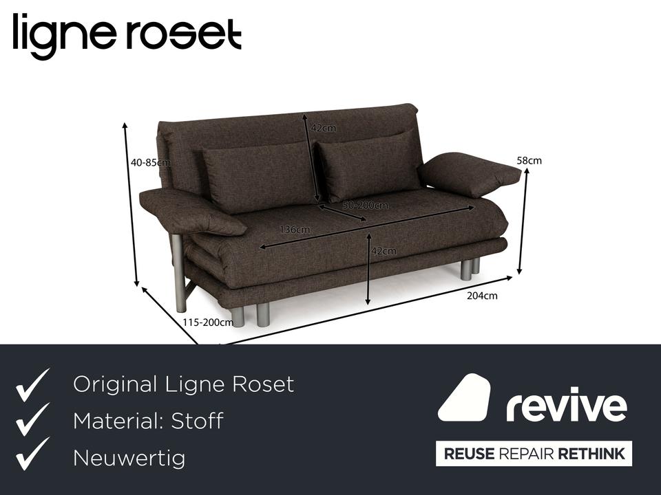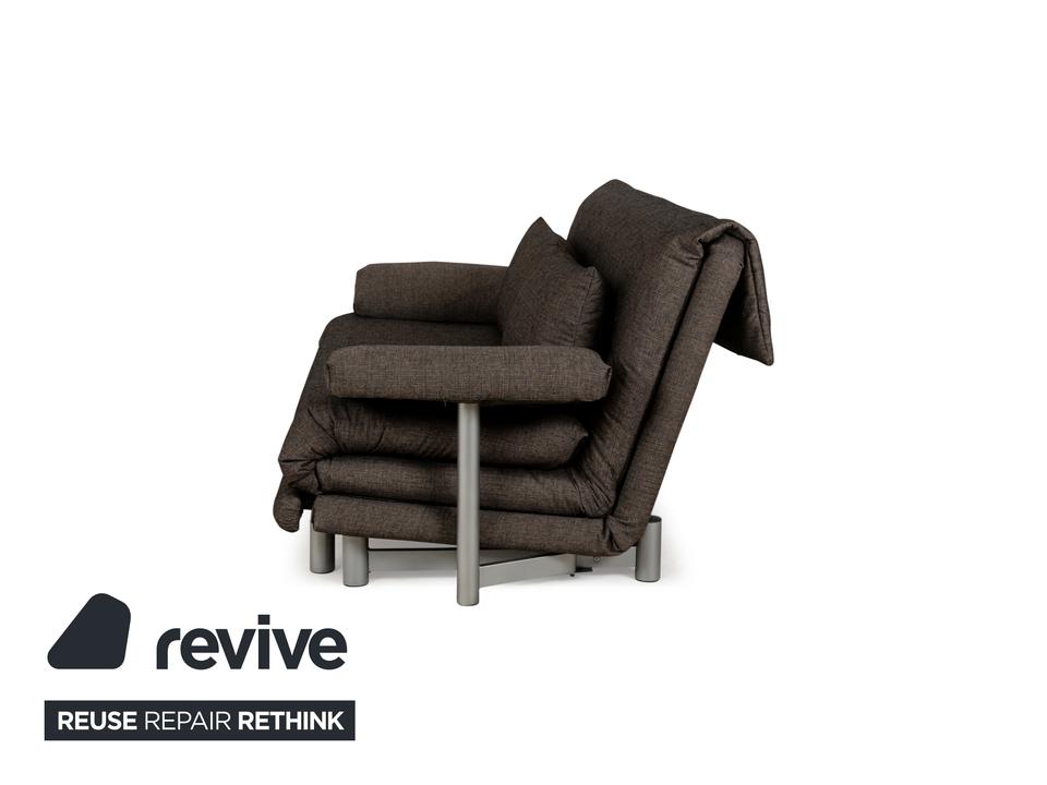 Das Multy Sofa von ligne roset ist mit einem braun-grauen Stoff neu bezogen worden und steht auf runden Metallfüßen. Das minimalistische Design und die praktische Schlaffunktion zeichnen den Dreisitzer aus.