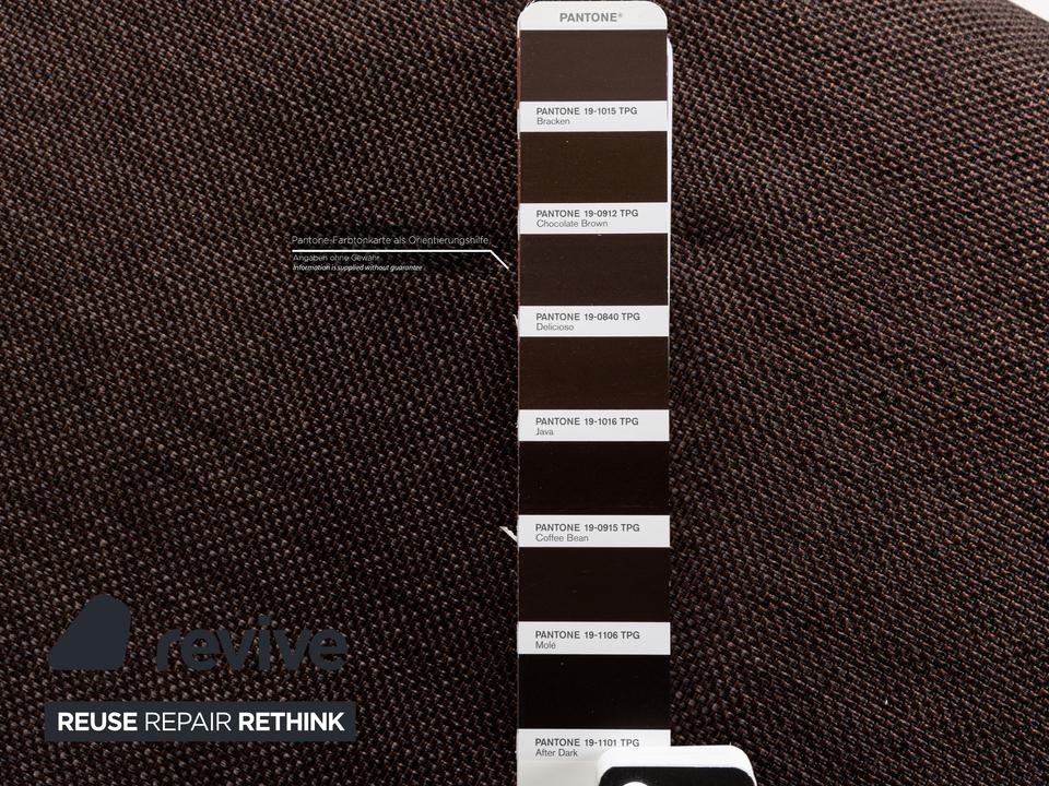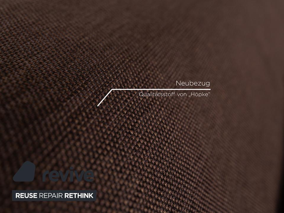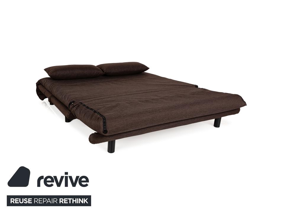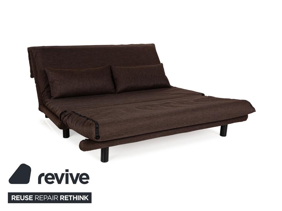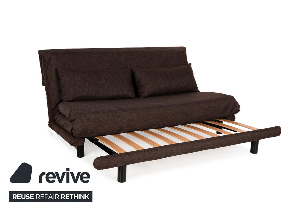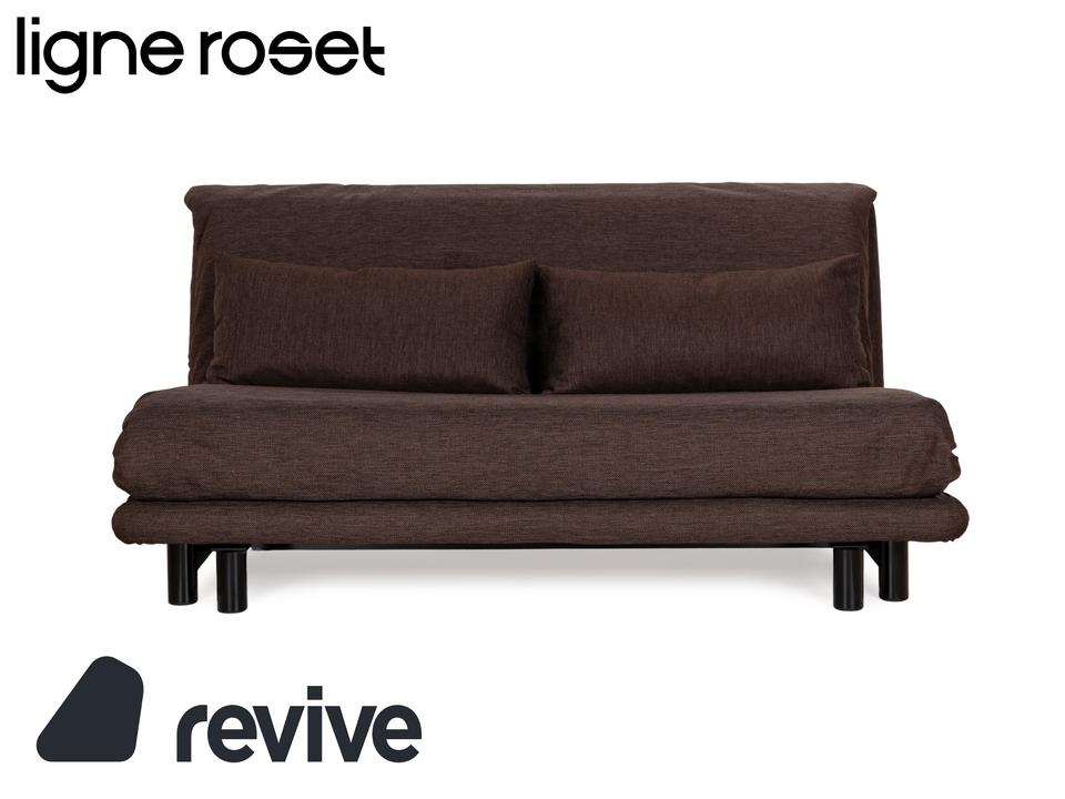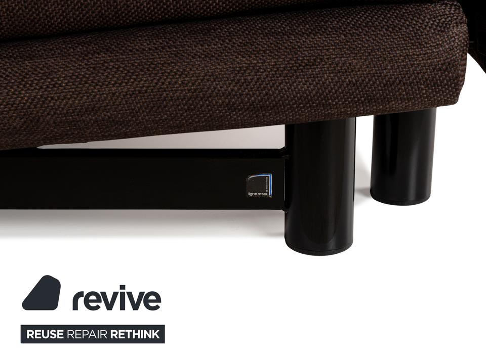 Der Dreisitzer Multy von ligne roset ist mit einem braunen Qualitätsstoff von Höpke (VERANO 631) neu bezogen worden und steht auf schwarzen Metallfüßen. Er zeichnet sich durch das schlichte, zeitlose Design und die komfortable Schlaffunktion aus.