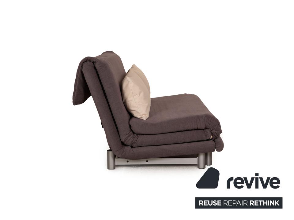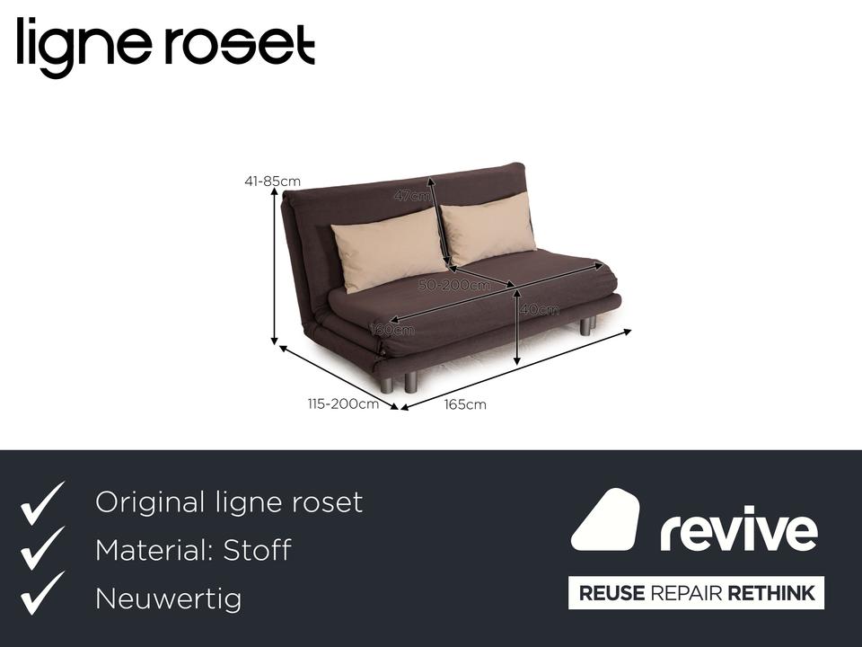 Das Multy Sofa von ligne roset ist mit einem grauen Stoff ( MALOU 179 Material: 100% Polyester, Kissen: MALTA 763 Material: 100% Polypropylen) neu bezogen und steht auf runden Metallfüßen. Das minimalistische Design und die komfortable Schlaffunktion zeichnen den Dreisitzer aus.