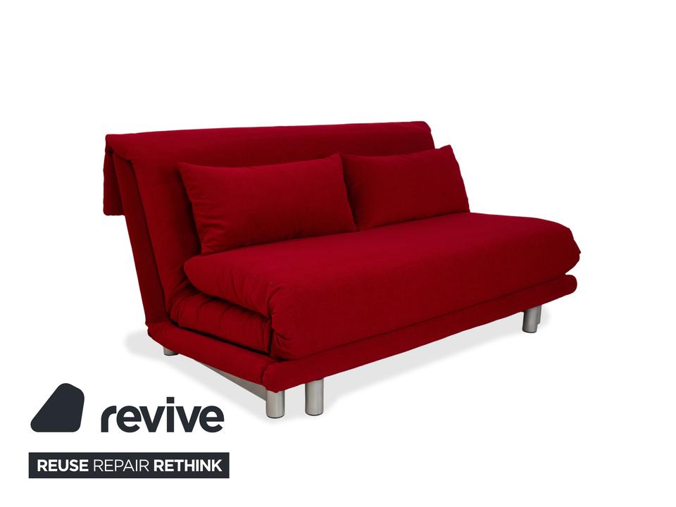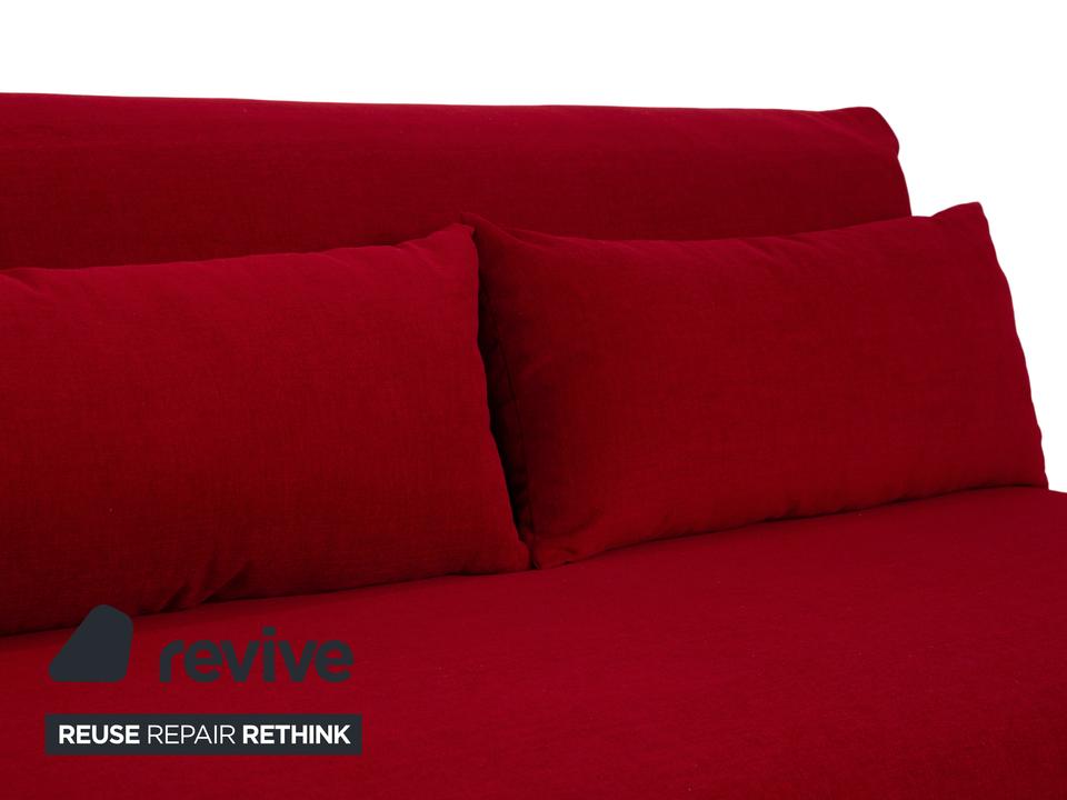 Wenn es um Schlafsofas geht, die diesen Namen auch wirklich verdienen, führt am „Multy“ von Ligne Roset eigentlich kein Weg vorbei. Hier bekommst du den Designklassiker in einer besonders ausdrucksstarken Variante: Der tiefe, rote Stoffbezug (MALOU 9524) macht das Sofa sofort zum Mittelpunkt des Raumes und bringt ordentlich Wärme und Energie in dein Zuhause.Das Geniale an diesem Modell ist, dass es hier ohne Armlehnen auskommt – das spart in der Breite wertvollen Stellplatz und lässt das Möbelstück viel leichter und moderner wirken. Technisch ist es über jeden Zweifel erhaben: Du ziehst es einfach mit einem Handgriff nach vorne aus und hast dank des integrierten Lattenrosts und der durchgehenden Matratze ein vollwertiges Bett. Das ist kein wackeliges Notlager, sondern eine Schlafstätte, auf der deine Gäste (oder du selbst) hervorragend liegen. Ein funktionales Design-Icon, das Farbe bekennt.