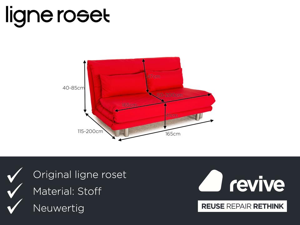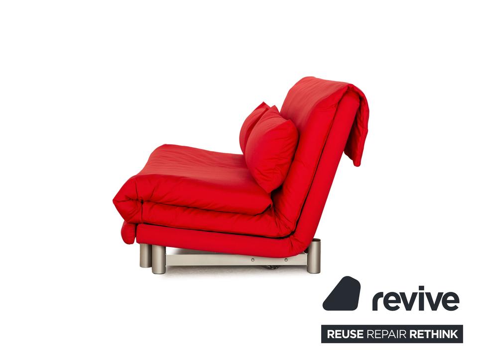 Der Dreisitzer Multy von ligne roset ist mit einem roten Qualitätsstoff von Höpke ( MOLTO 502 Teflon-Fleckschutz;Material: 100% Polyacryl) neu bezogen worden und steht auf silbernen Metallfüßen. Er zeichnet sich durch die komfortable Schlaffunktion und das schlichte, zeitlose Design aus.