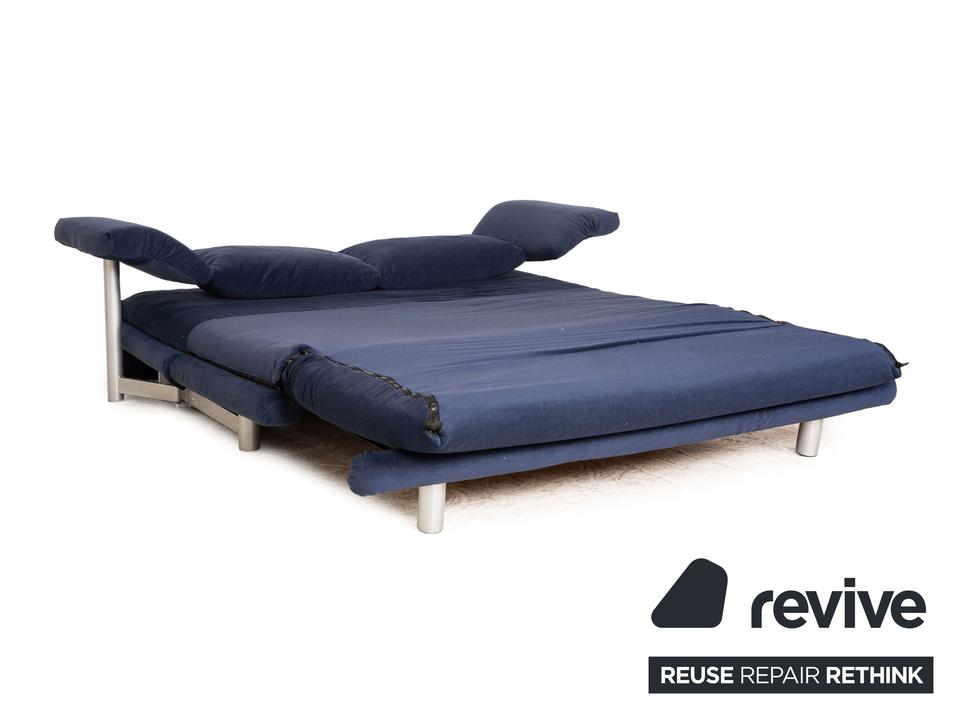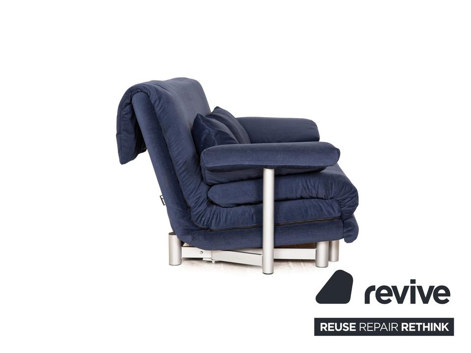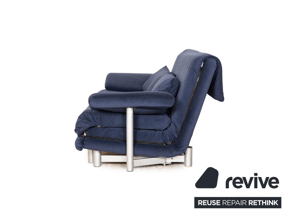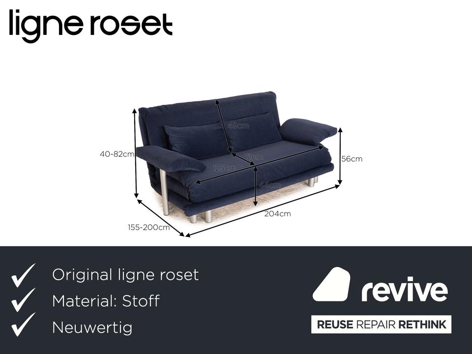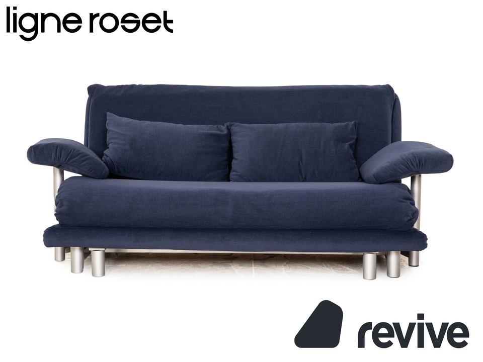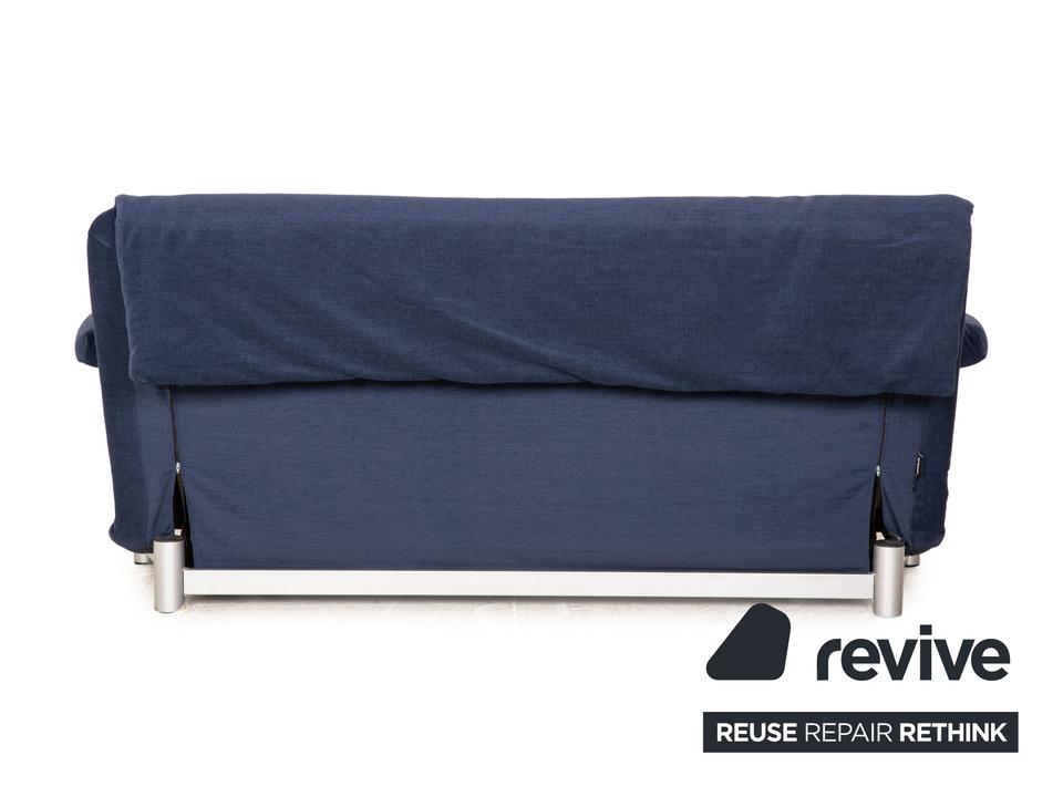 Das Multy Sofa von ligne roset ist mit einem blauen Stoff ( MALOU 104 Fleckschutzausrüstung „Clean active“ Material: 100% Polyester) neu bezogen und steht auf runden Metallfüßen. Das minimalistische Design und die praktische Schlaffunktion zeichnen den Dreisitzer aus.