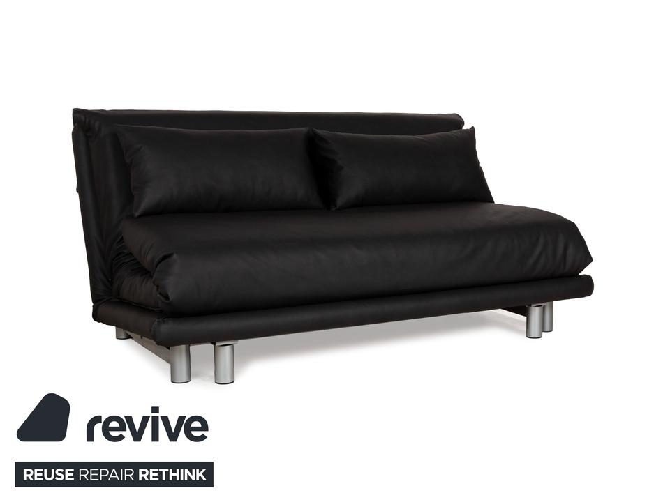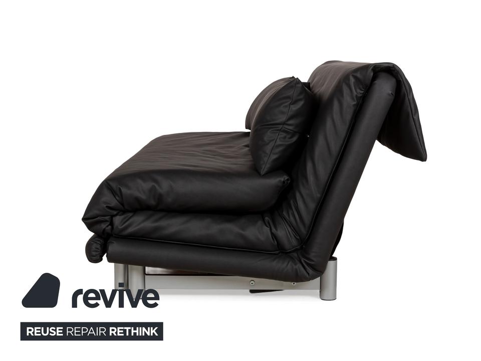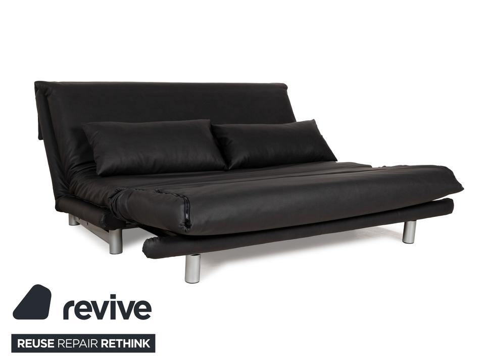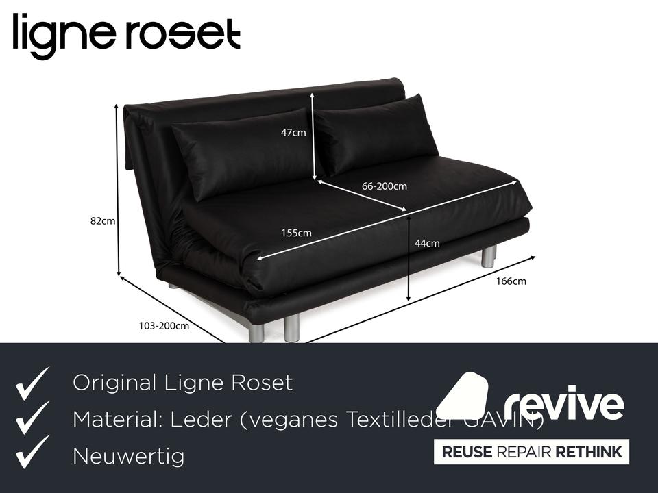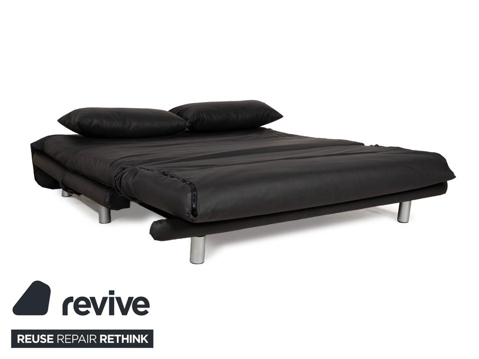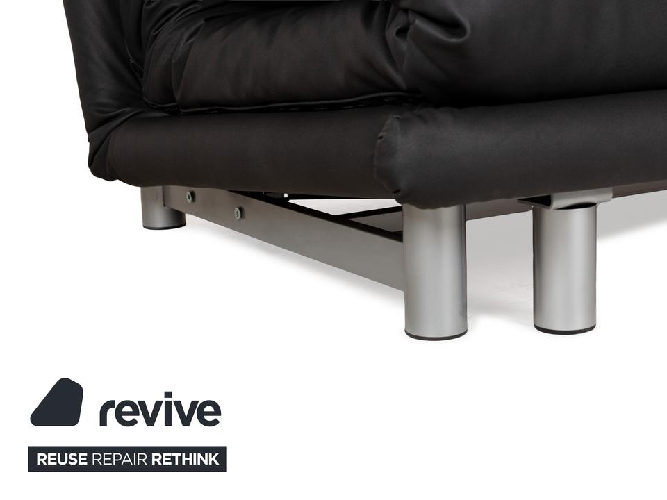 Das Multy Sofa von Ligne Roset ist mit einem anthrazitfarbenen veganen Textilleder (Gavin 117) neu bezogen worden und steht auf einem silbernen Metallgestell. Das minimalistische Design und die komfortable Schlaffunktion zeichnen den Dreisitzer aus, der sich mit nur wenigen Handgriffen in ein Schlafsofa verwandeln lässt.