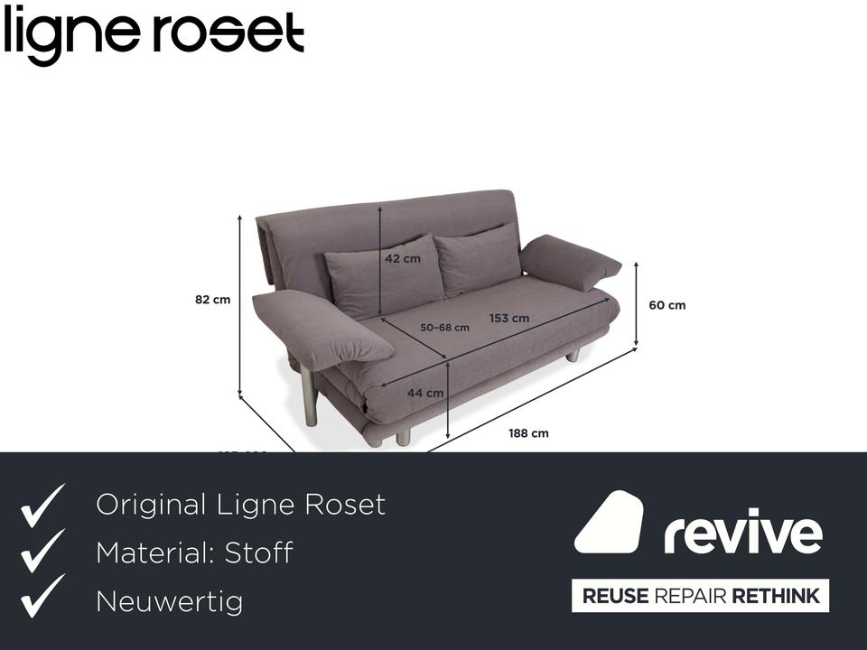 Hier bekommst du den absoluten Schlafsofa-Klassiker von Ligne Roset in einer besonders hochwertigen Ausführung. Das „Multy“ ist ja bekannt für seine geniale Funktion, aber dieses Modell punktet gleich doppelt: Zum einen wurde es komplett mit dem Stoff MALOU 178 neu bezogen. Das heißt, du bekommst ein optisch und hygienisch makelloses Möbelstück in einem zeitlosen, unempfindlichen Grau, das sich anfühlt wie neu.Zum anderen ist dies die Version mit Armlehnen. Das macht optisch einen großen Unterschied, weil das Sofa dadurch weniger wie eine bloße Schlafgelegenheit und viel mehr wie eine vollwertige Couch wirkt. Die Funktion bleibt ungeschlagen: Mit einem Handgriff ziehst du es nach vorne aus und hast dank Lattenrost und durchgehender Matratze ein Bett, das diesen Namen auch wirklich verdient. Perfekt für alle, die Design lieben, aber beim Schlafkomfort keine Abstriche machen wollen.