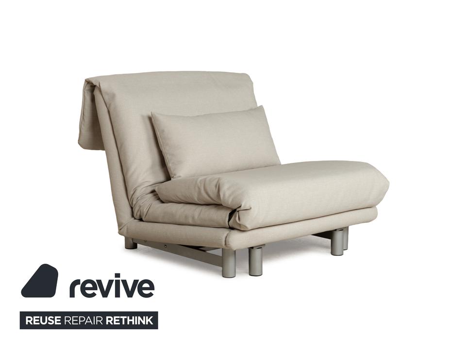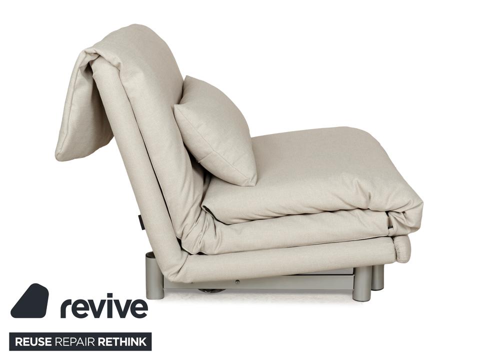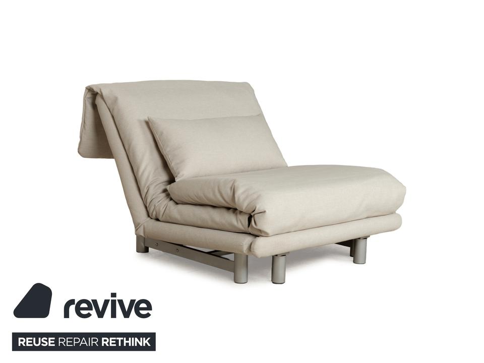 Der Sessel multy von ligne roset ist mit einem Stoff (Verano 610 von Höpke) in hellem Beige neu bezogen worden und steht auf einem silbernen Metallgestell. Das minimalistische Design und die komfortable Schlaffunktion zeichnen ihn aus und mit nur wenigen Handgriffen lässt sich dieser Sessel in ein Schlafsofa verwandeln. Informationen zum verwendeten Stoff: – Scheuertouren: 73.000- deutsches Qualitätsprodukt