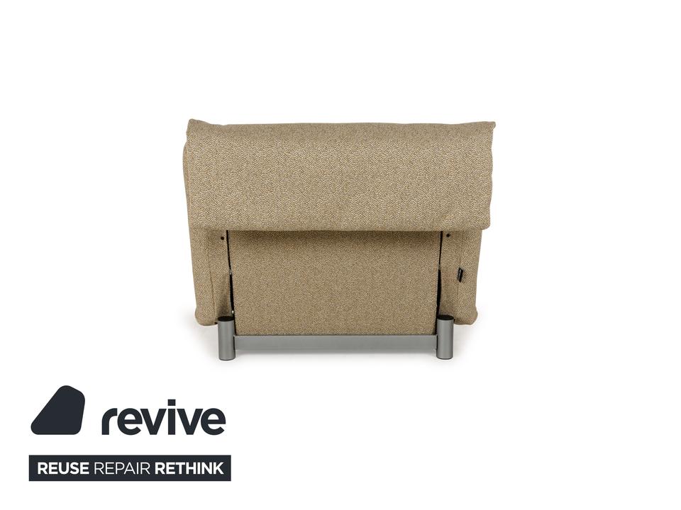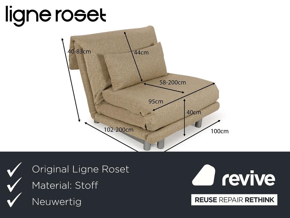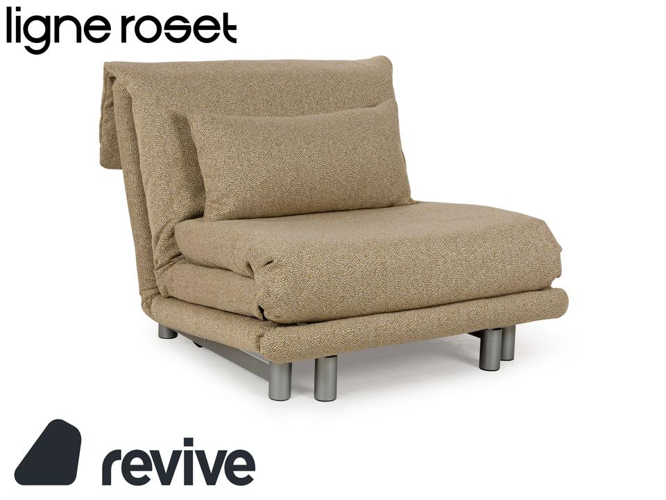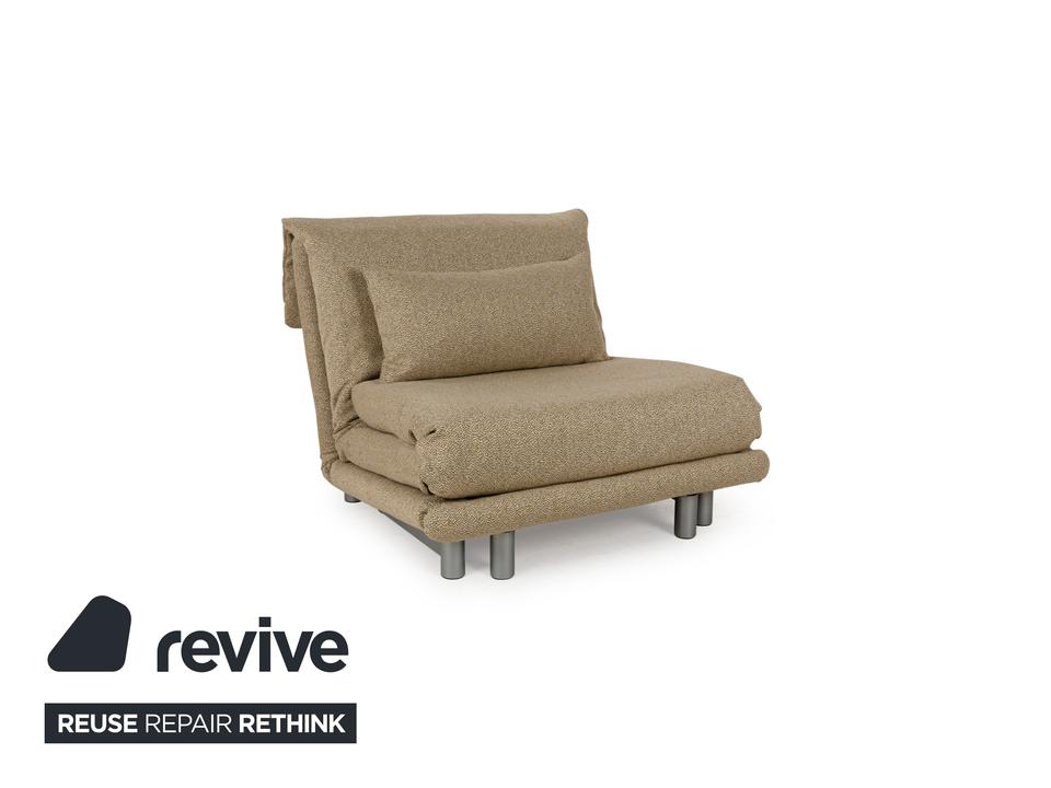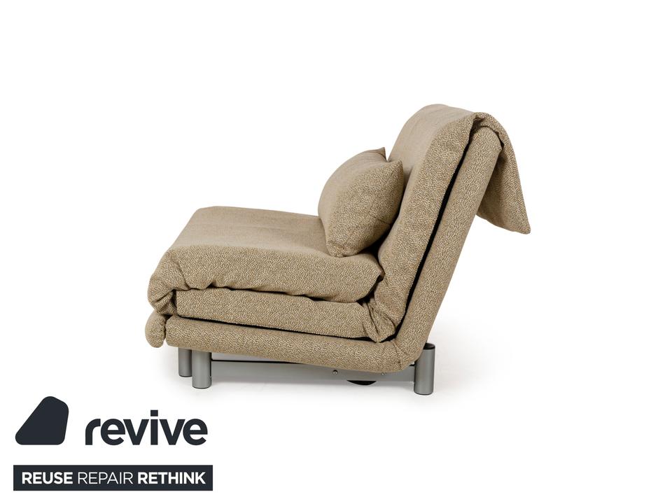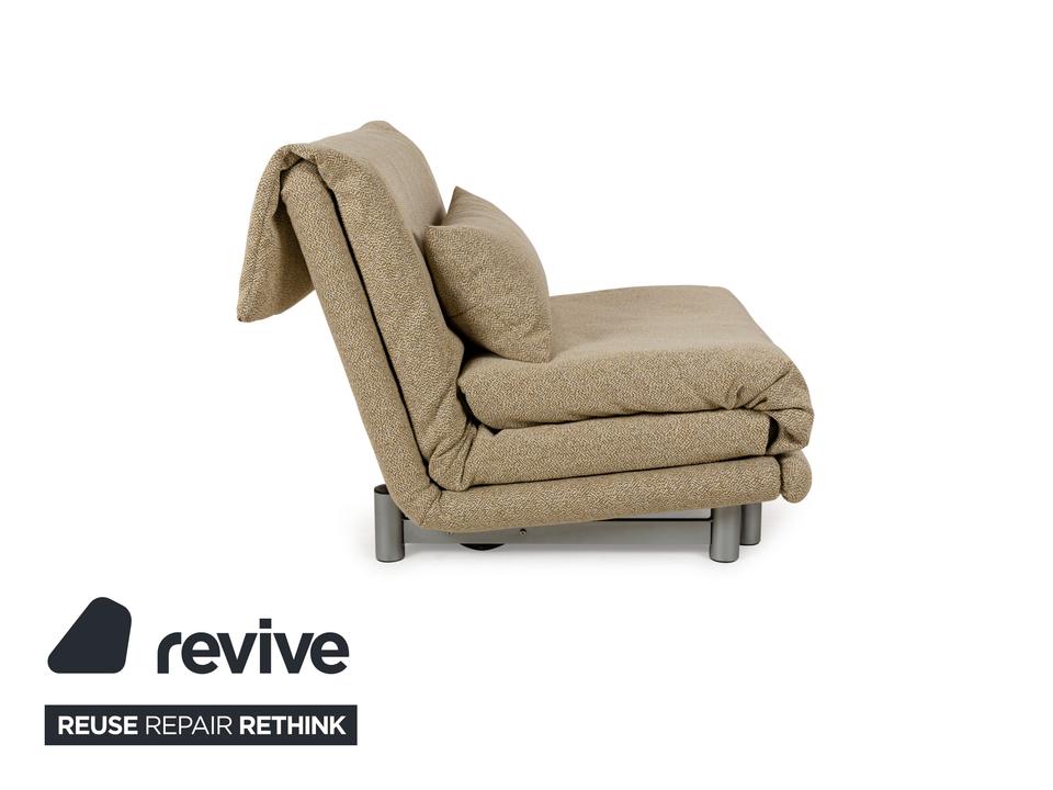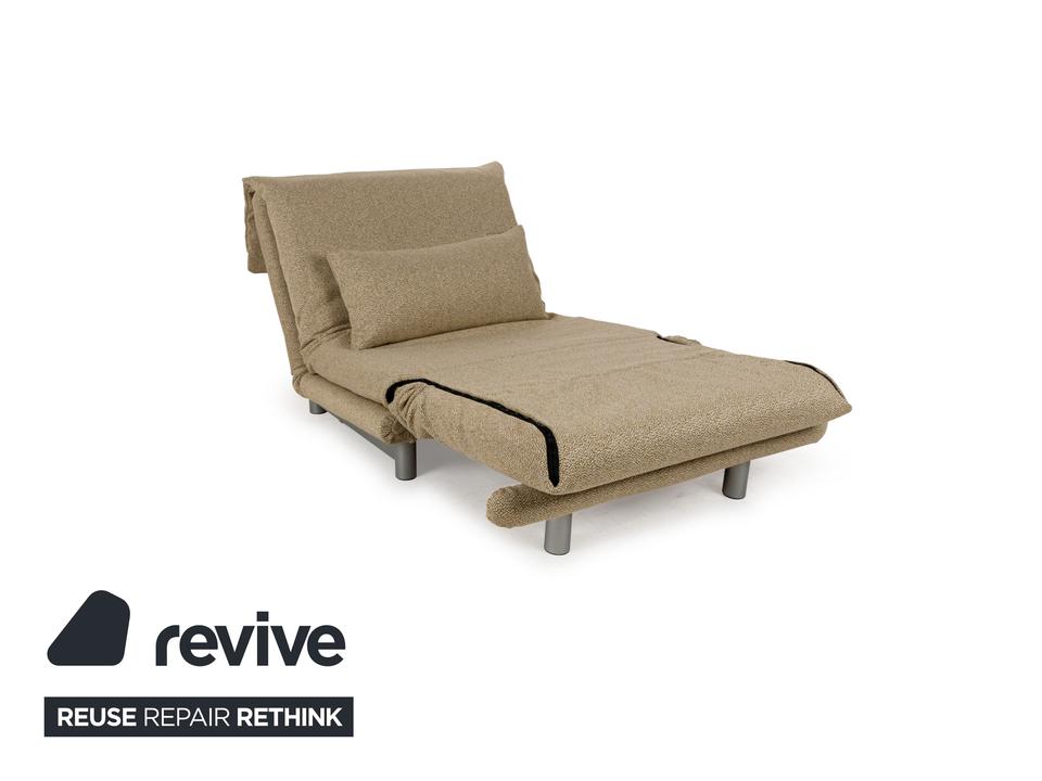 Der ligne roset Multy Sessel mit einem Neubezug in gelb-beige gewährt nicht nur Komfort, sondern auch Langlebigkeit. Zudem verfügt er über mehrere Varianten der Einstellungen, wodurch er nach Belieben verstellt werden kann.