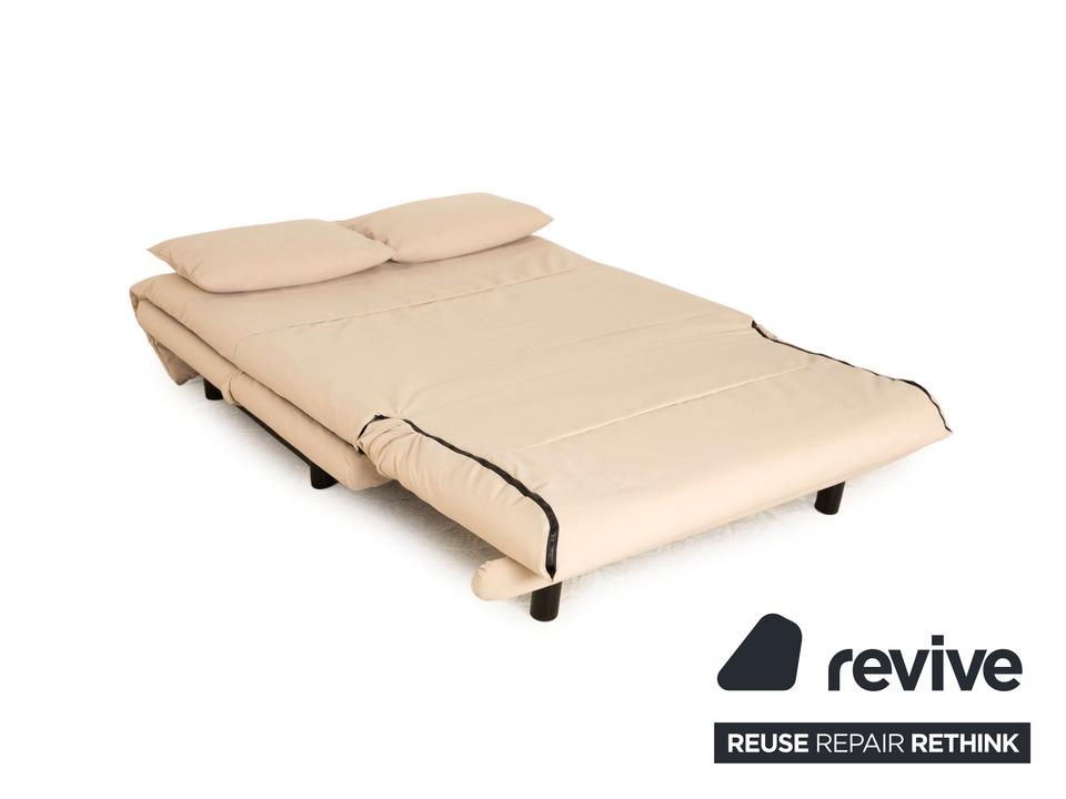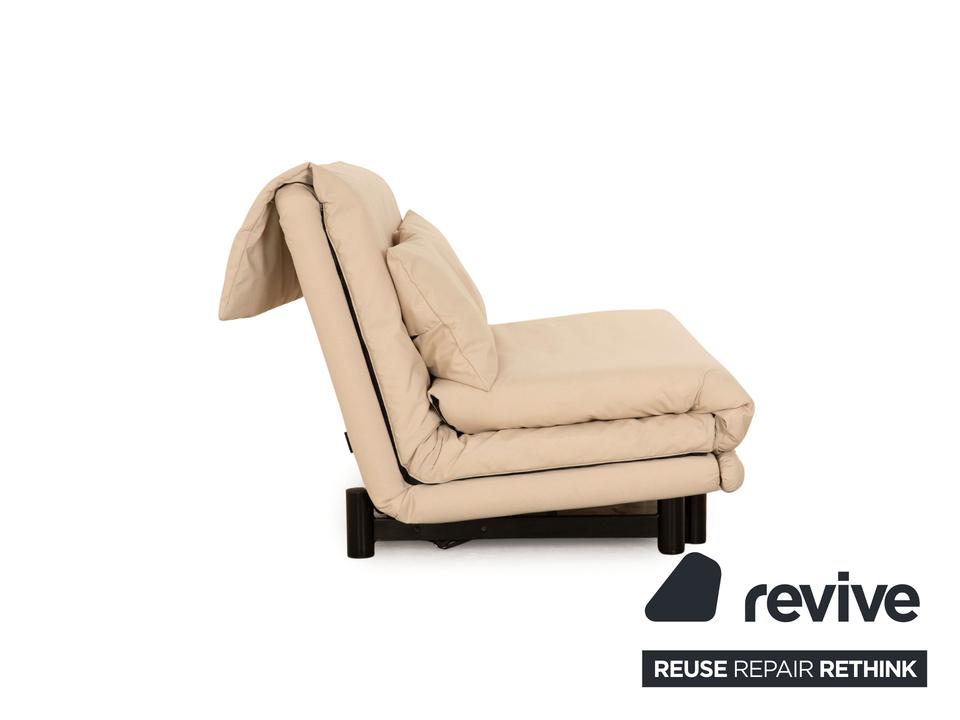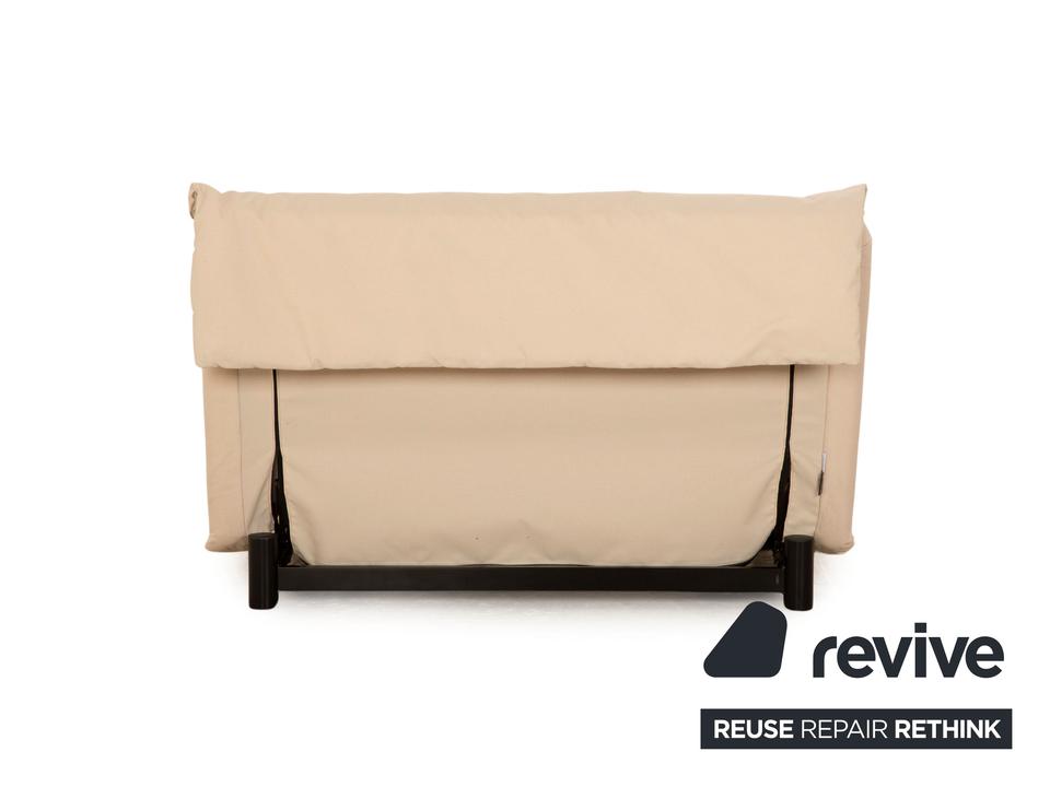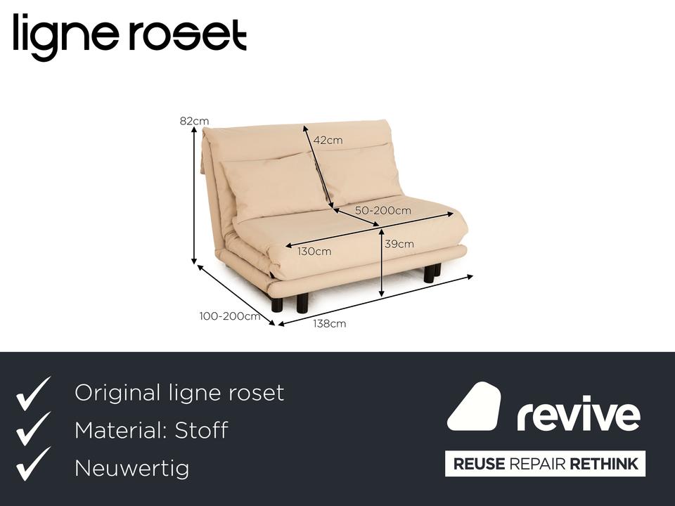 Das Multy Sofa von ligne roset ist mit einem cremefarbenen Stoff ( SALERNO 174 Fleckschutzausrüstung „Clean active“ ) neu bezogen und steht auf runden Metallfüßen. Das minimalistische Design und die praktische Schlaffunktion zeichnen den Zweisitzer aus.